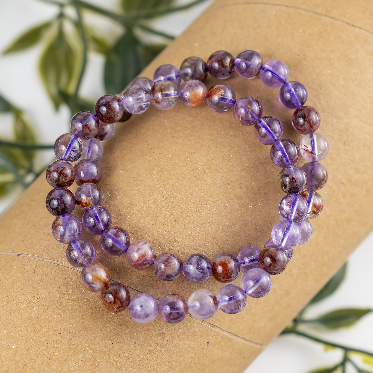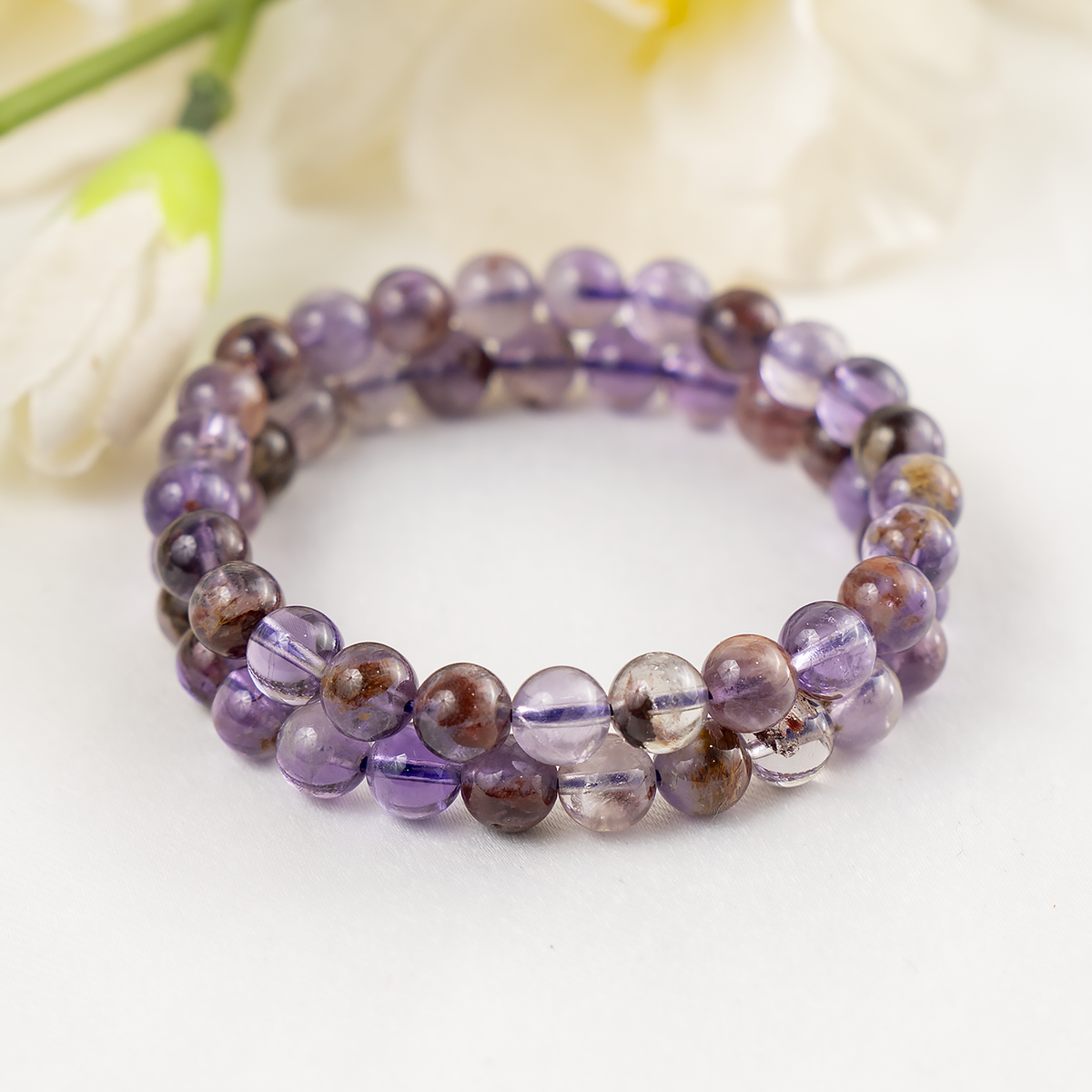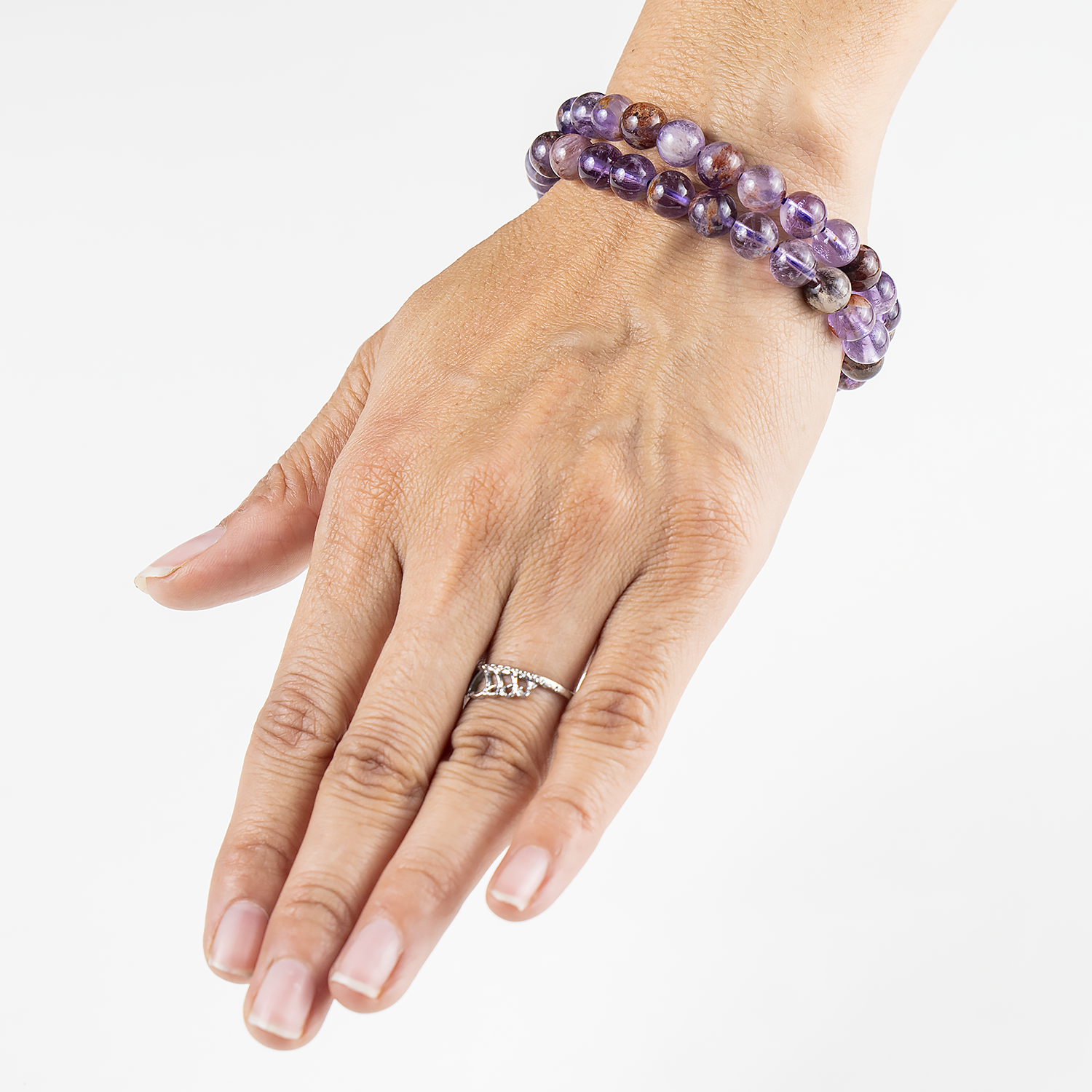 Ametrine Round Beads Bracelets combine the energies of amethyst and citrine, believed to promote balance, clarity, and positivity while supporting mental focus and emotional harmony.