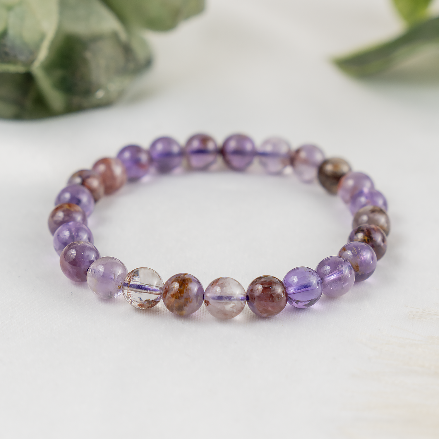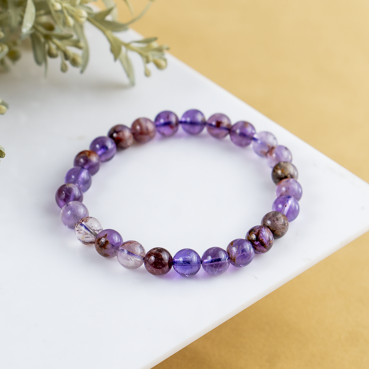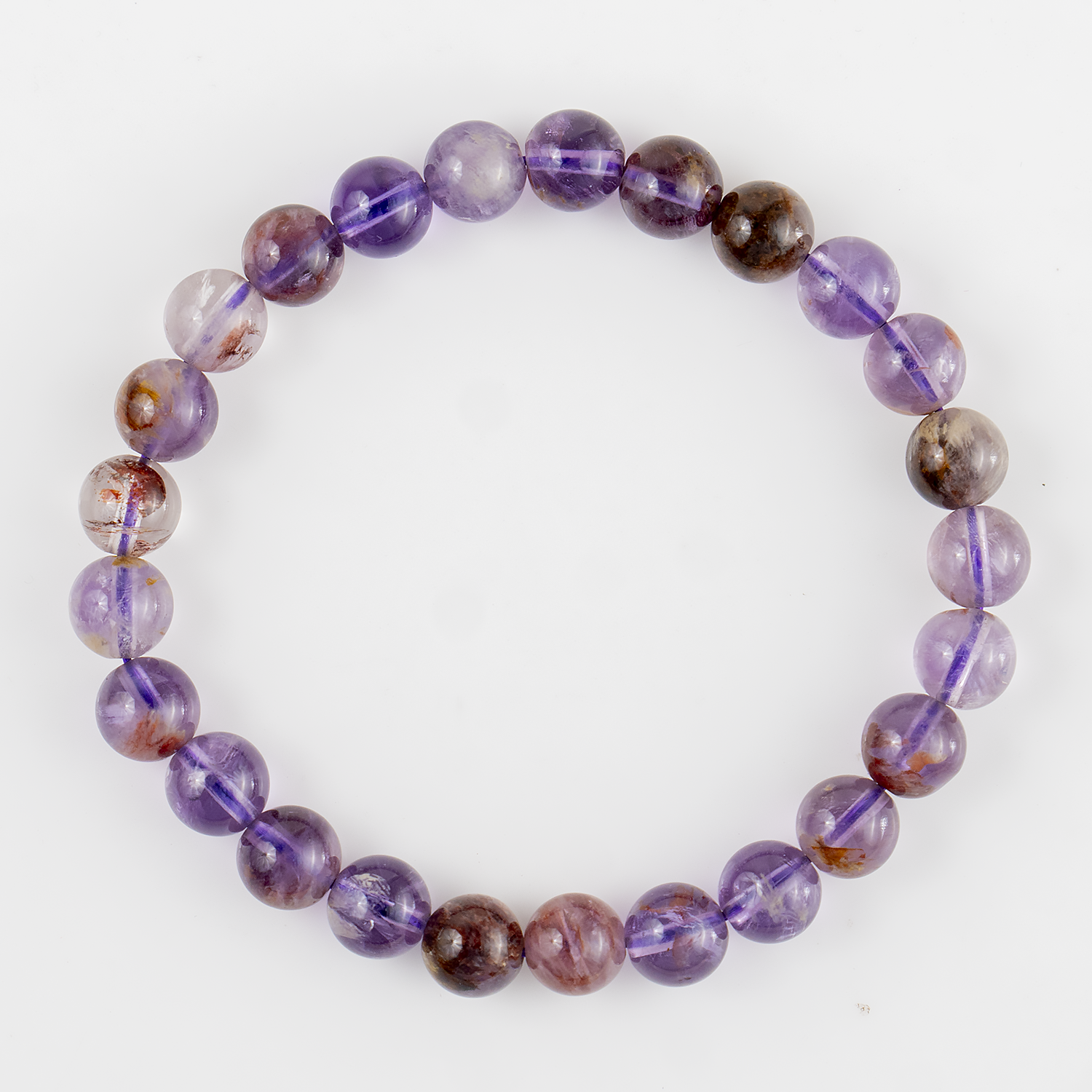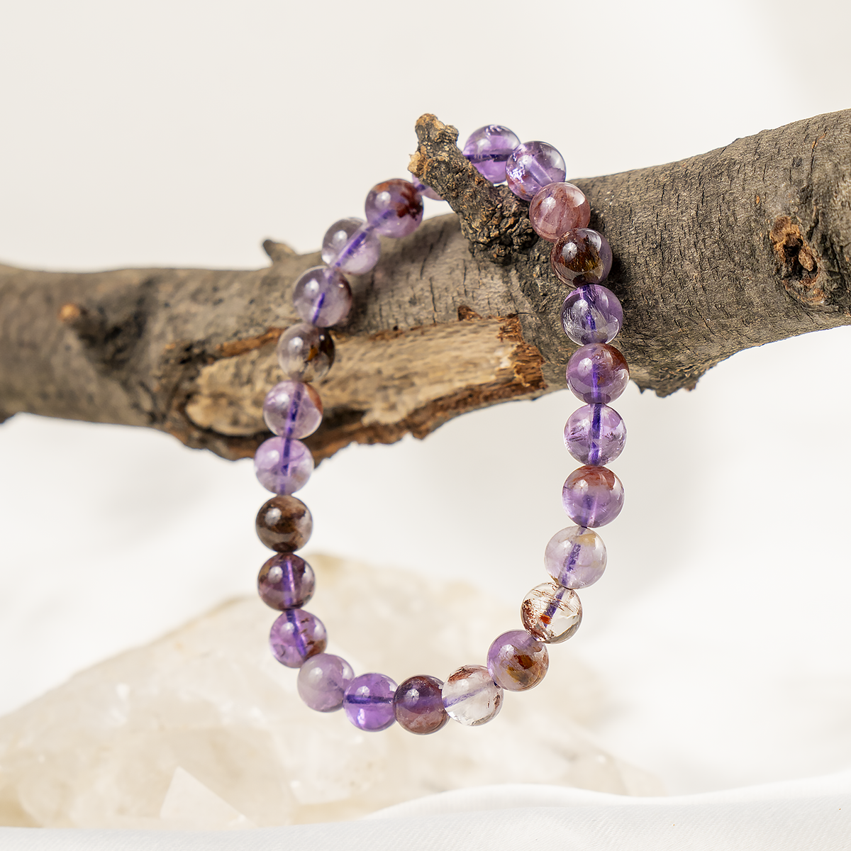 Ametrine Round Beads Bracelets combine the energies of amethyst and citrine, believed to promote balance, clarity, and positivity while supporting mental focus and emotional harmony.