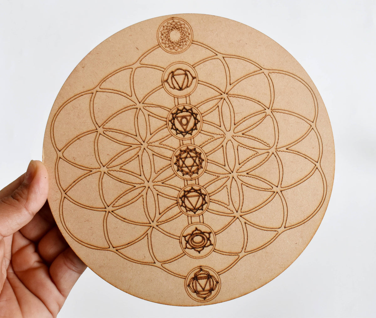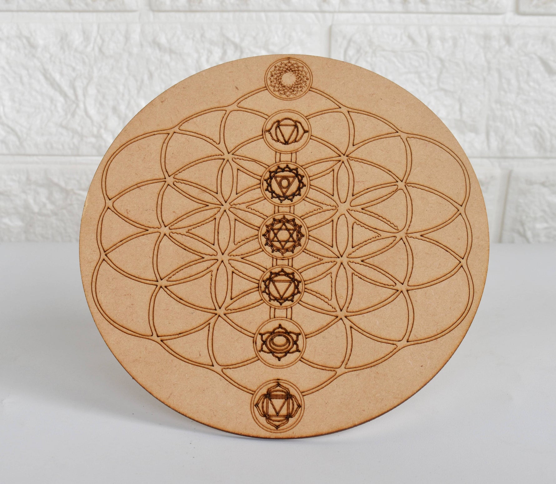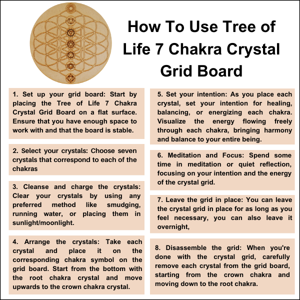 Tree of Life with 7 Chakras Crystal Grid Board, 6" Wooden Crystal Grid Plate