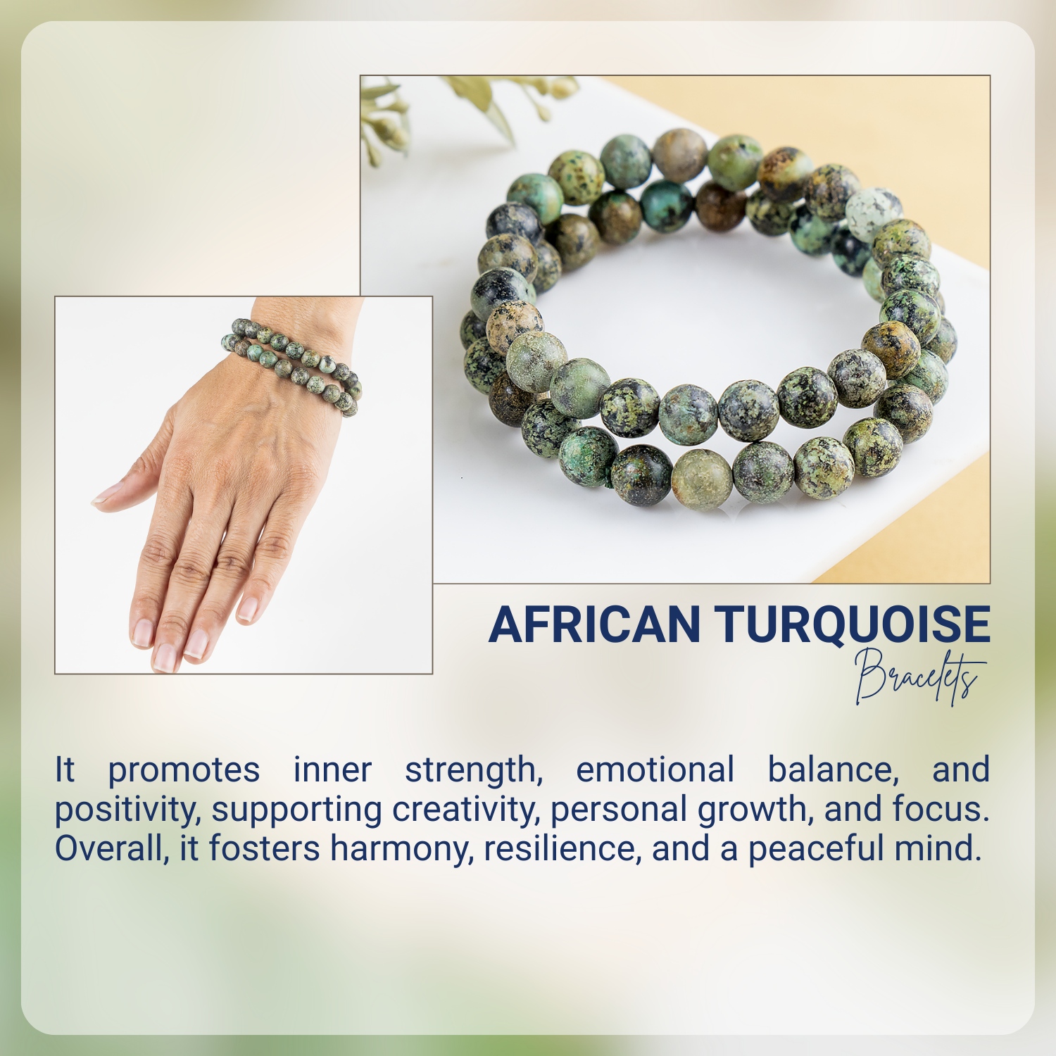 African Turquoise Beaded Bracelets are known as stones of growth and transformation, believed to promote positivity, confidence, and emotional balance while encouraging new beginnings and inner harmony.