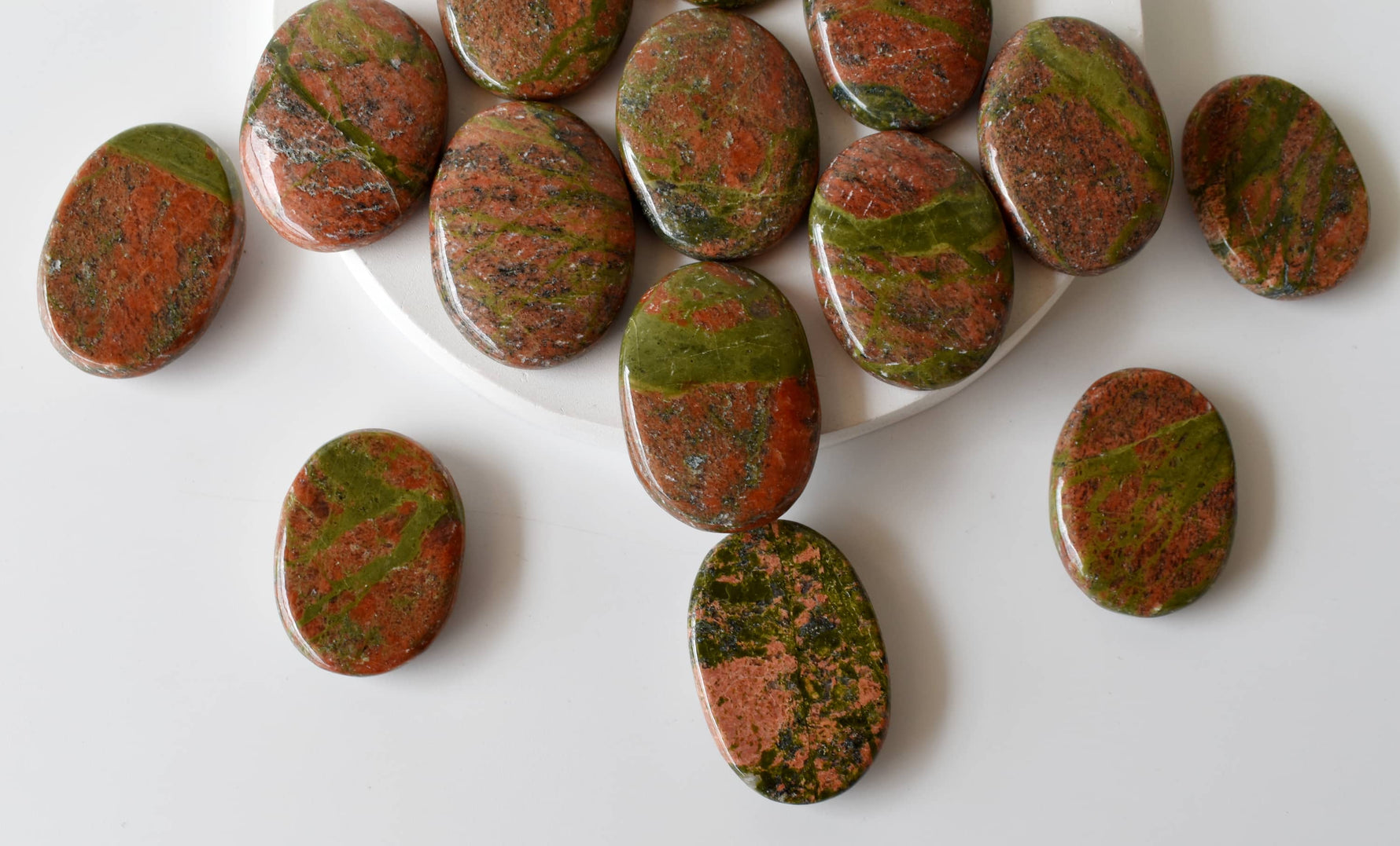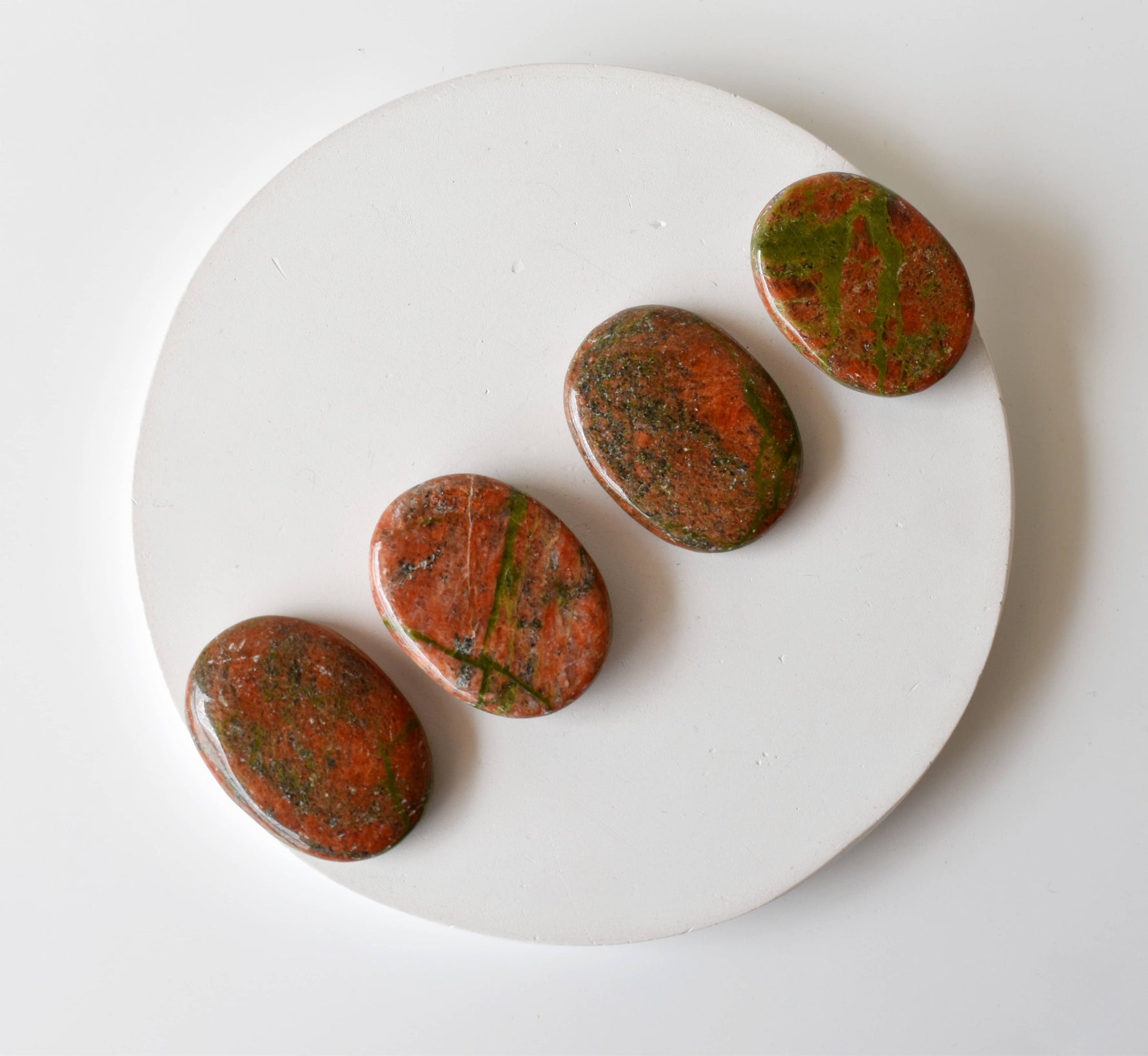 ππStunning unakite poket stones!!!I ordered 5 stones, each of these was perfect in color, shape, and super shiny palm stones!! ππ