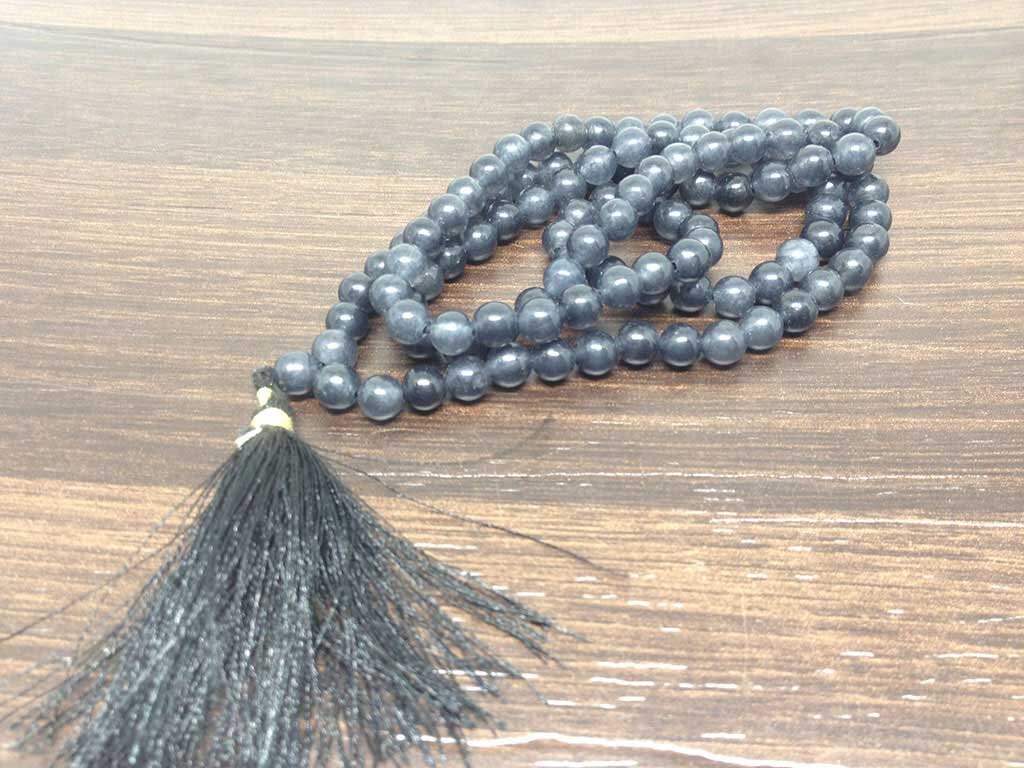 One (1) Natural 6mm Iolite Mala With 108 Prayer Beads For Mediation Iolite Jap Mala