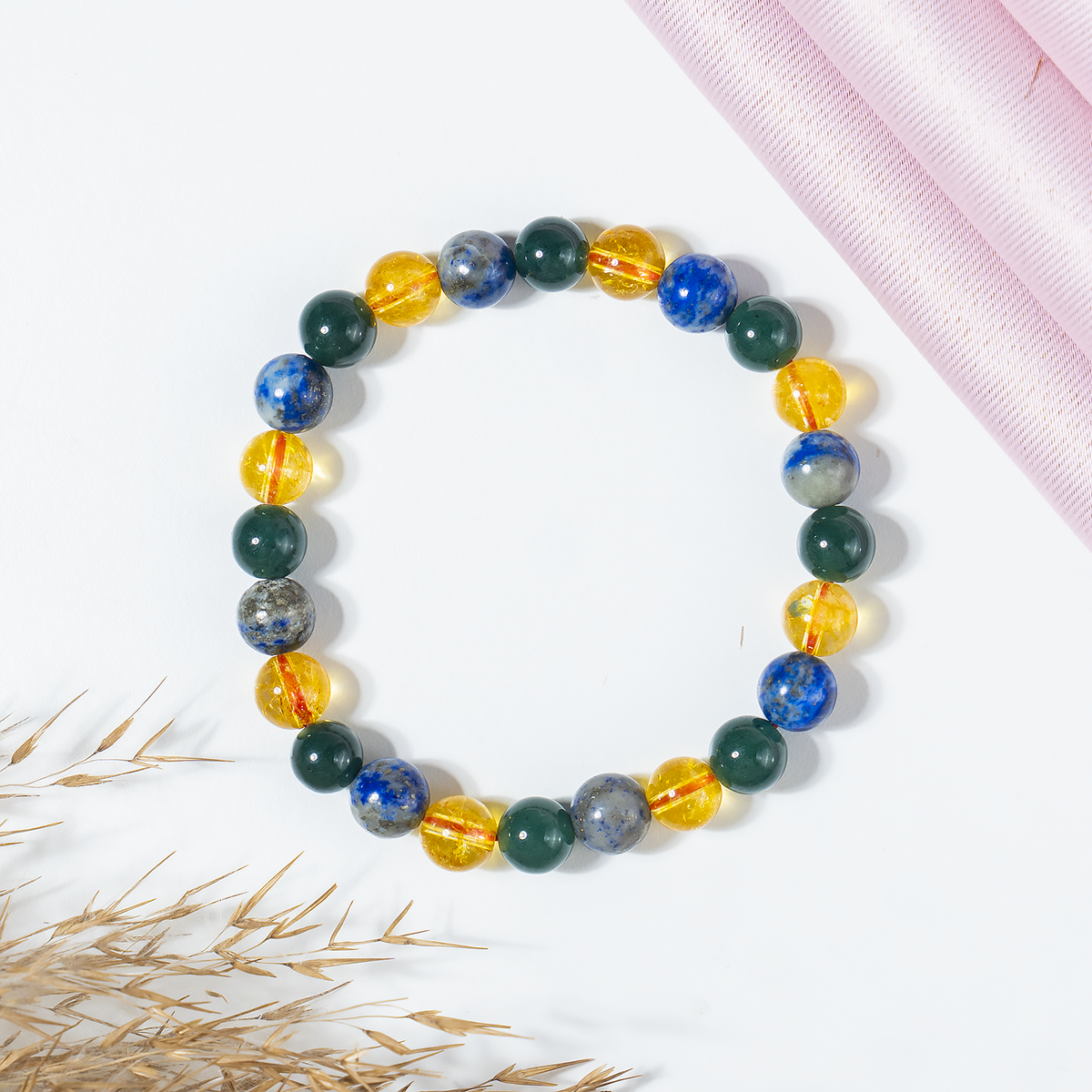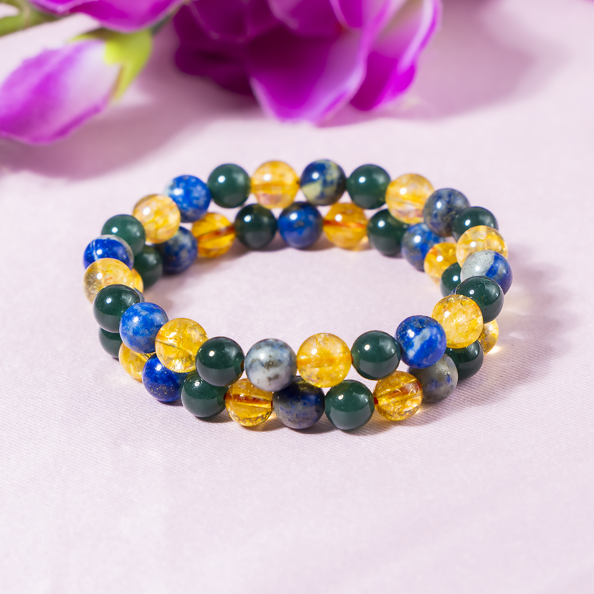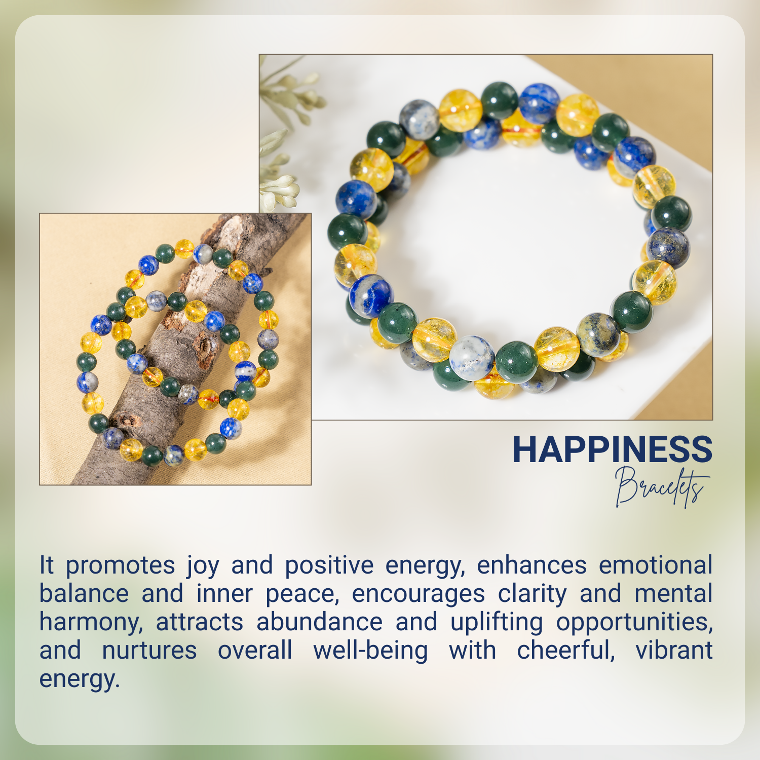 The Happiness Bracelet combines Citrine, Lapis Lazuli, and Green Jade to uplift your spirit, invite positivity, and nurture joy in everyday life.