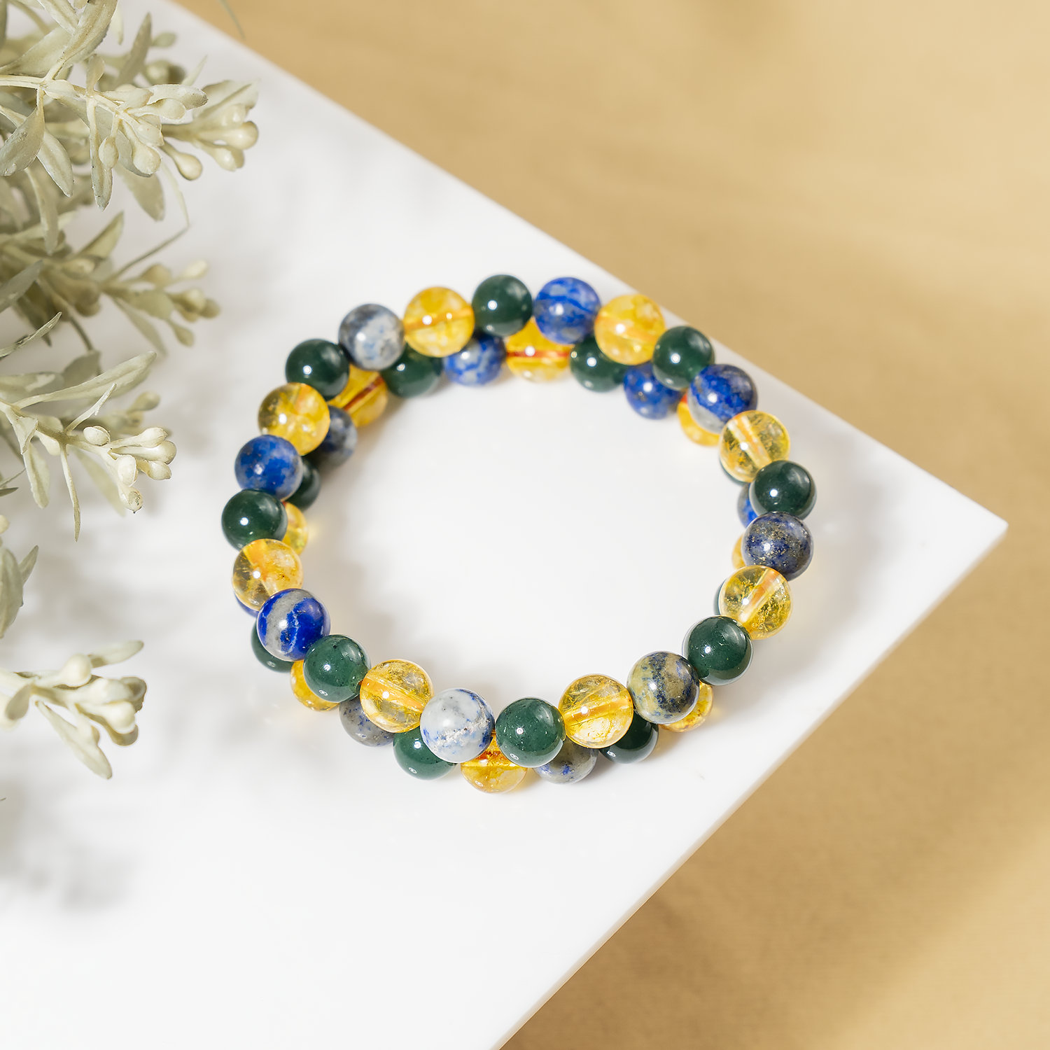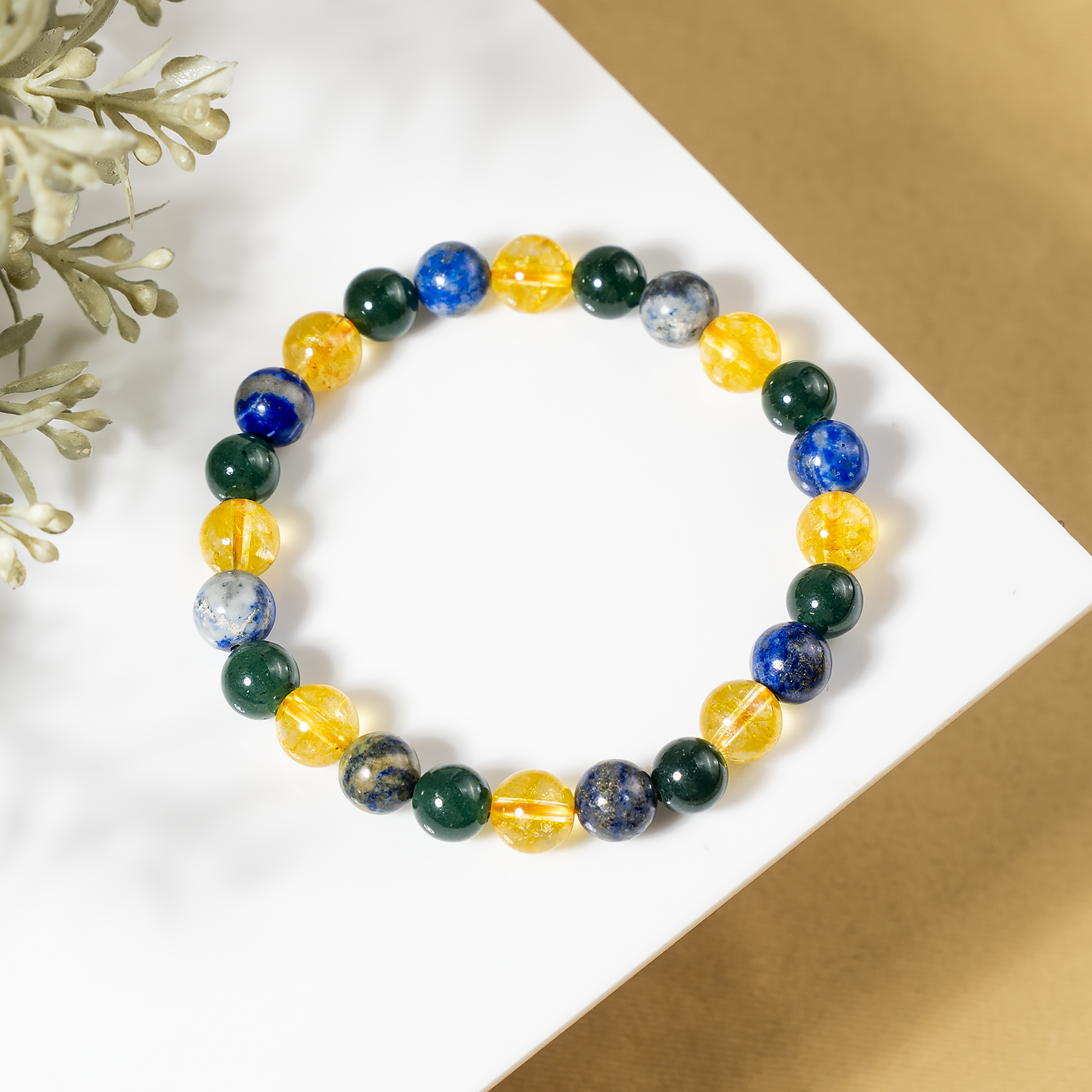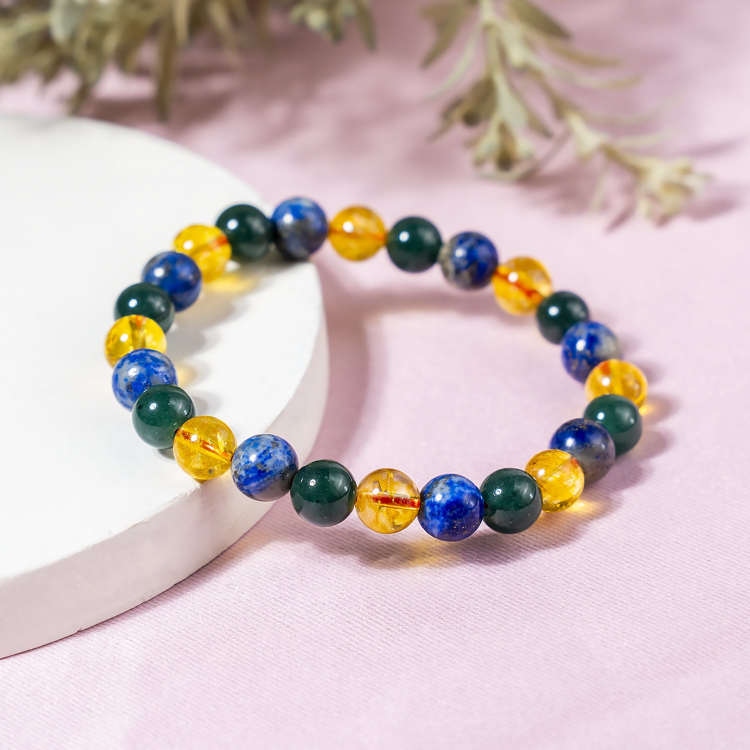 The Happiness Bracelet combines Citrine, Lapis Lazuli, and Green Jade to uplift your spirit, invite positivity, and nurture joy in everyday life.