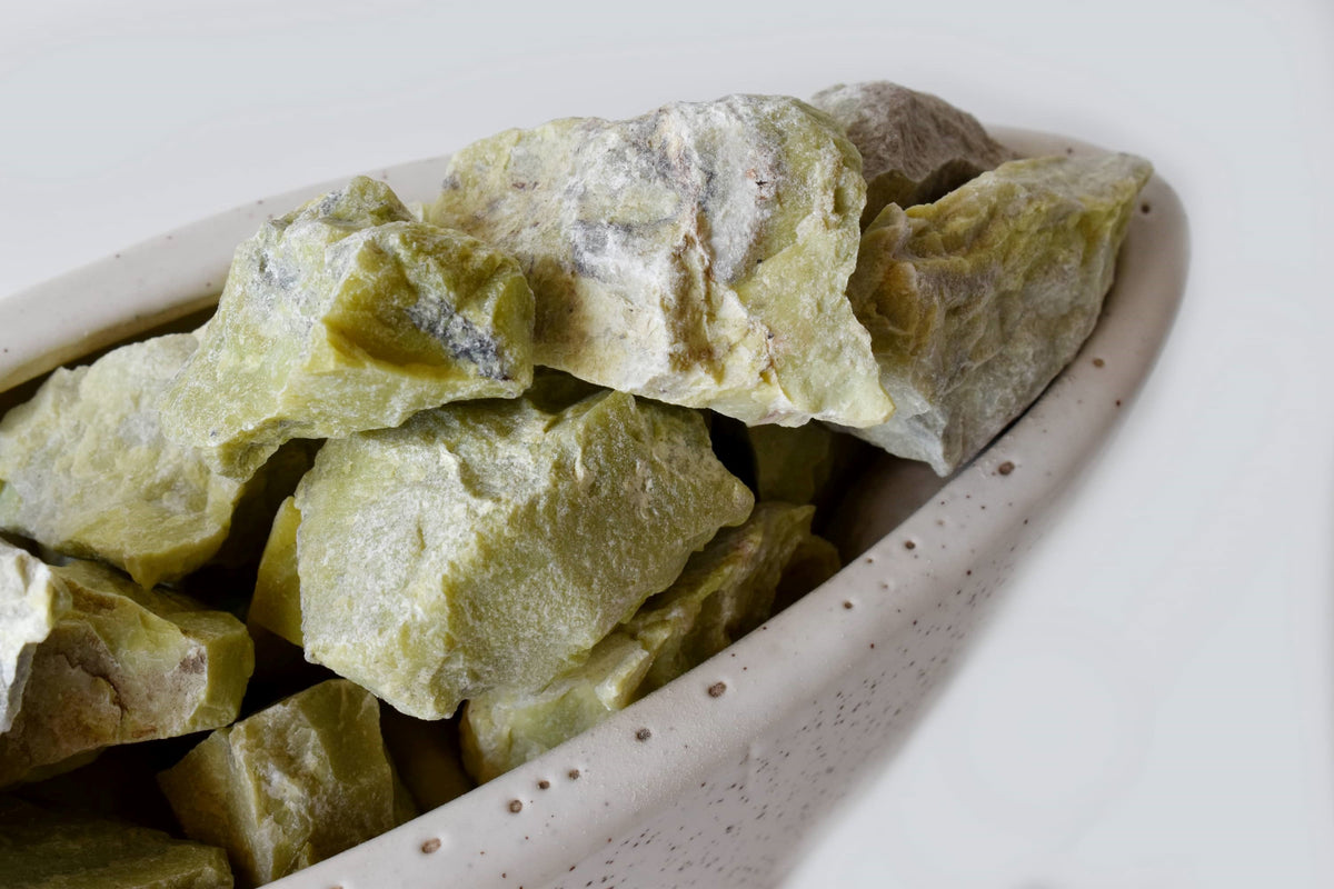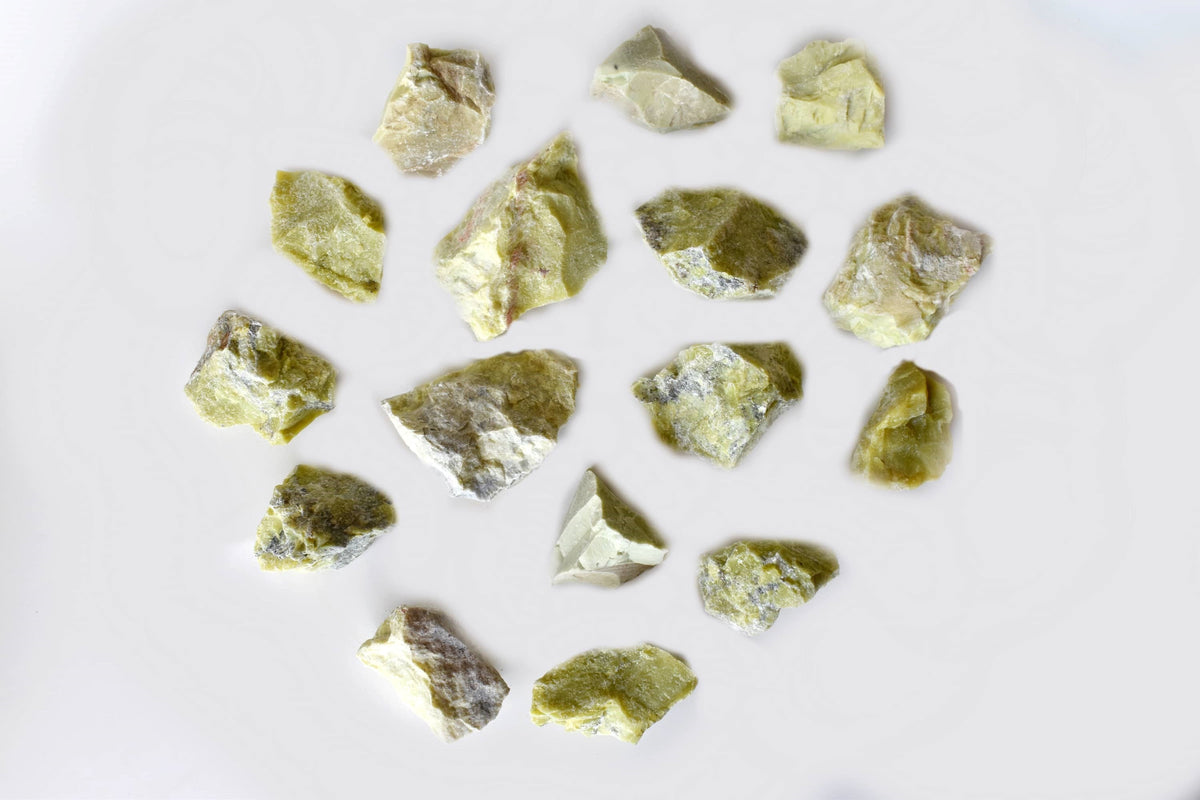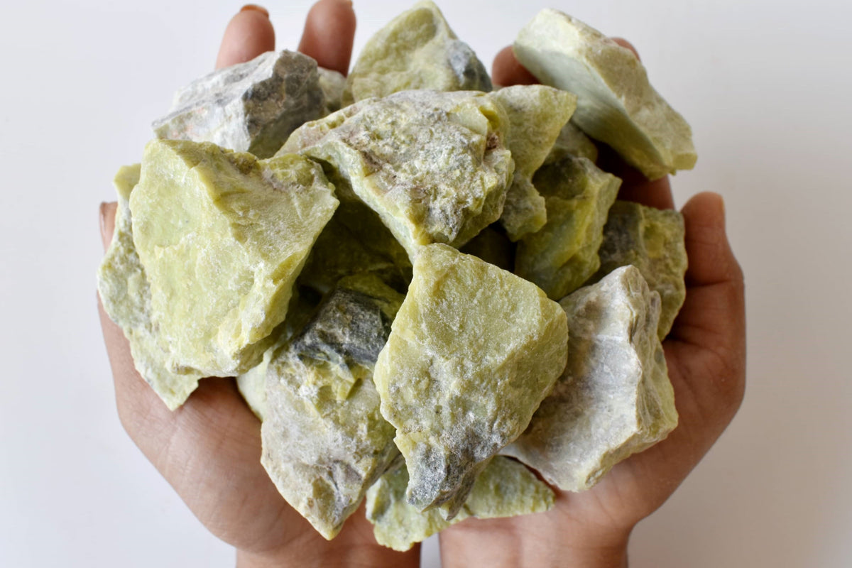These Serpentine Rough Stones are natural and unpolished, showcasing the unique patterns of the serpentine crystal. Serpentine is known for its grounding, protective energy and for supporting spiritual exploration and connection.
