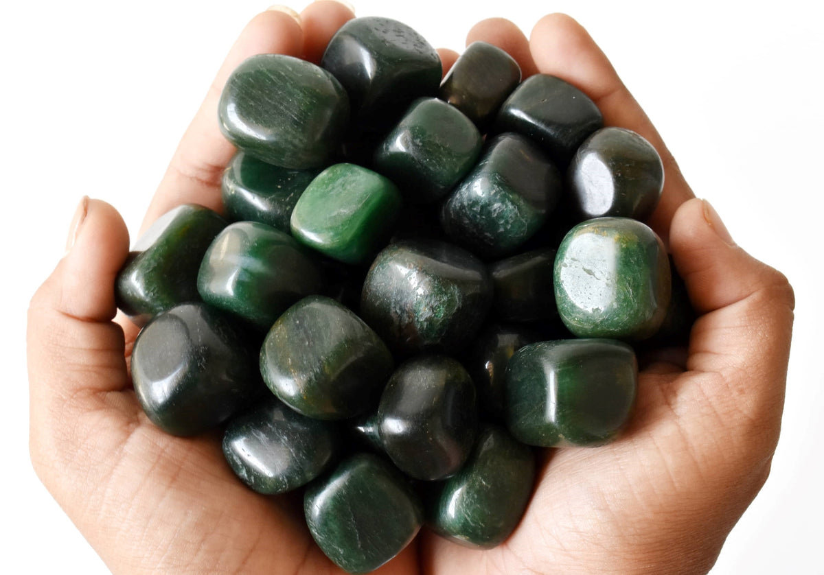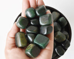 Green Jade Tumbled Stone features a luminous sheen and unique texture, bringing peace, serenity, and beauty to any space while supporting healing and protection.