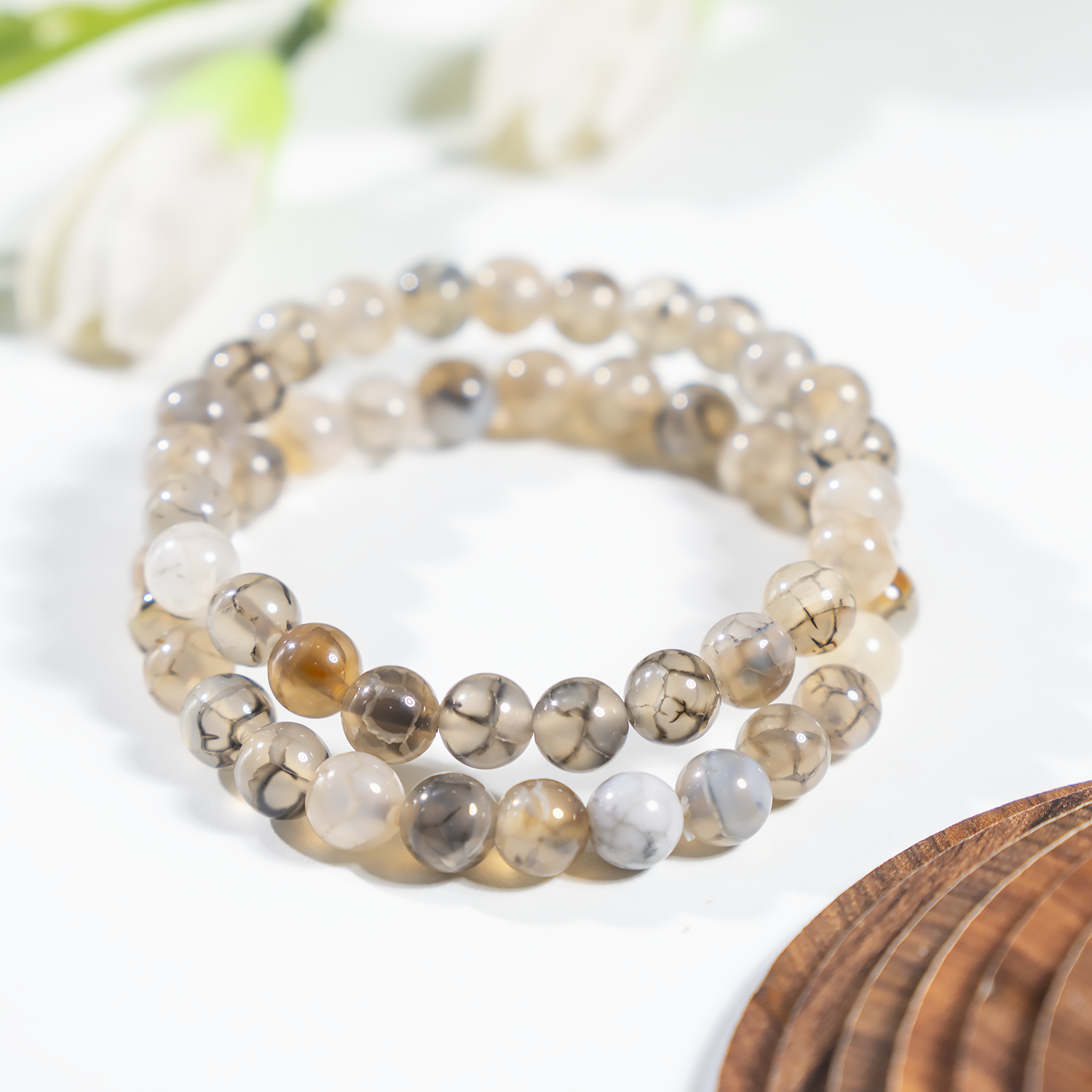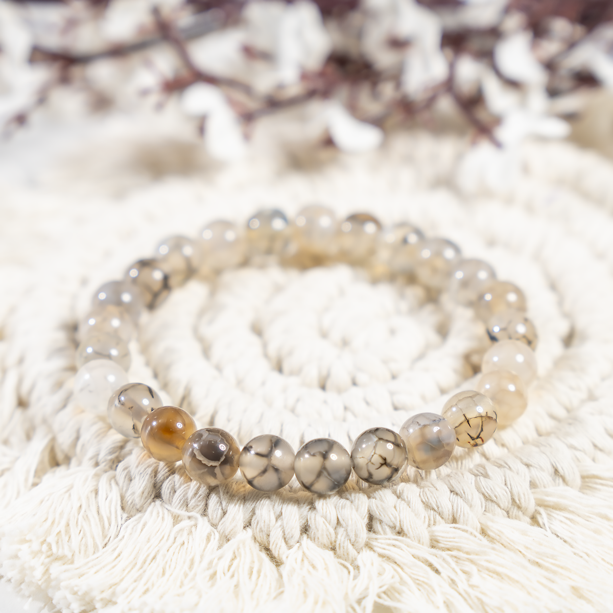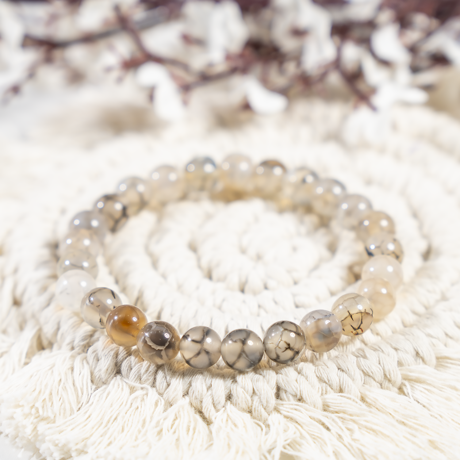 A bold Dragon Vein Agate bracelet featuring striking crackle patterns, symbolizing strength, courage, and vibrant energy.