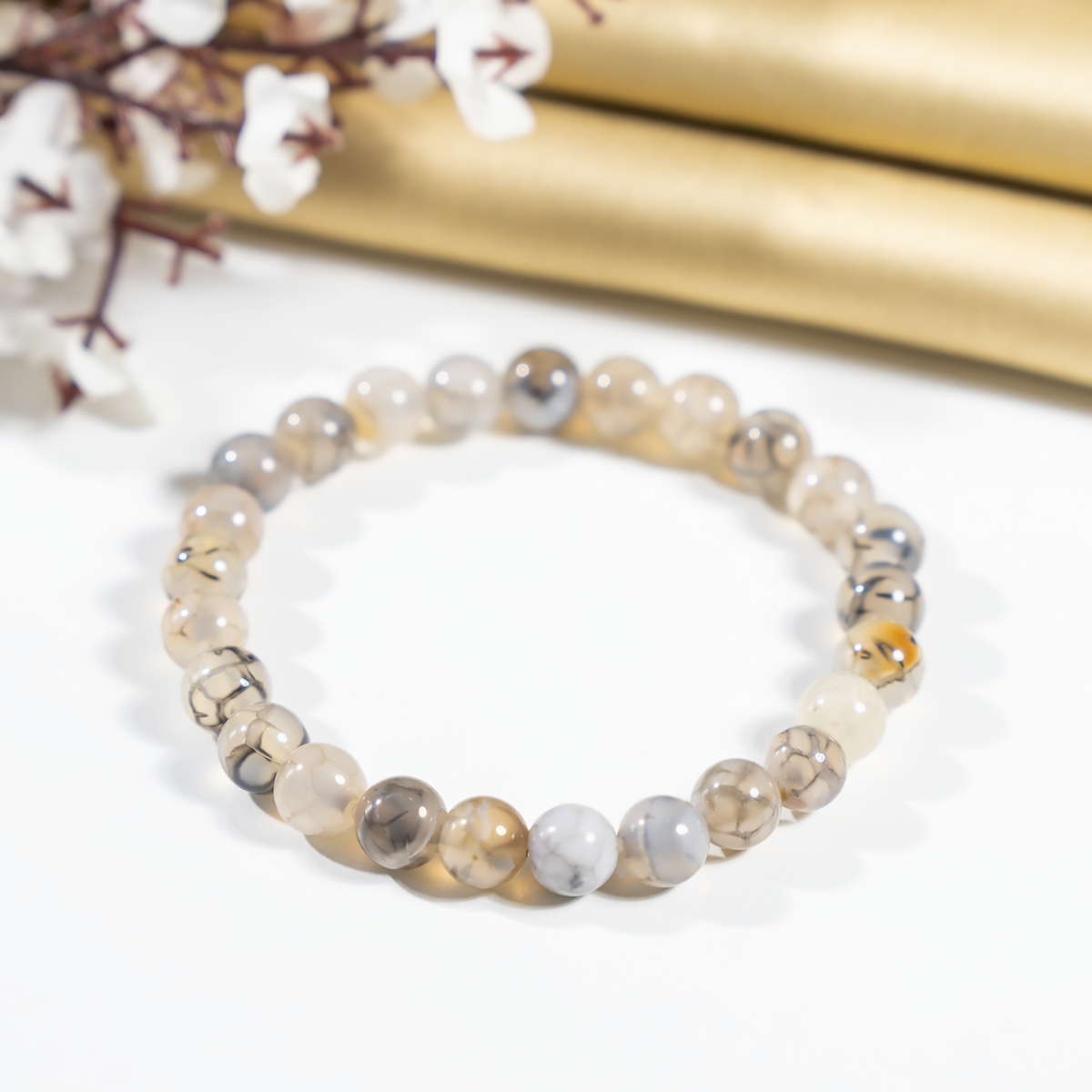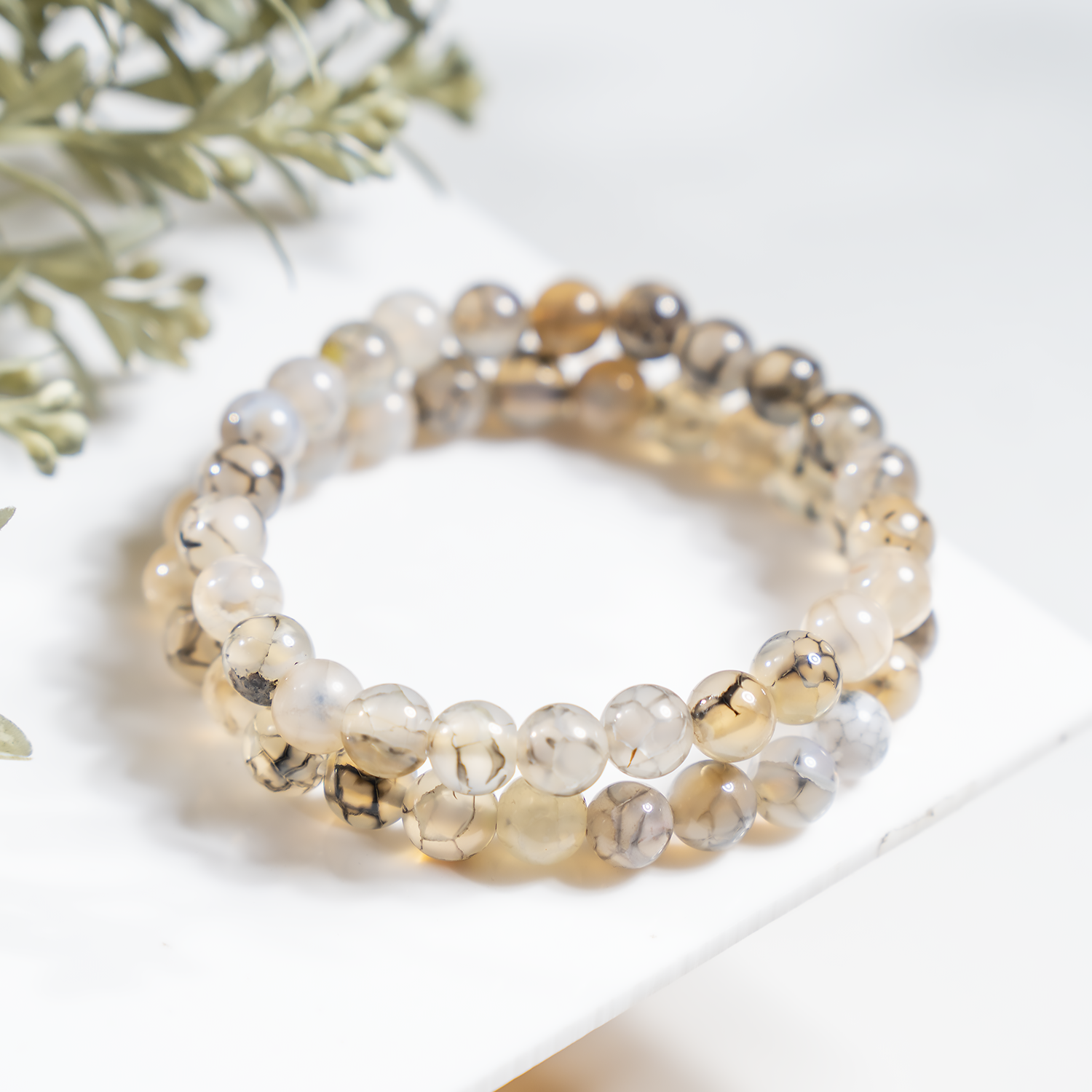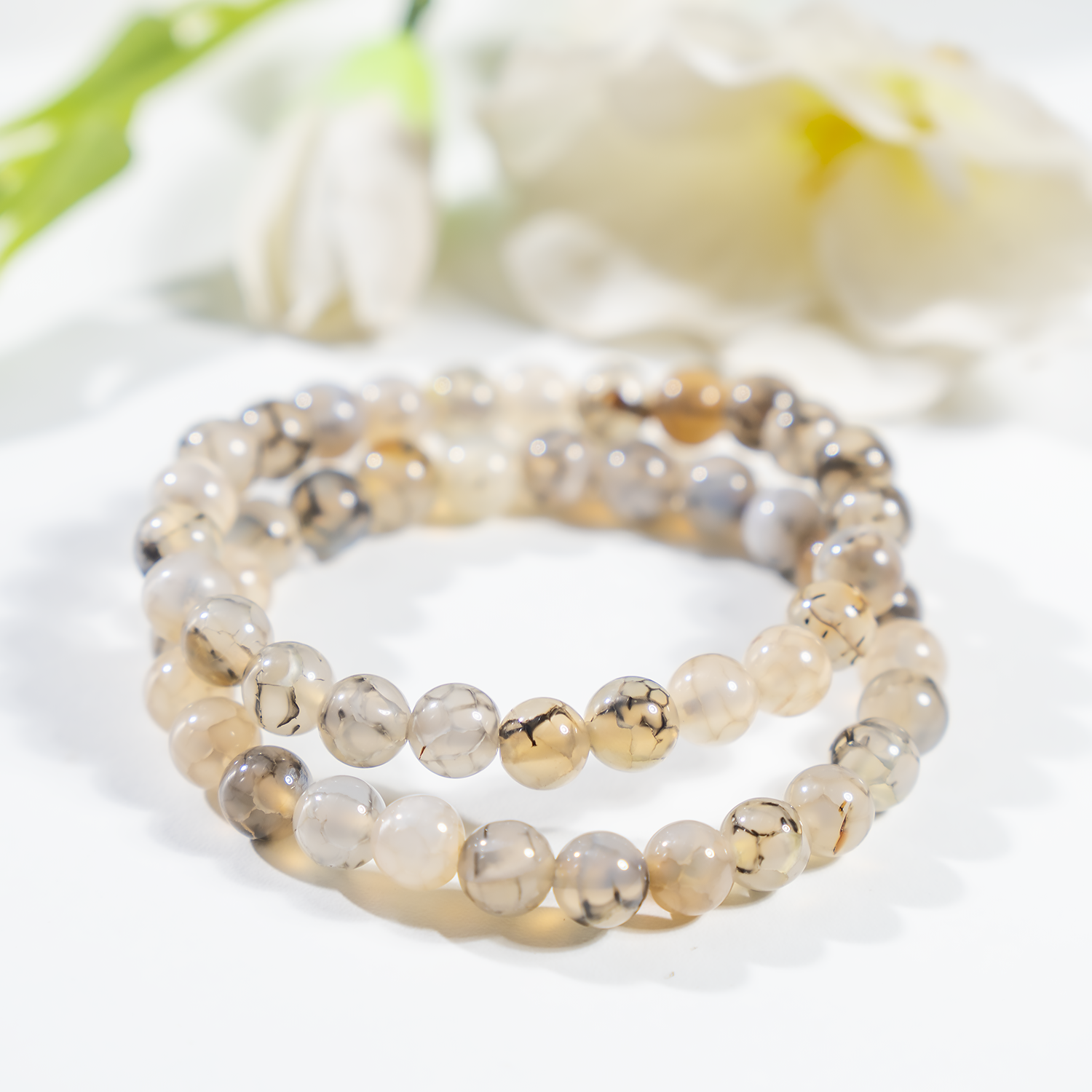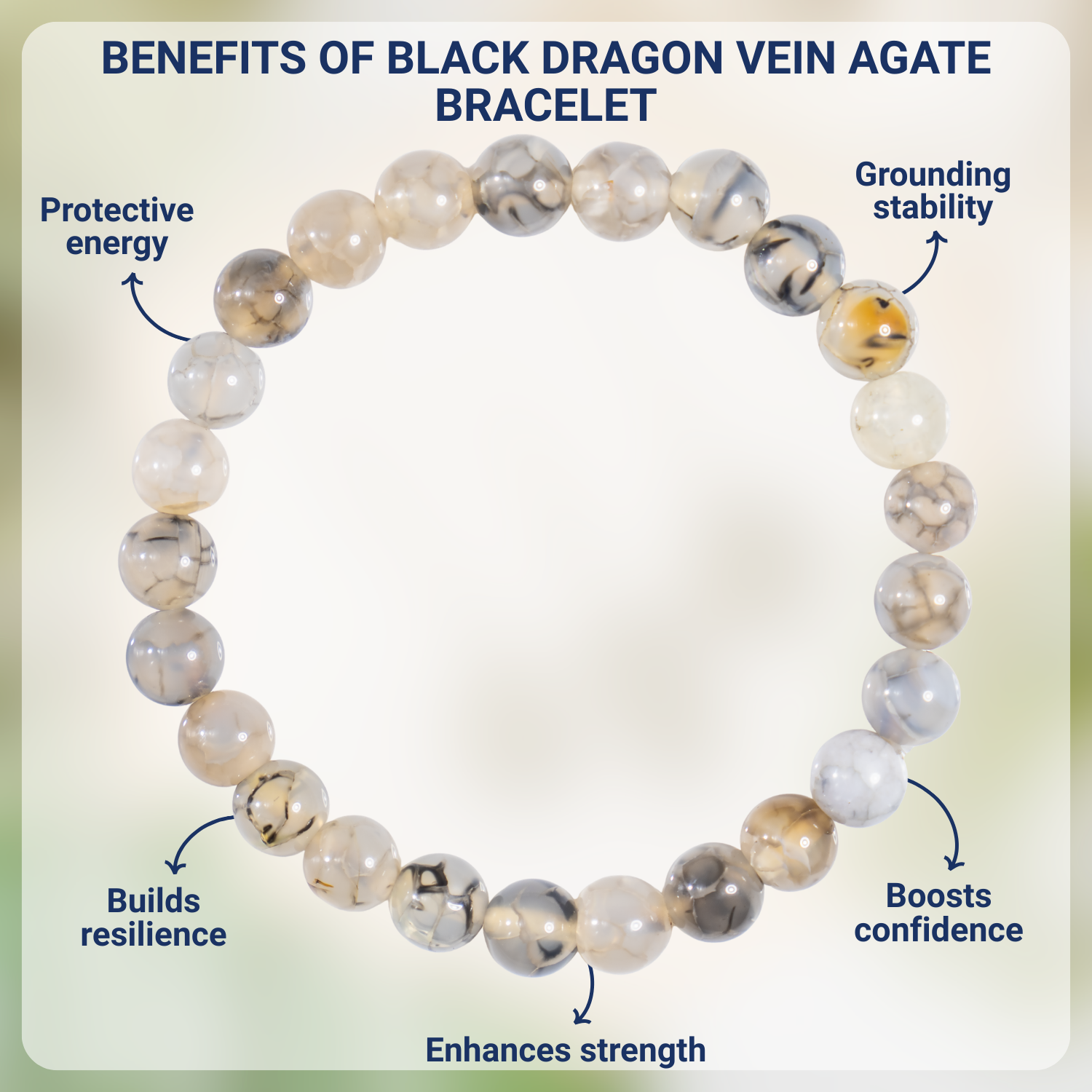 A bold Dragon Vein Agate bracelet featuring striking crackle patterns, symbolizing strength, courage, and vibrant energy.