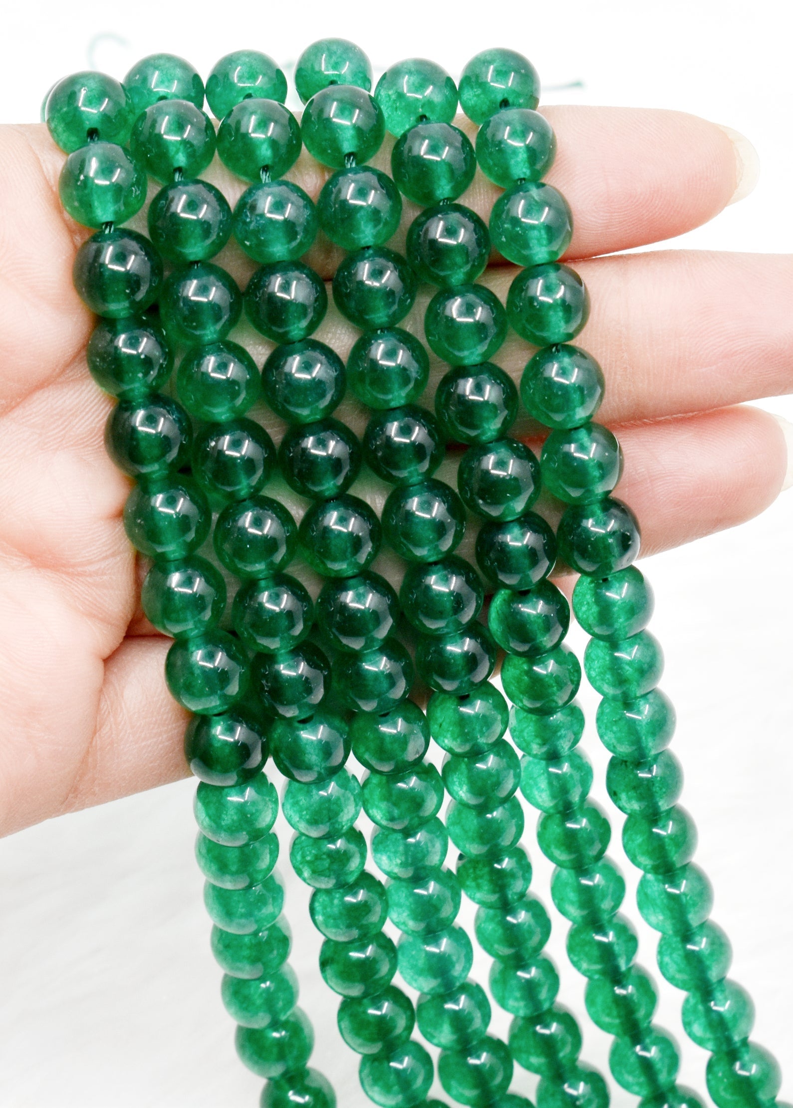 ππThis is a breathtaking strand of genuine, Premium Quality Polished Green Jade Crystal Round Beads. It features four different sizes- 4mm, 6mm, 8mm and 10mm β each one hand-crafted to bring out the unique beauty of this beautiful stone.