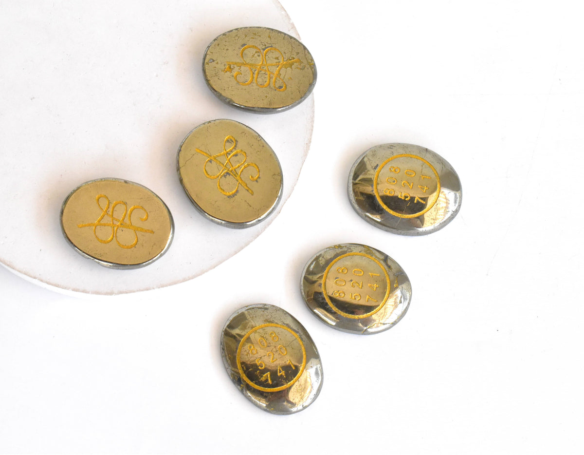 Polished Pyrite Zibu Stones, Flat Oval Stones