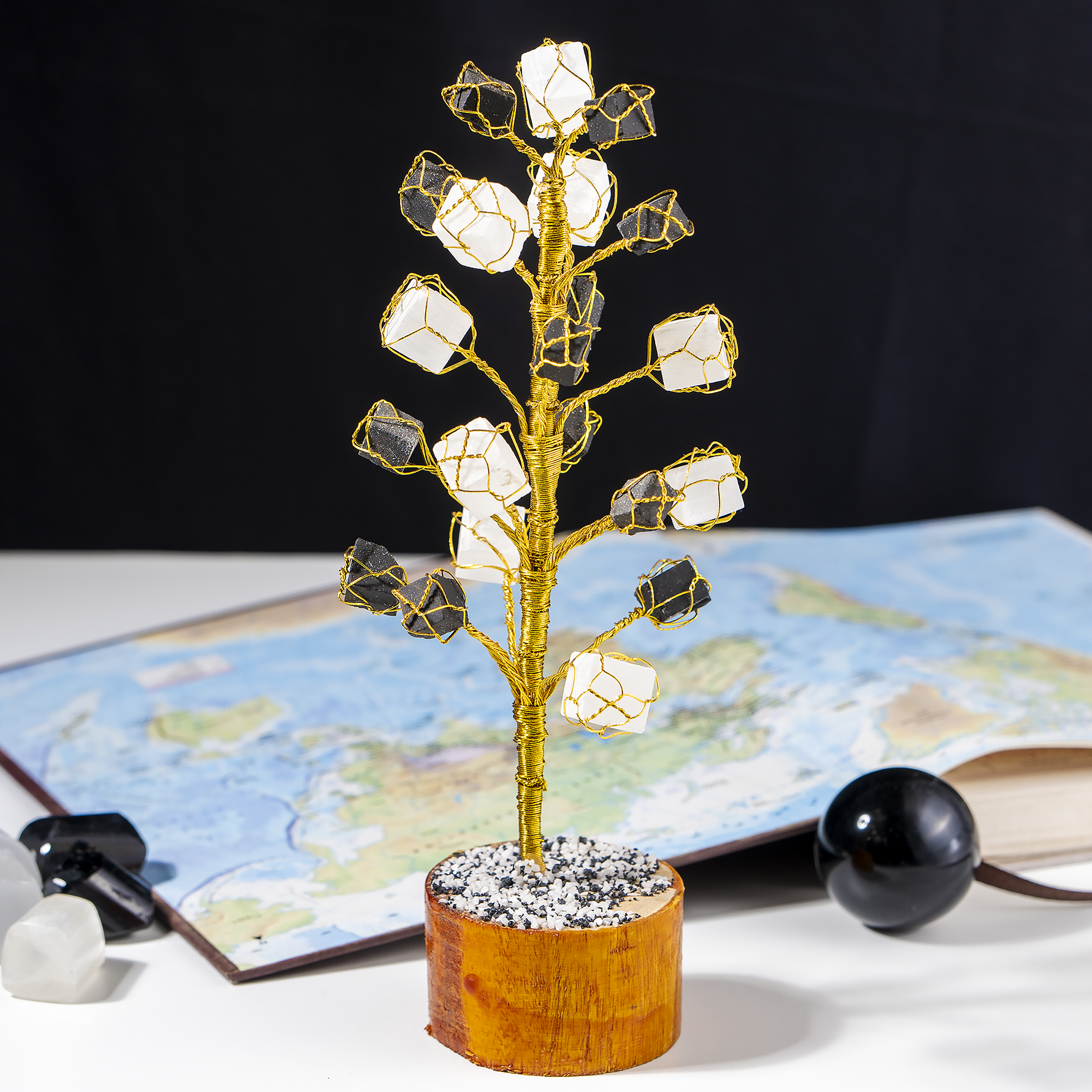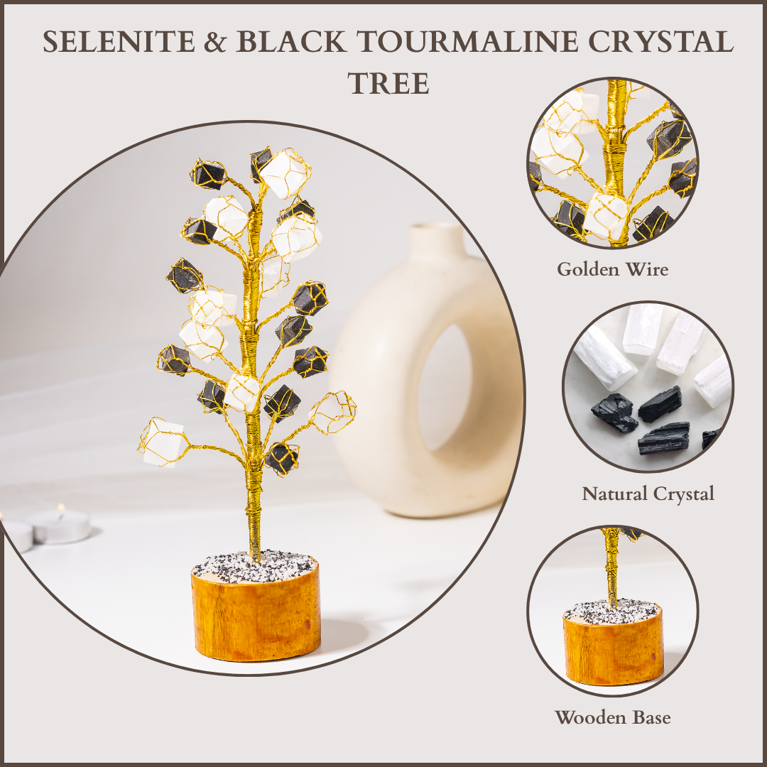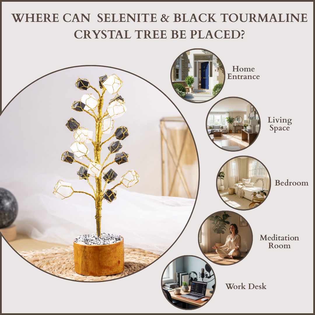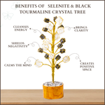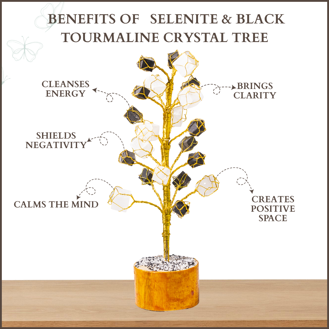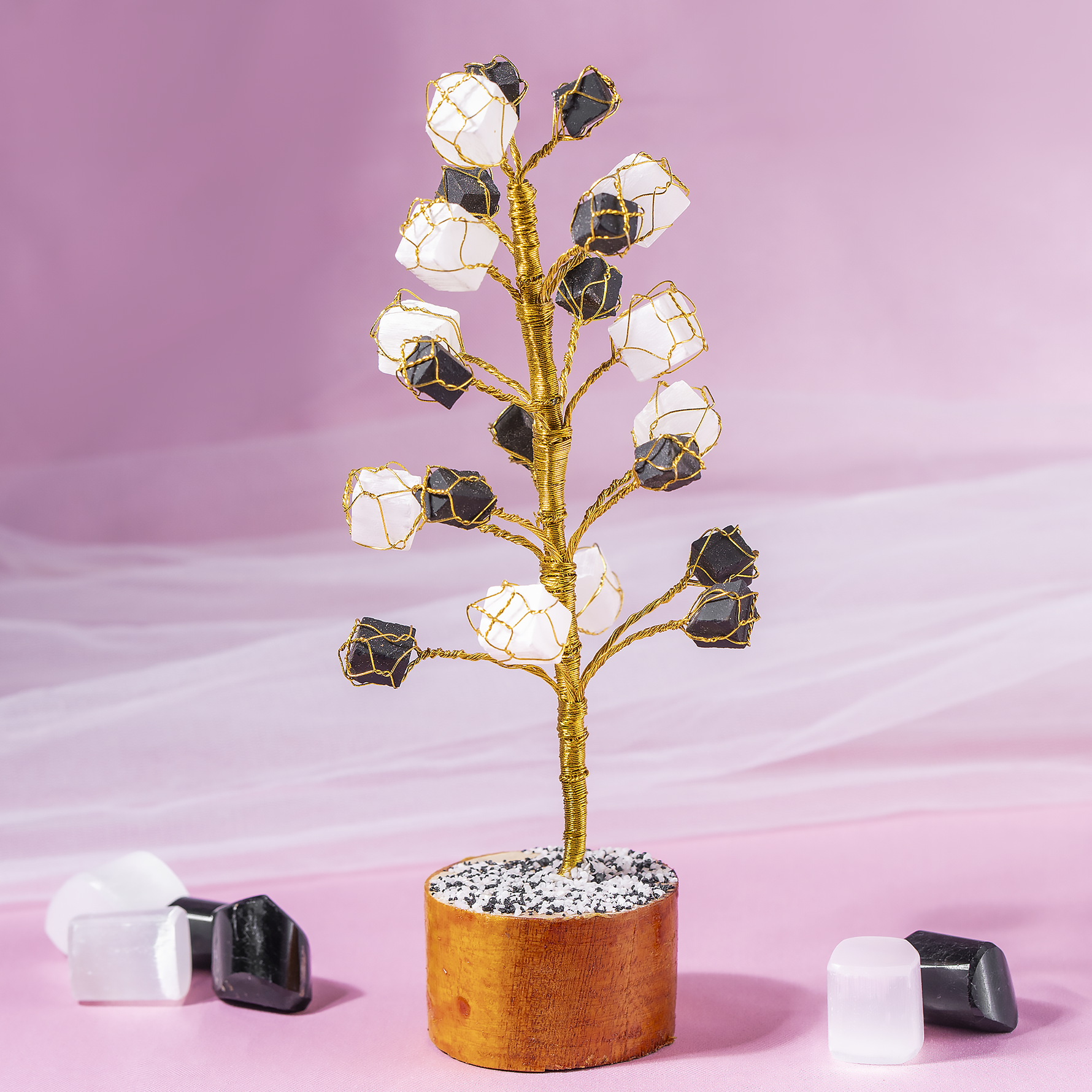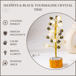 Selenite & Black Tourmaline Crystal Tree – Tree of Life Healing & Energy Protection Décor