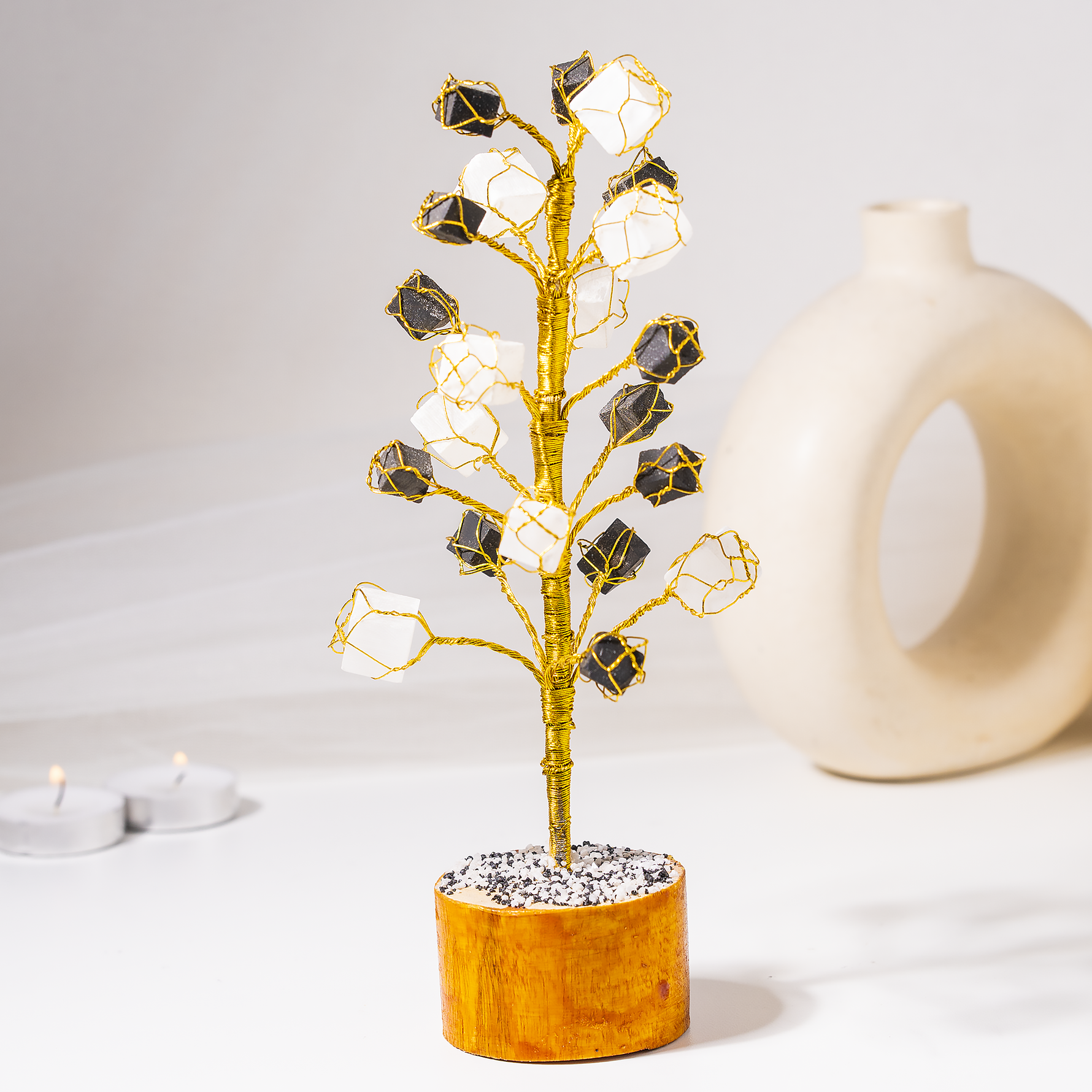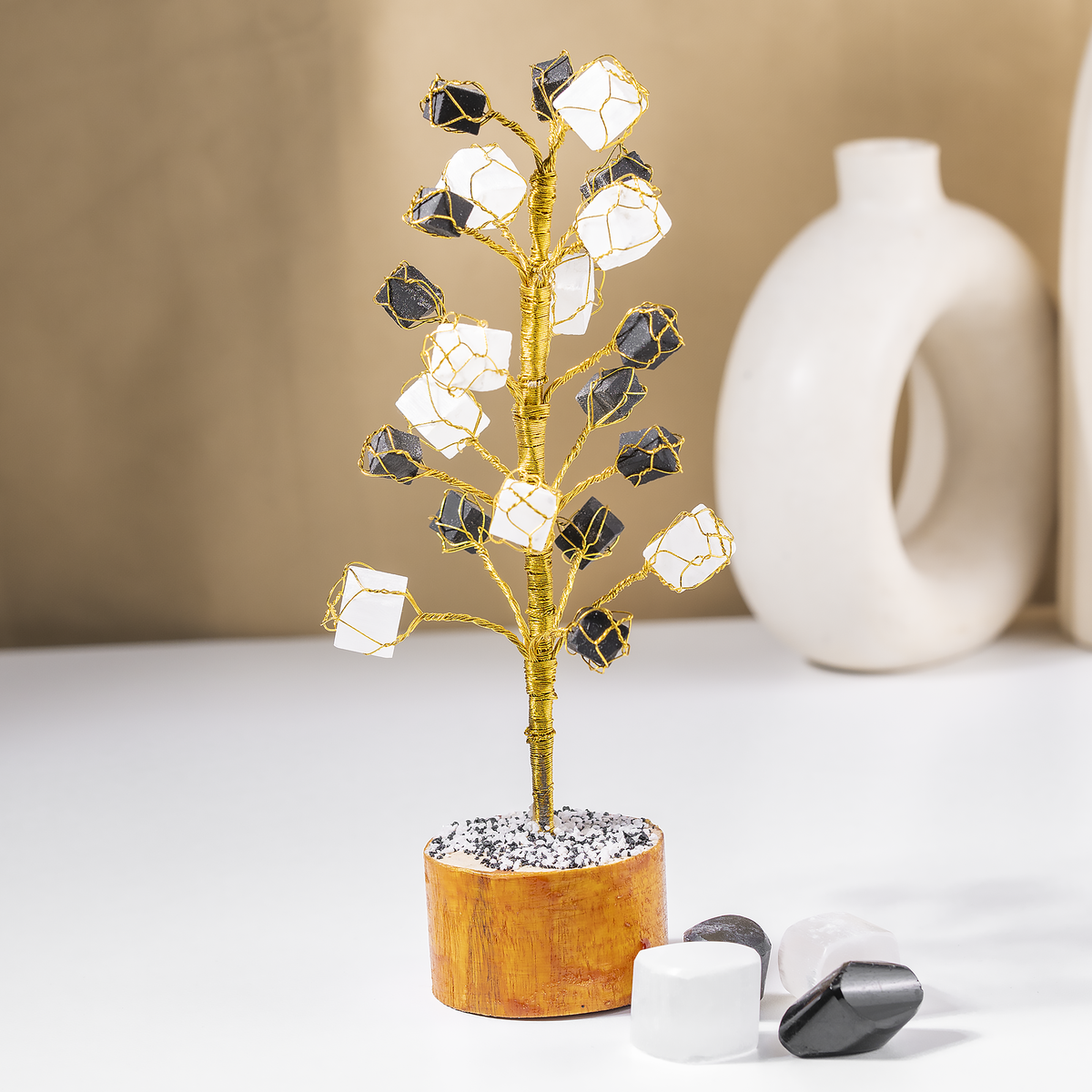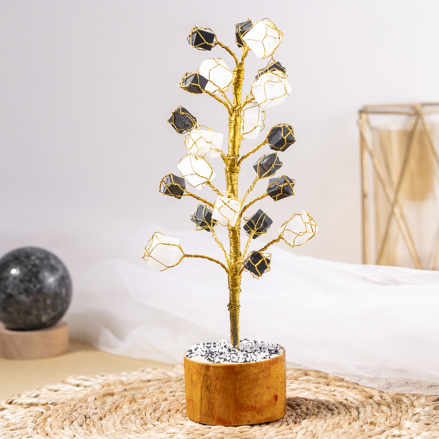 Bring harmony and protection into your space with this Selenite & Black Tourmaline Crystal Tree, beautifully crafted as a Tree of Life. Selenite clears and uplifts energy, while Black Tourmaline provides grounding and protection. Together, they create a powerful balance of cleansing and shielding energy—perfect for home décor, meditation spaces, or healing environments.