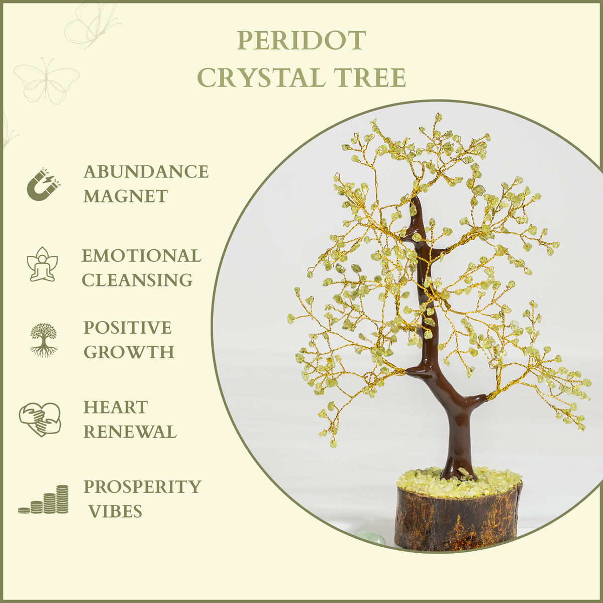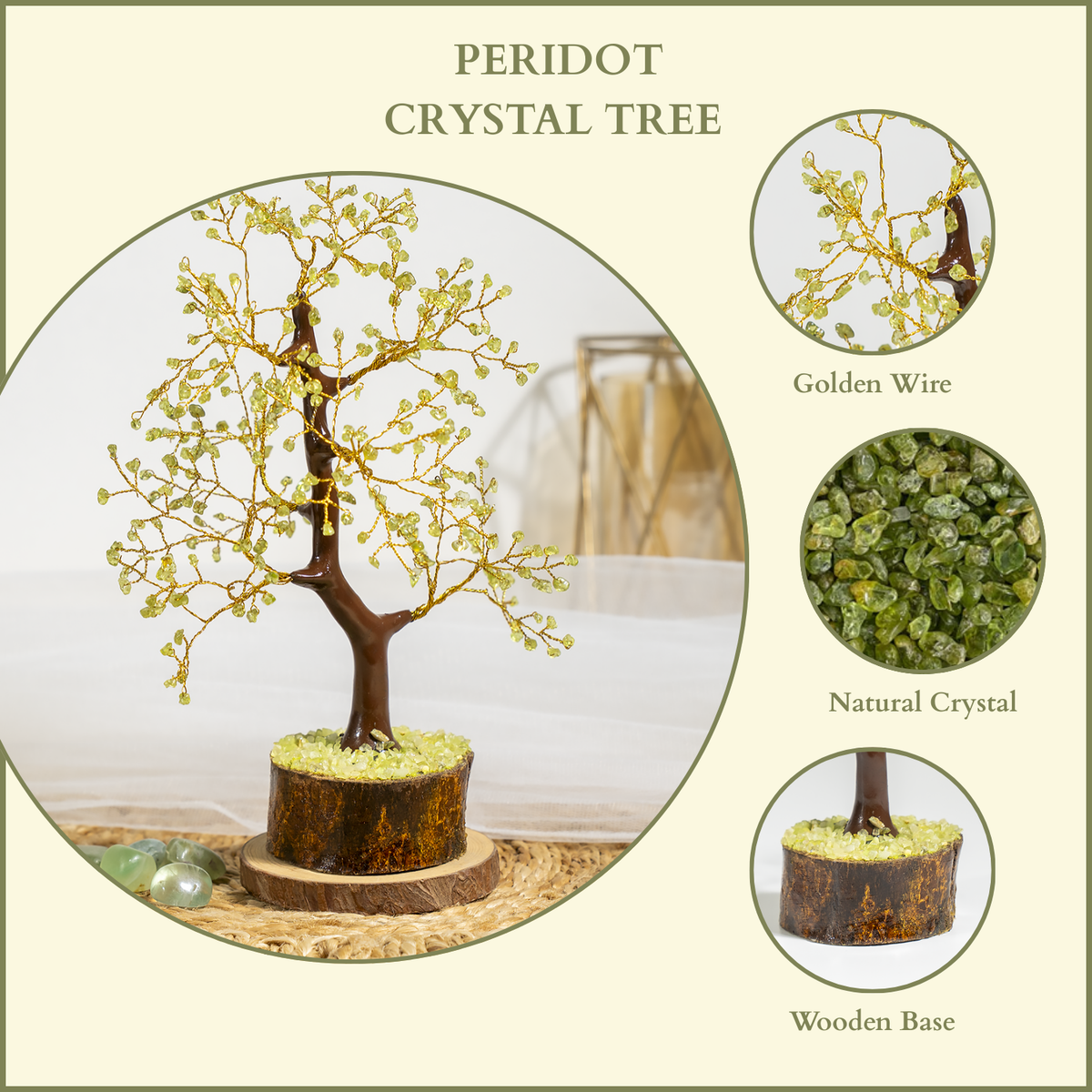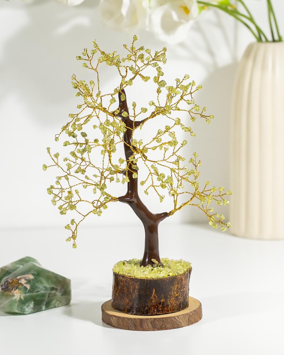 300 Chips Peridot Crystal Tree – Healing Crystal Tree of Life Home Décor