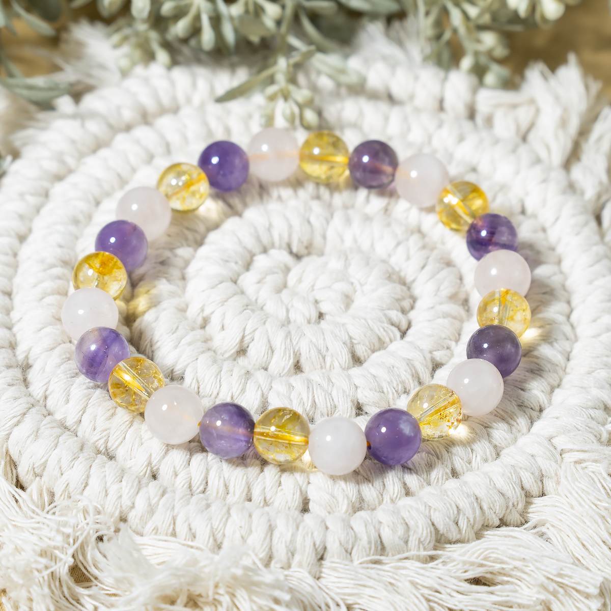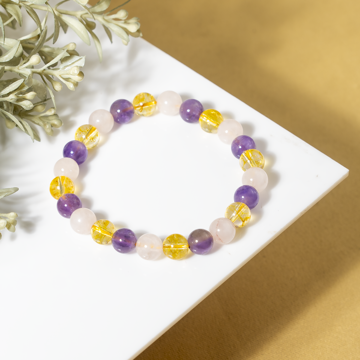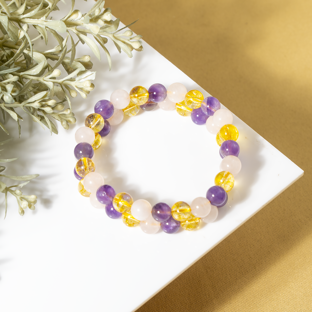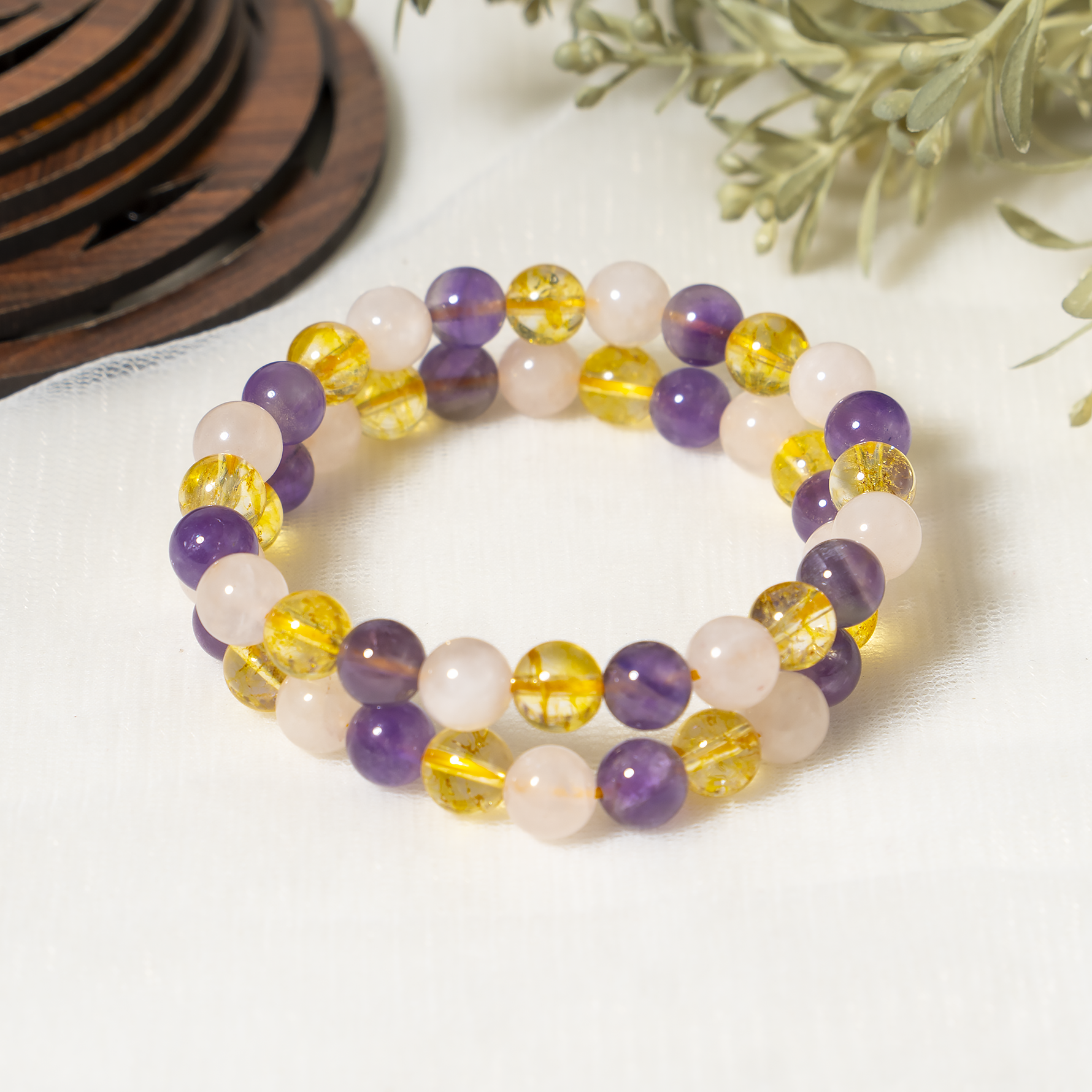 Consider it as: Crystal healing bracelet, emotional healing bracelet, rose quartz bracelet, amethyst bracelet, citrine bracelet, gemstone bracelet, energy healing jewelry, positive energy bracelet, chakra bracelet, spiritual bracelet.