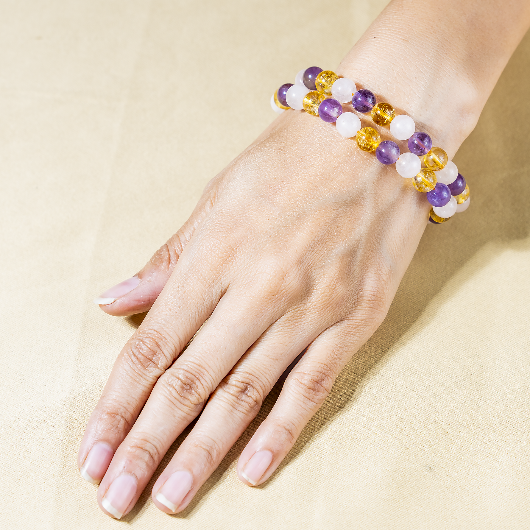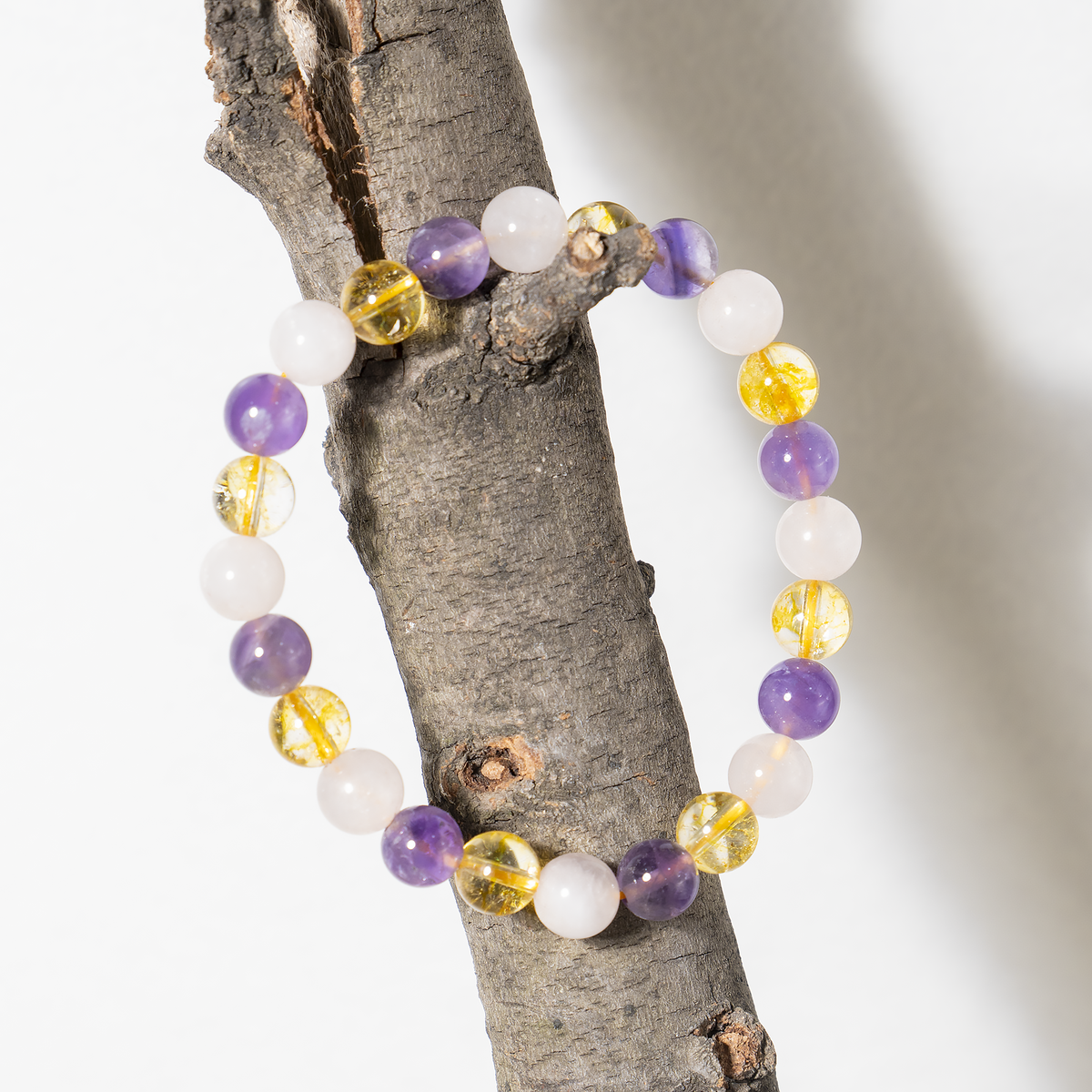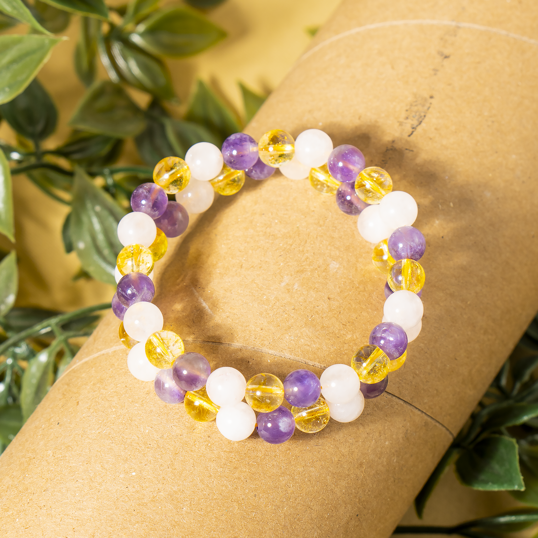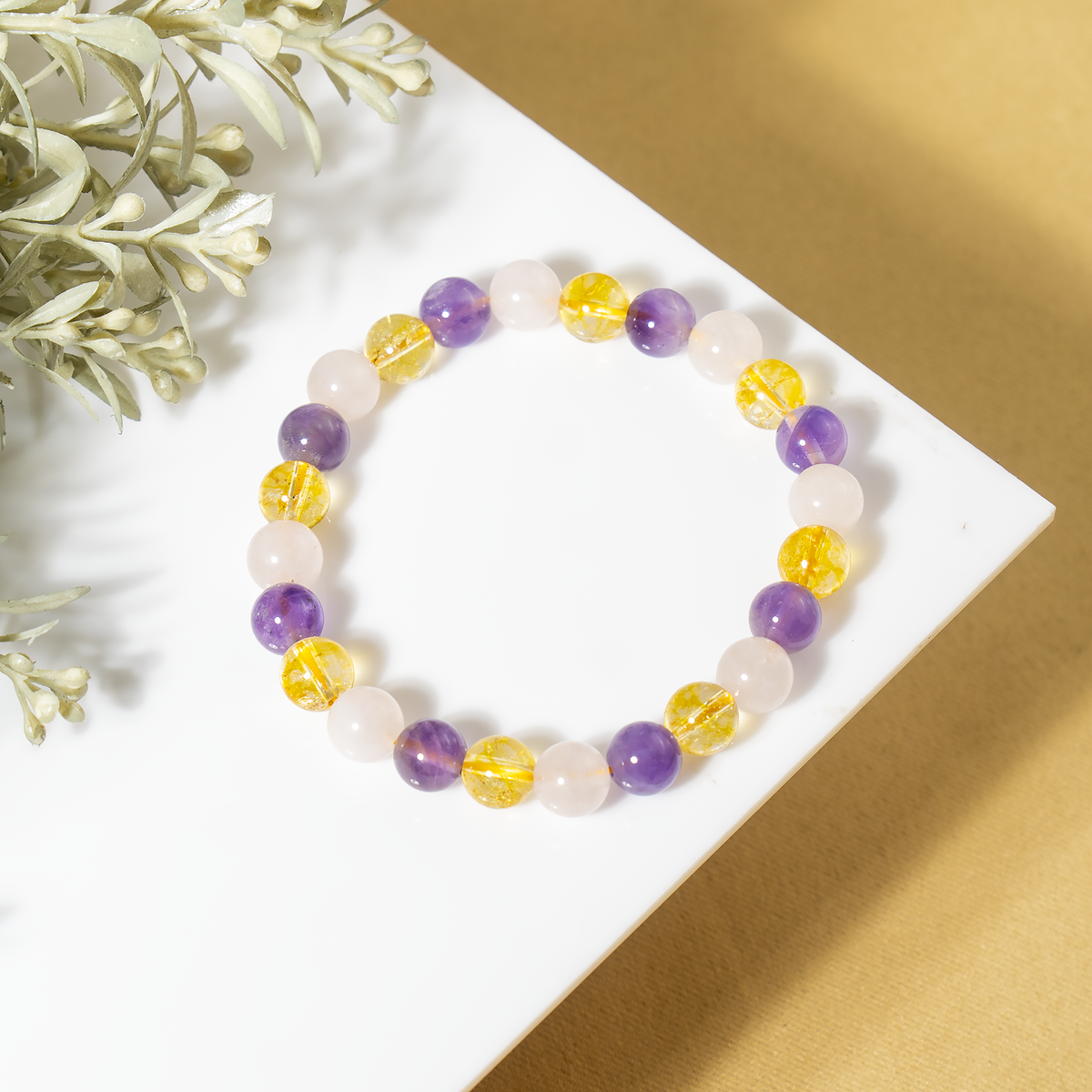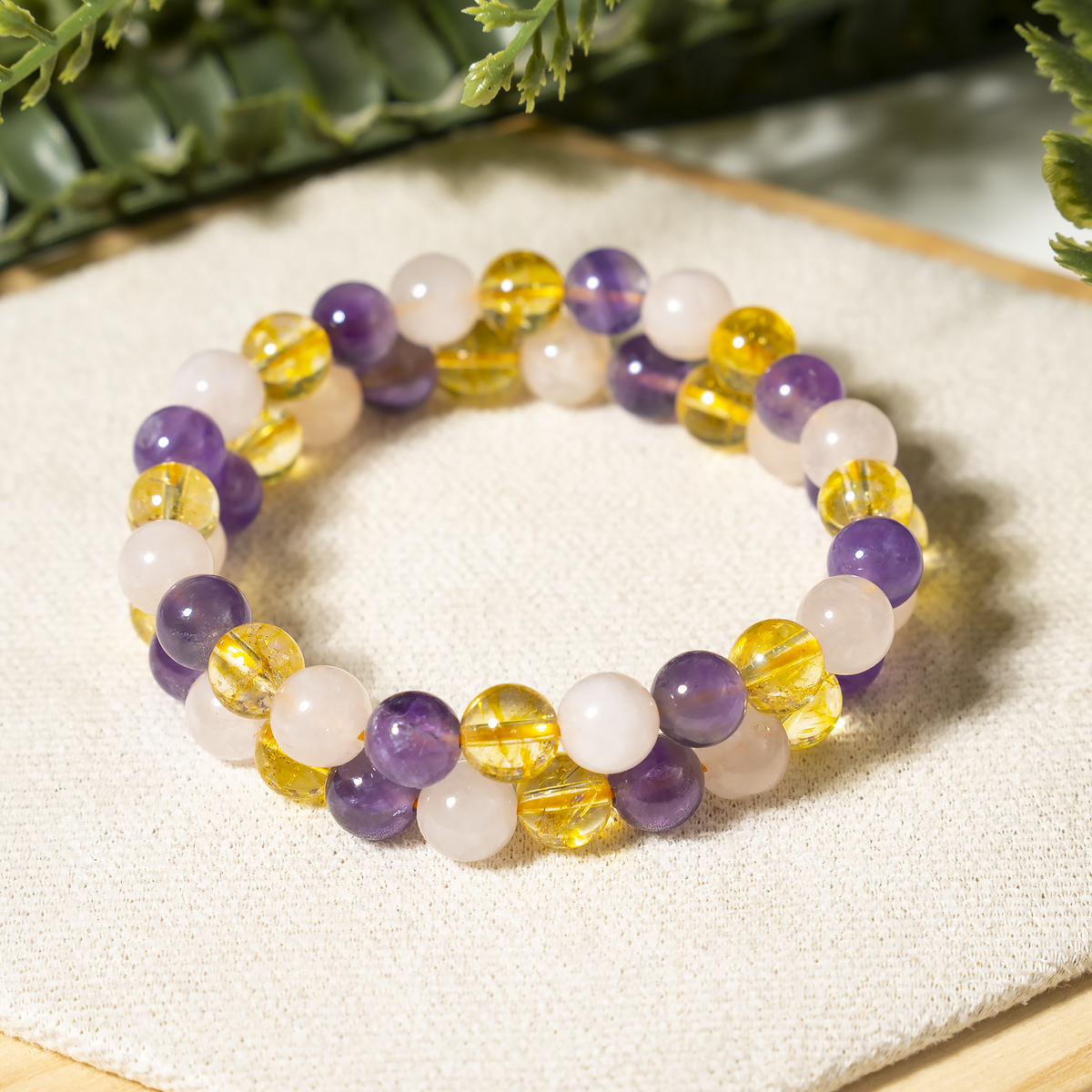 Consider it as: Crystal healing bracelet, emotional healing bracelet, rose quartz bracelet, amethyst bracelet, citrine bracelet, gemstone bracelet, energy healing jewelry, positive energy bracelet, chakra bracelet, spiritual bracelet.