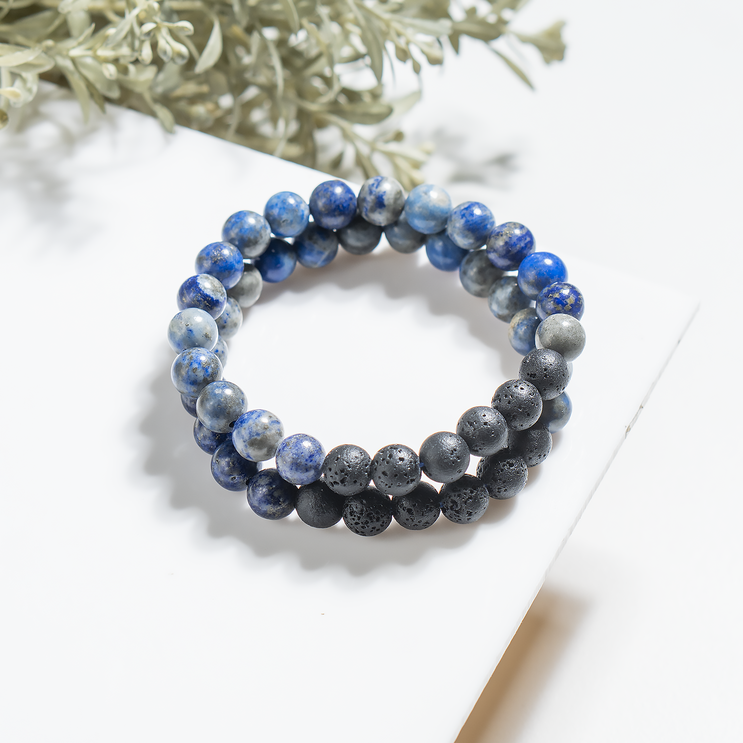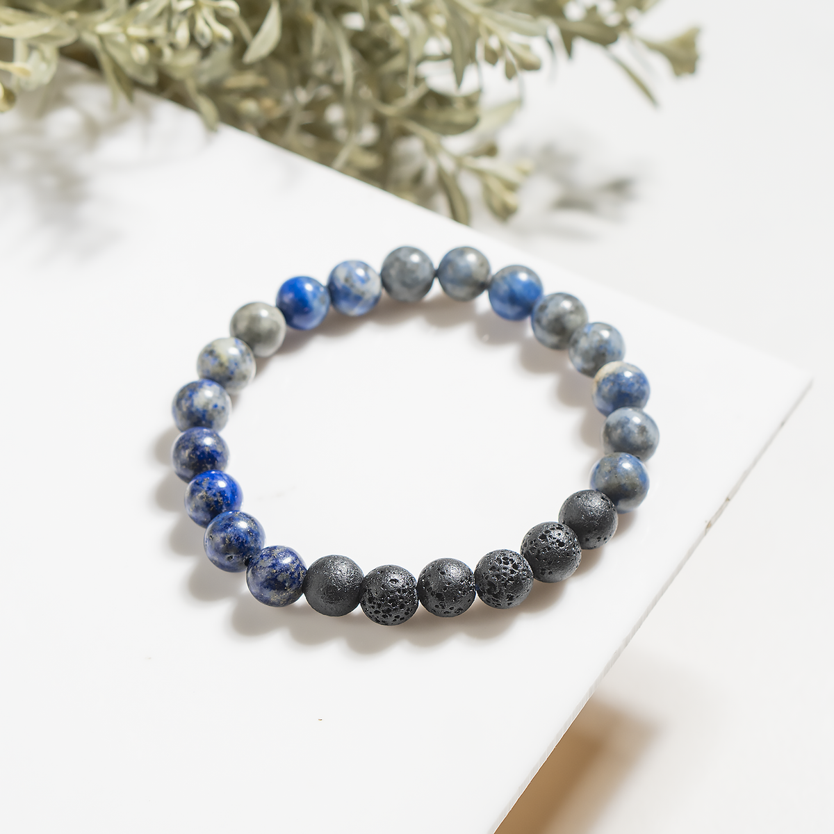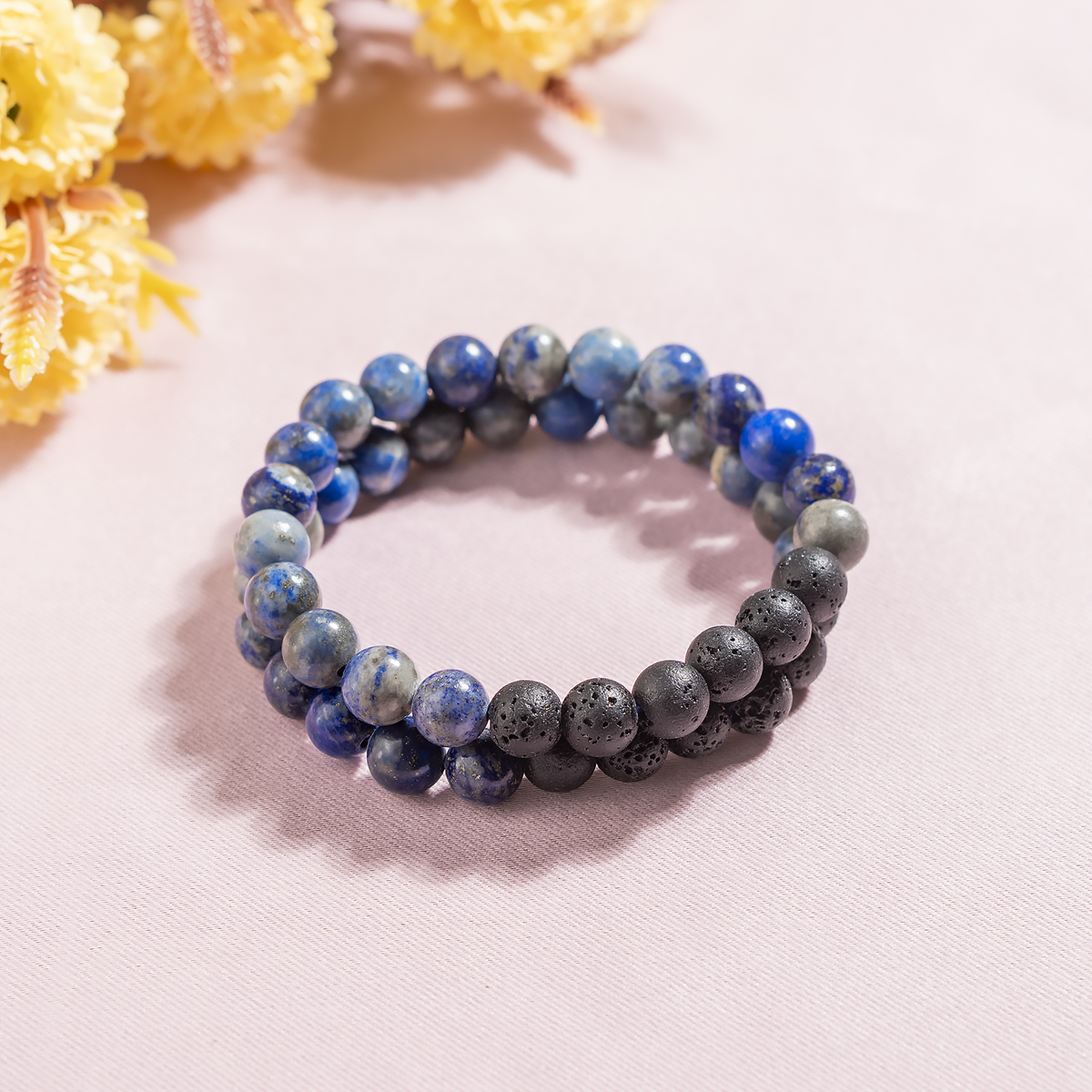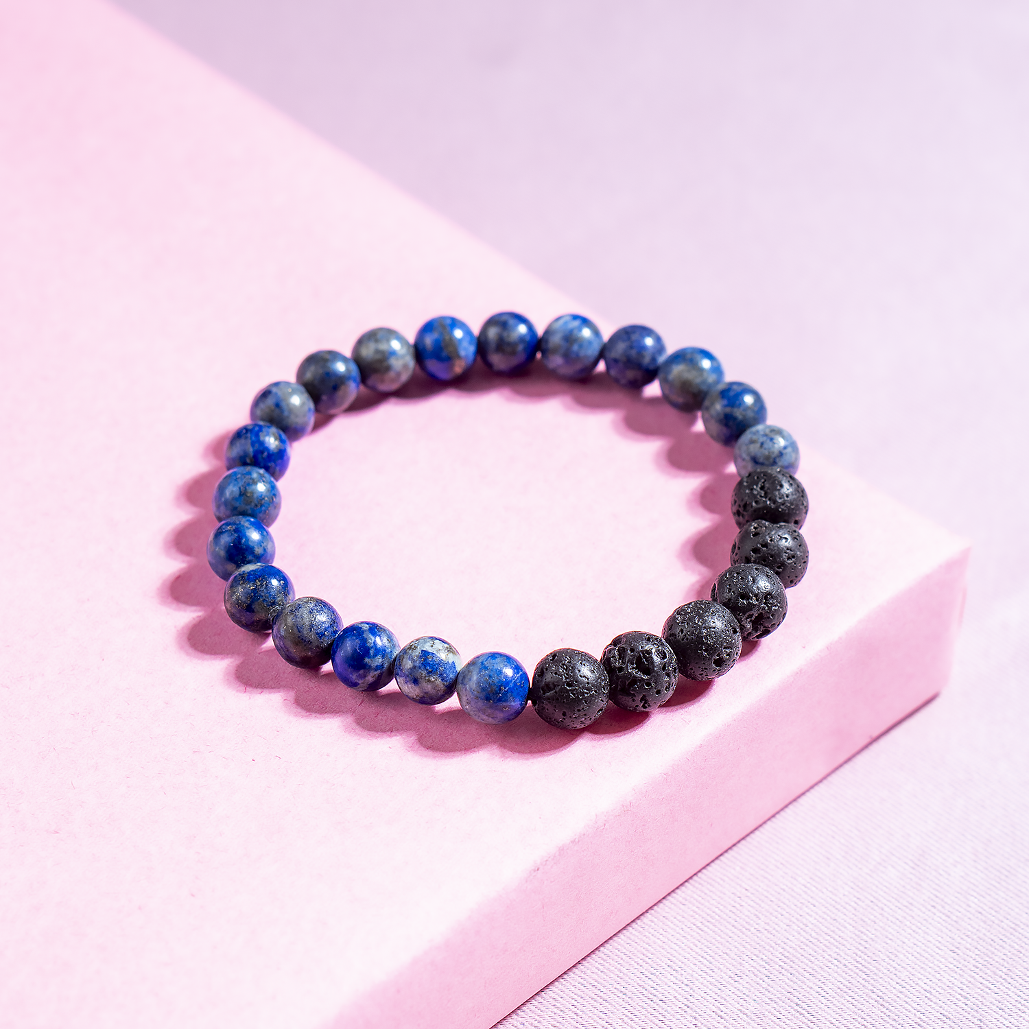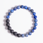This bracelet features deep blue Lapis Lazuli beads paired with porous lava stones, perfect for meditation, intuition, and aromatherapy. Add a few drops of your favorite essential oil to the lava beads for calming, on-the-go energy.