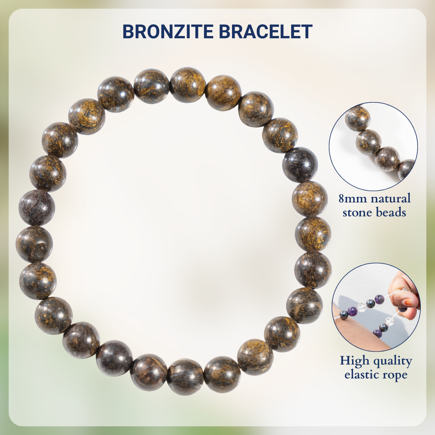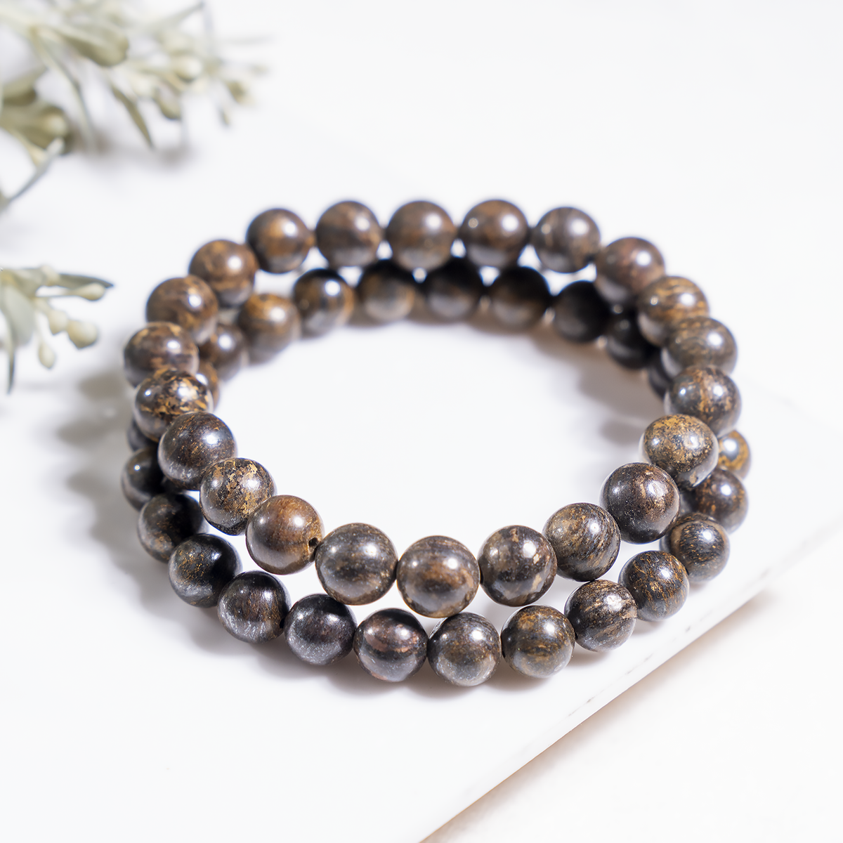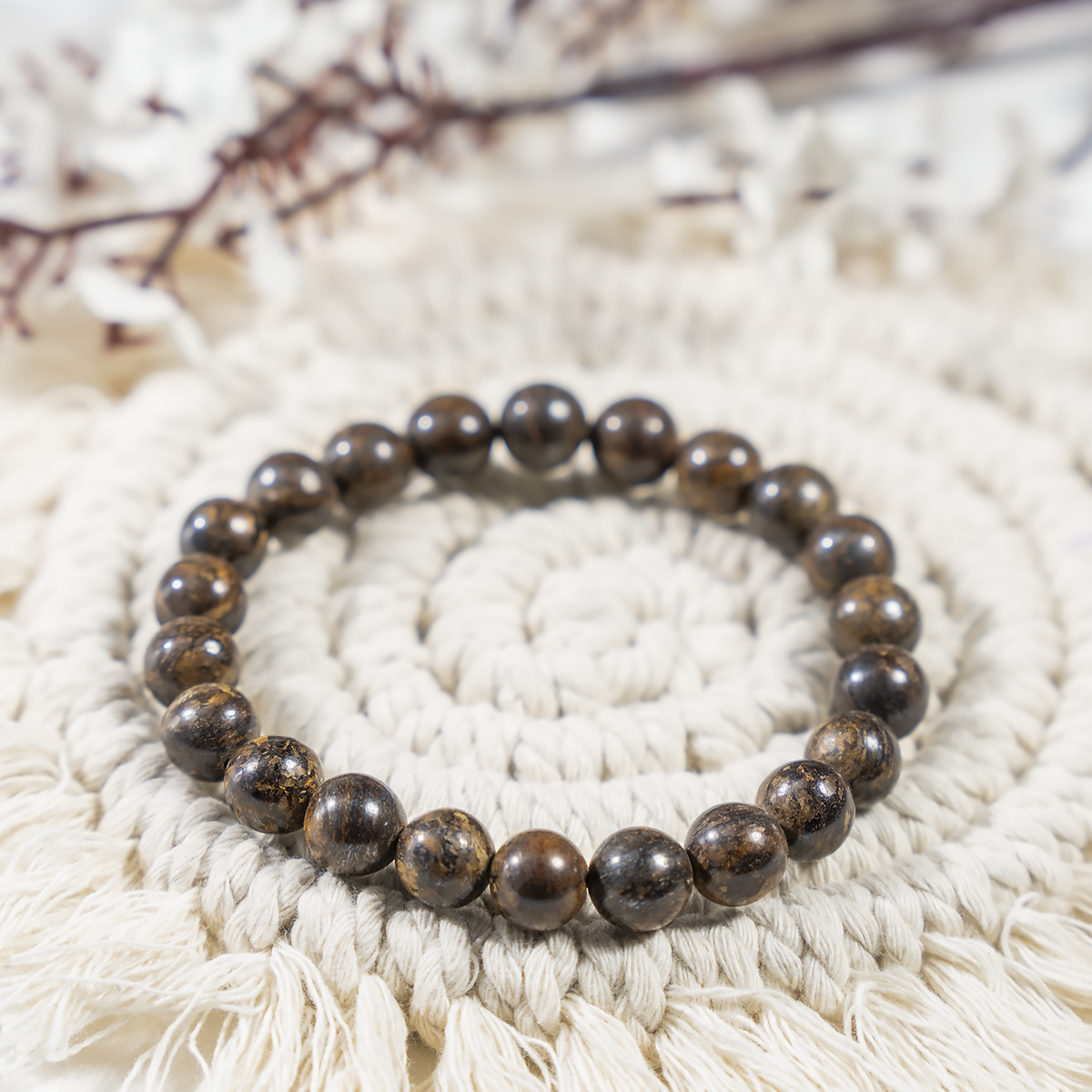 A grounding Bronzite Crystal Bracelet made from polished natural stones. Its earthy brown tones make it a stylish accessory while offering protective and balancing energies.