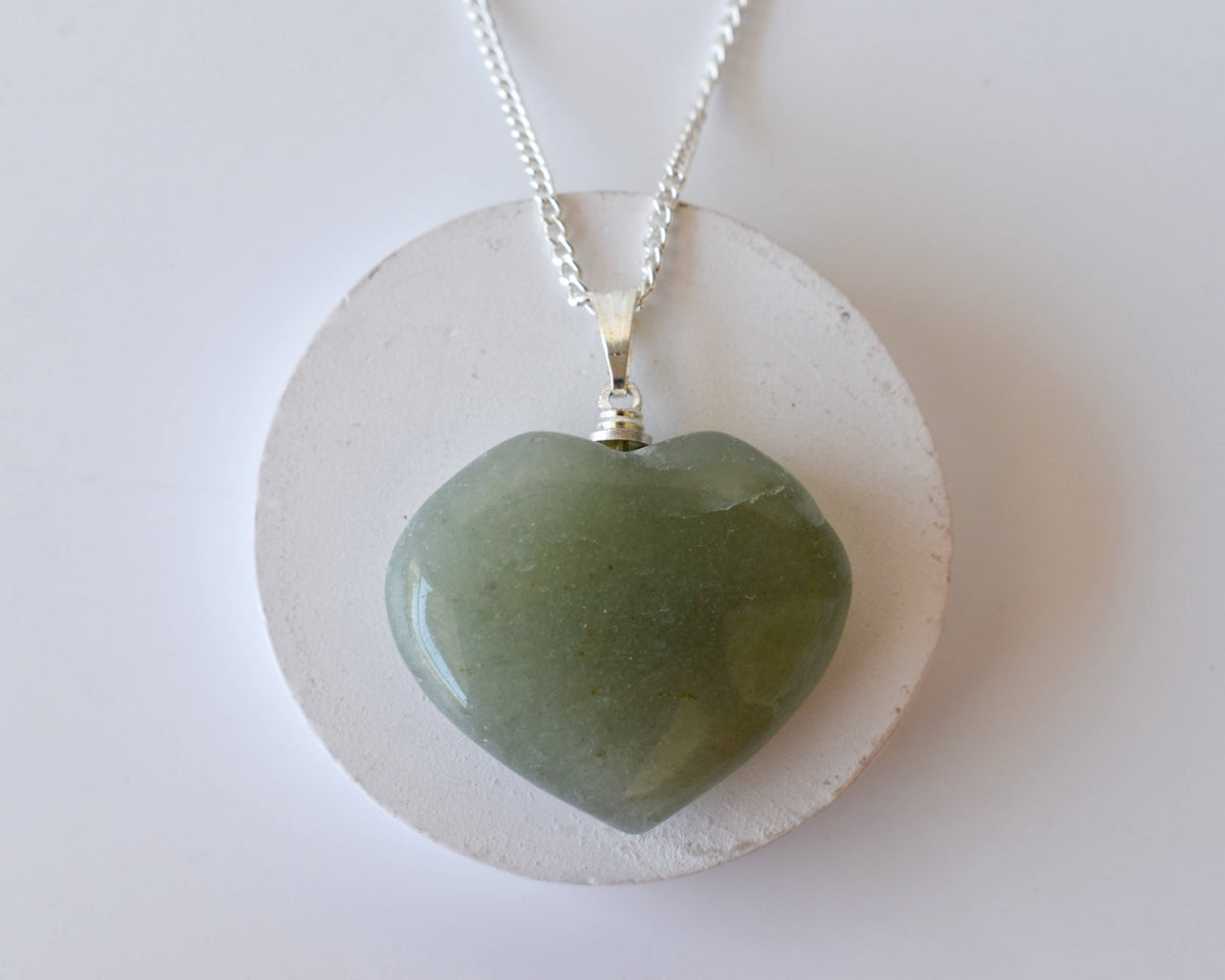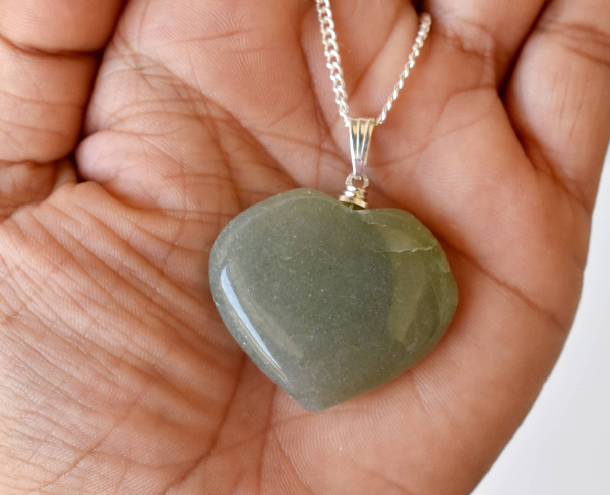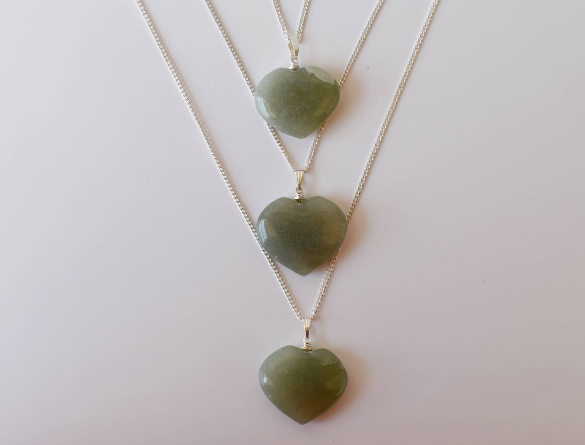Real Green Aventurine Crystal Heart Pendant, Genuine Heart Shaped Necklaces