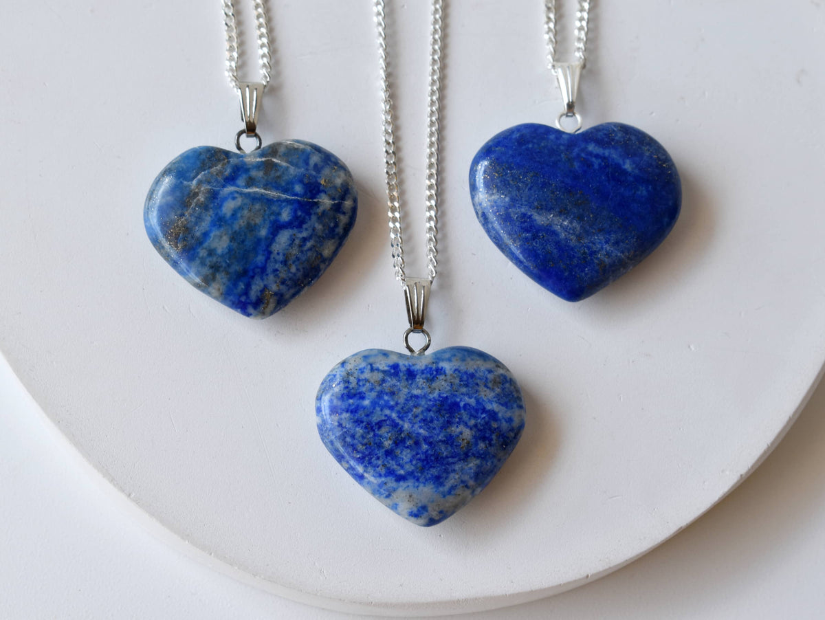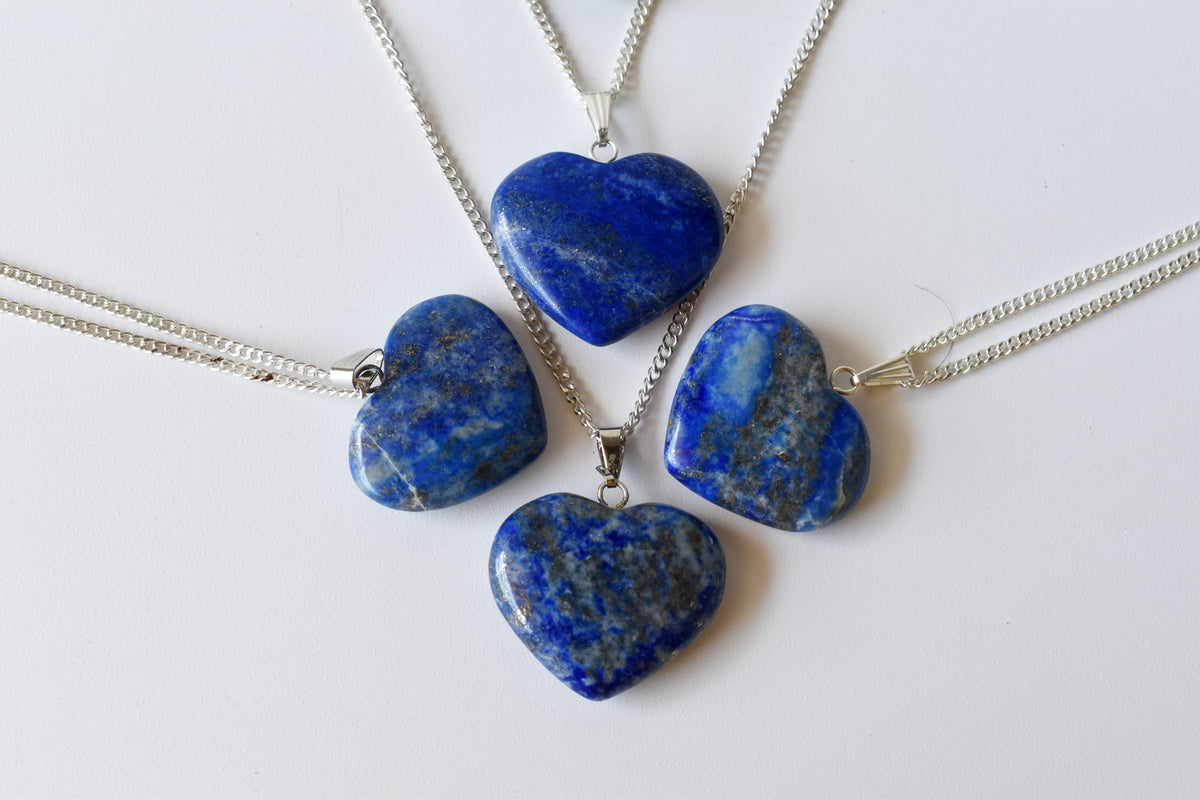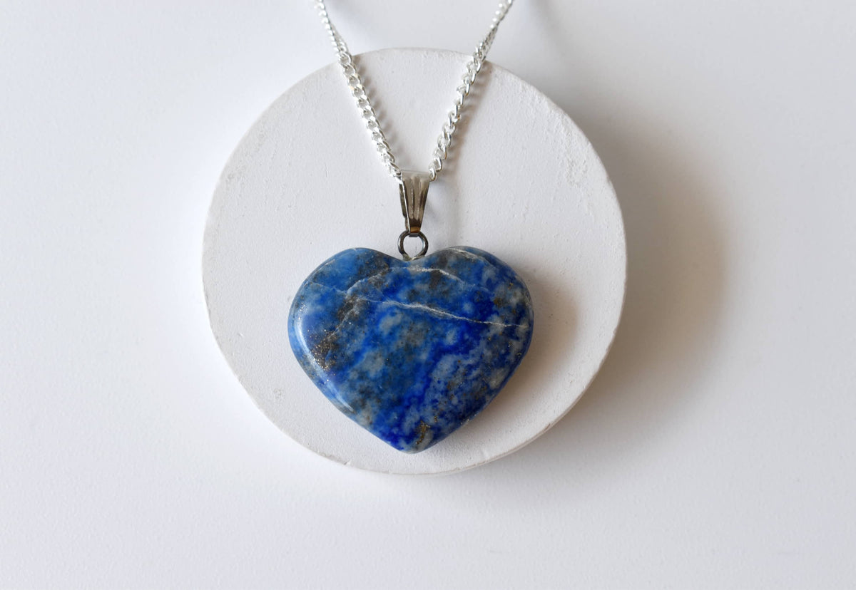 Real Lapis Lazuli Crystal Heart Pendant, Genuine Heart Shaped Necklaces