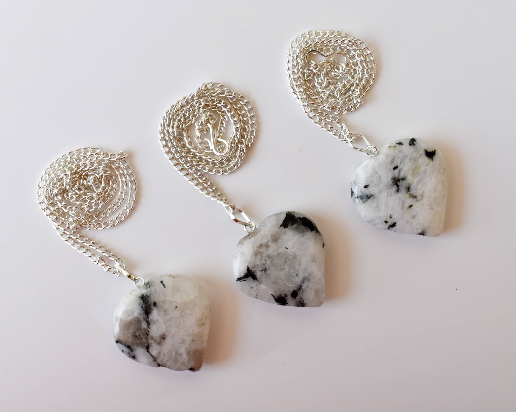 π·The Rainbow Moonstone Crystal Heart Pendant will bring love, healing and beauty into your life, while the sterling silver chain adds a touch of sophistication.
