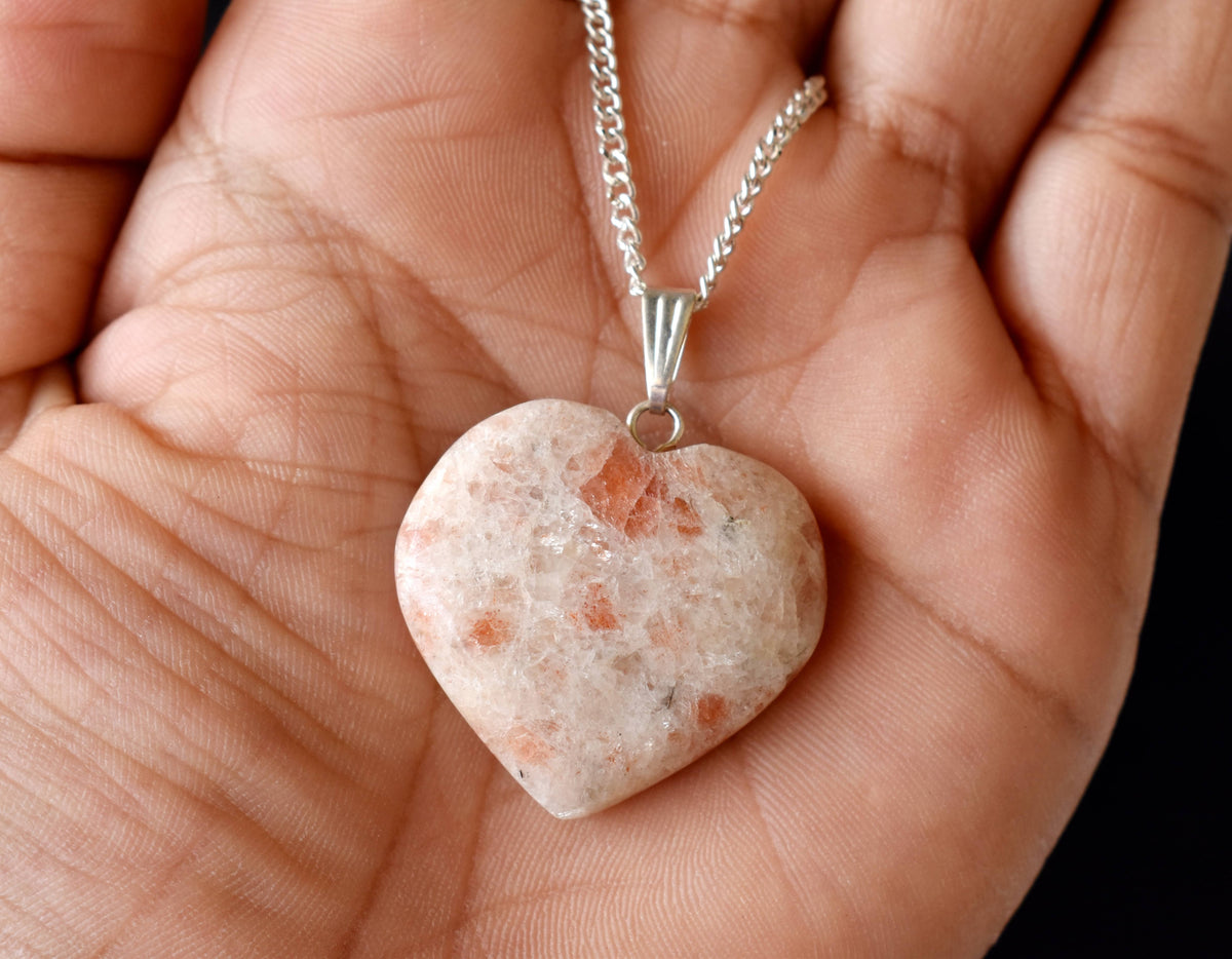 Real Sunstone Crystal Heart Pendant, Genuine Heart Shaped Necklaces