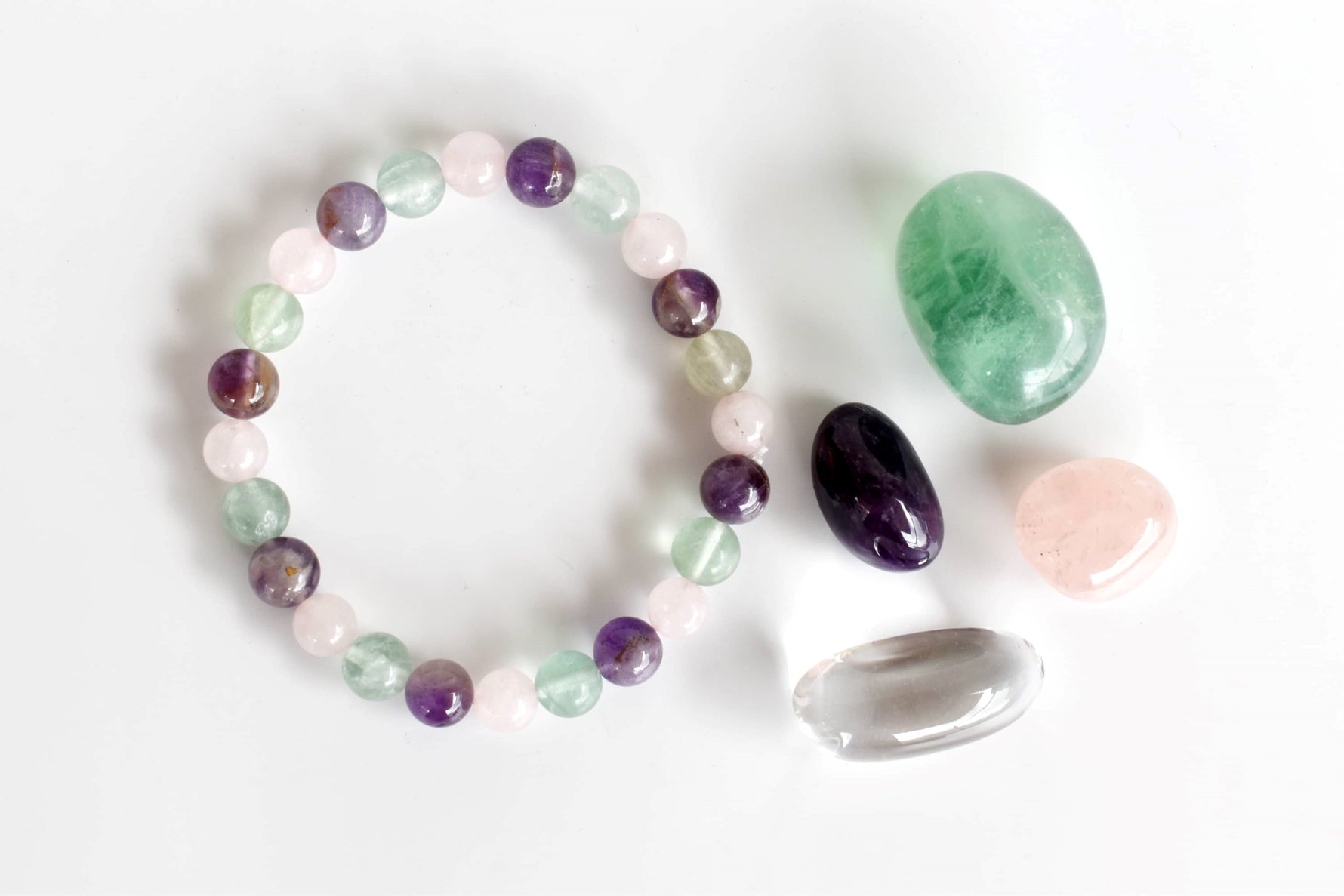 • Gemstones : Amethyst, Rose Quartz, Green Fluorite, Clear Quartz