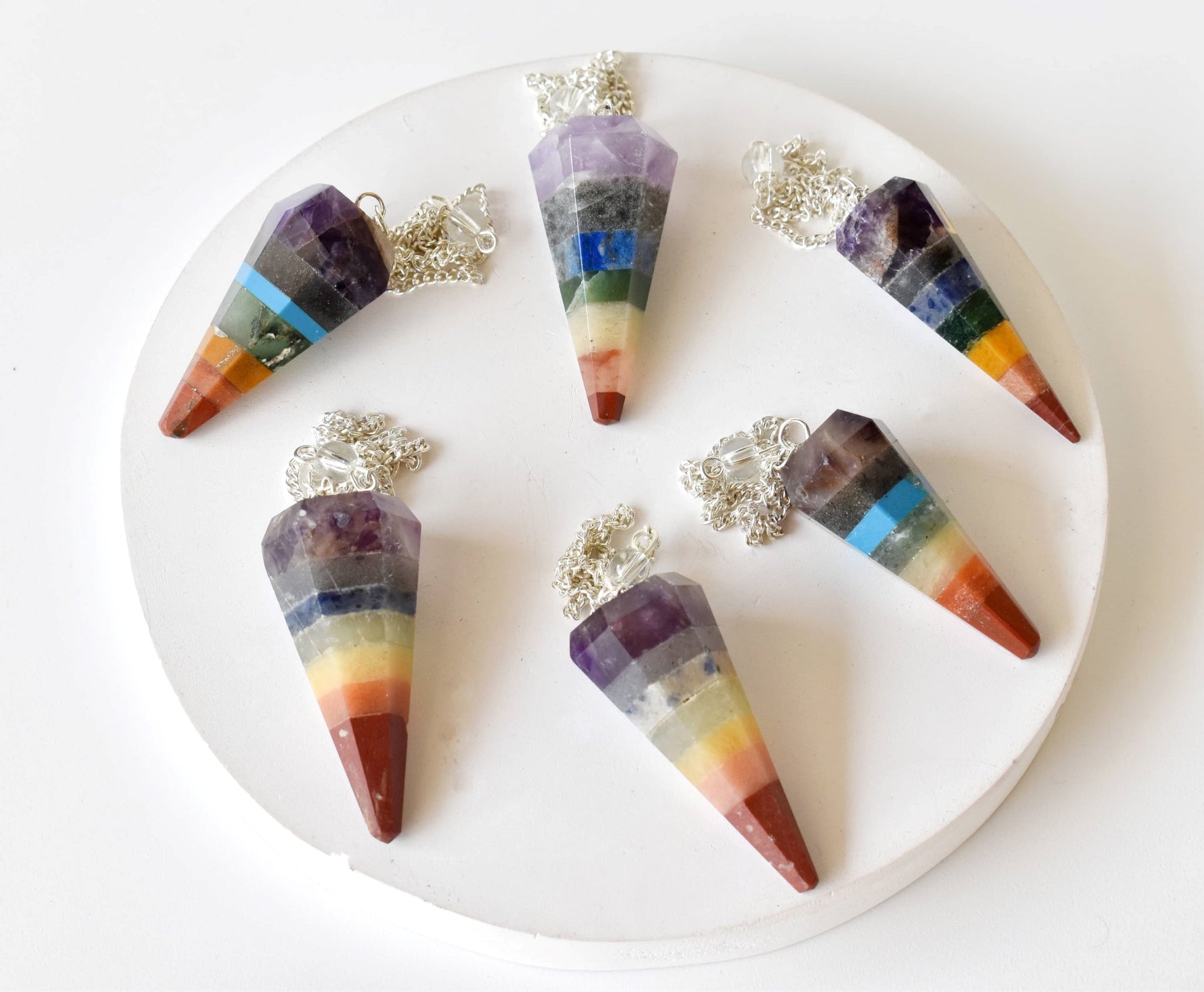 This 7 chakra kit faceted pendulum is a powerful tool for those seeking balance and alignment in their chakras. Each pendulum is made with a different crystal that corresponds to one of the seven chakras, allowing you to focus your energy on specific areas of your body and mind. The faceted design adds an extra element of beauty and elegance to this already powerful tool.