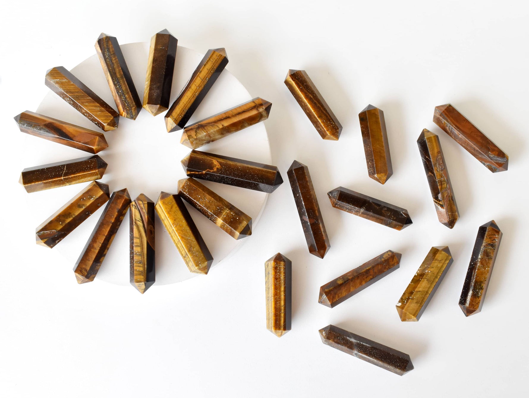 These Tiger Eye Double Terminated Crystal Point Pencils are perfect for those who love to write and also appreciate the beauty and energy of crystals. The double termination of the crystal allows energy to flow in both directions, making it a powerful tool for manifestation and healing.