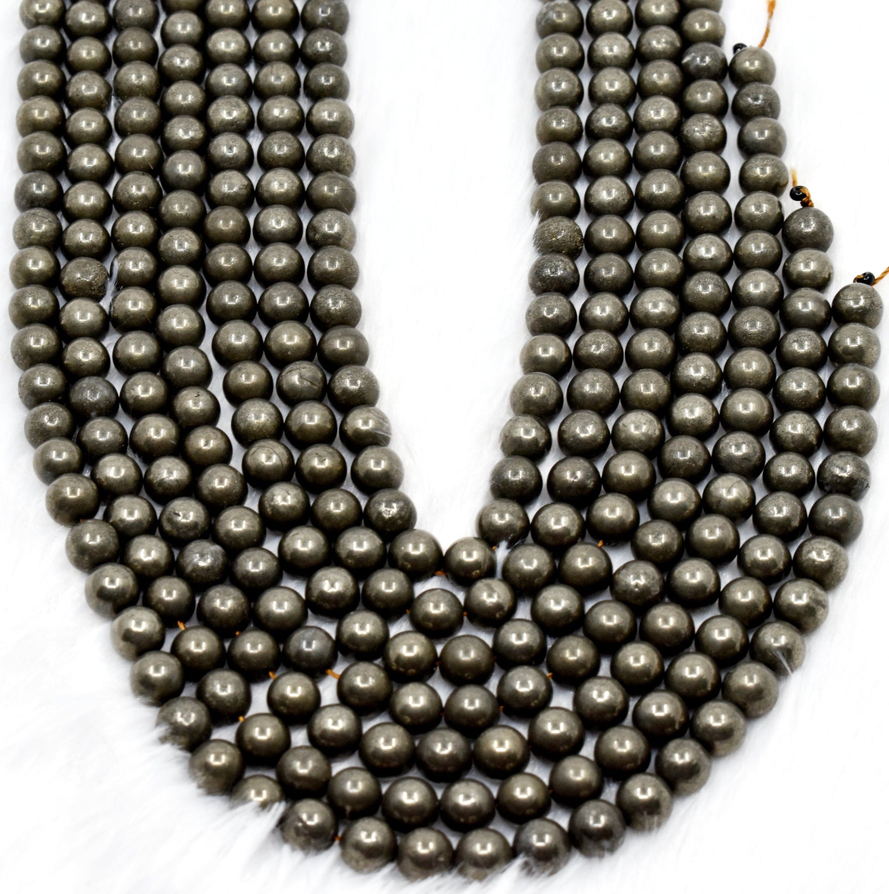 These Pyrite A beads lend an air of luxury and sophistication to any look - whether you pair them with a timeless dress or a modern jumpsuit, these beads will take any look to the next level. Each bead is unique and has it's own unique brilliance and flash which sets them apart from the rest.