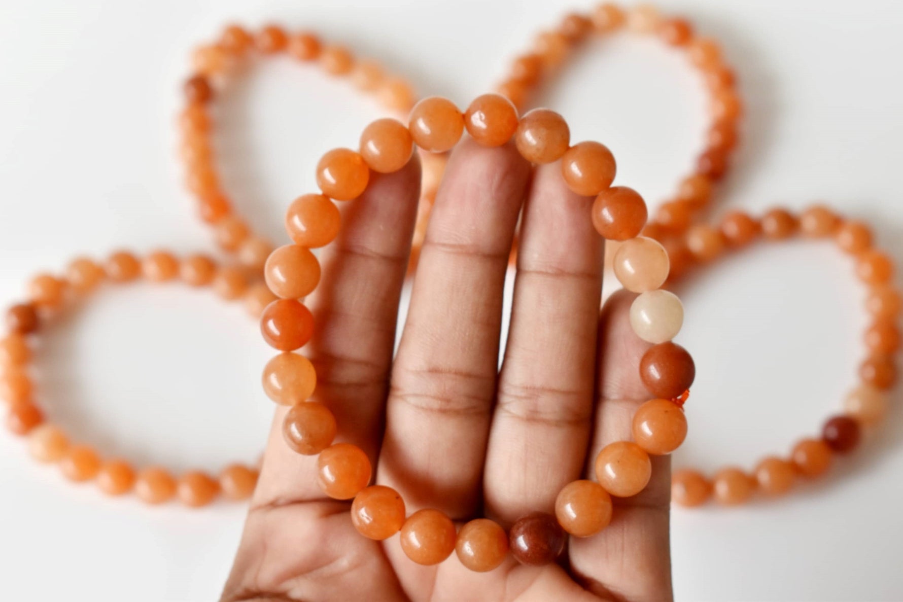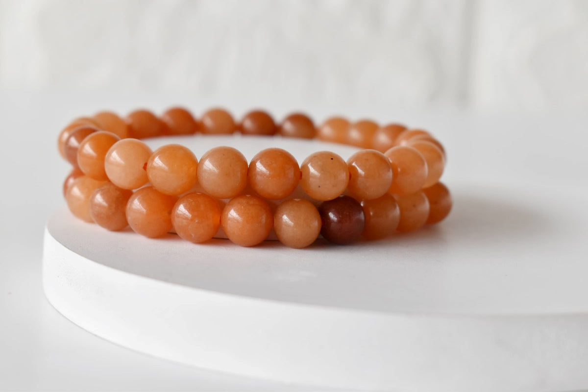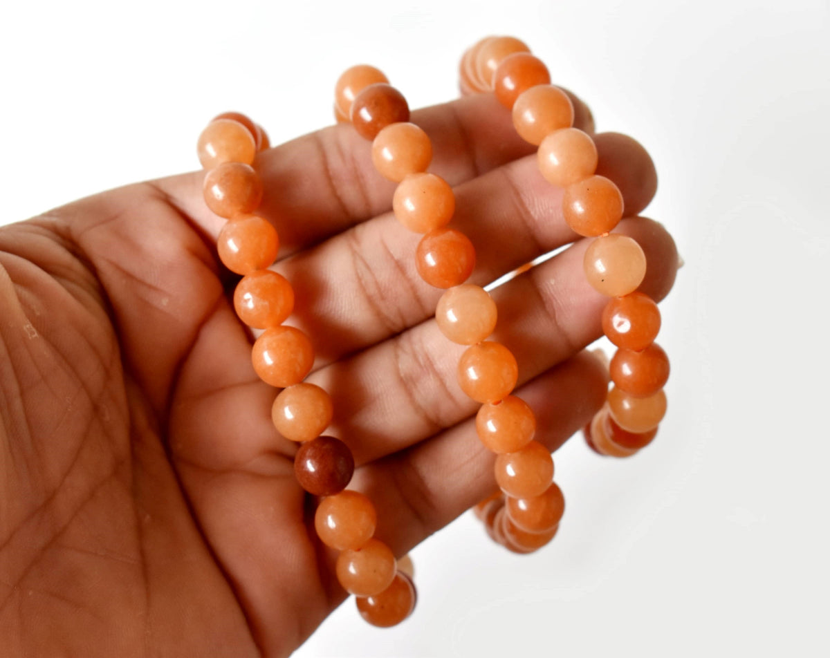 A vibrant bracelet made with natural Red Aventurine stones, known for their energetic red tones. This stylish accessory combines natural beauty with grounding and motivating energy.