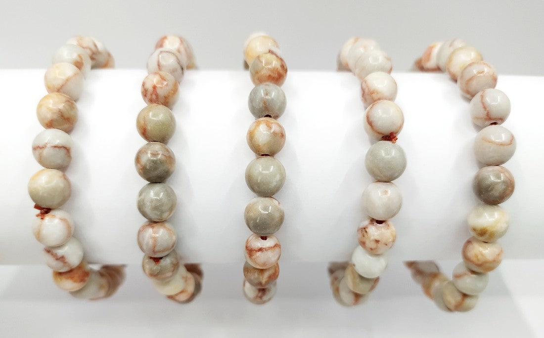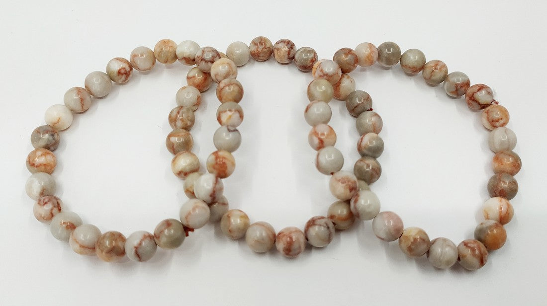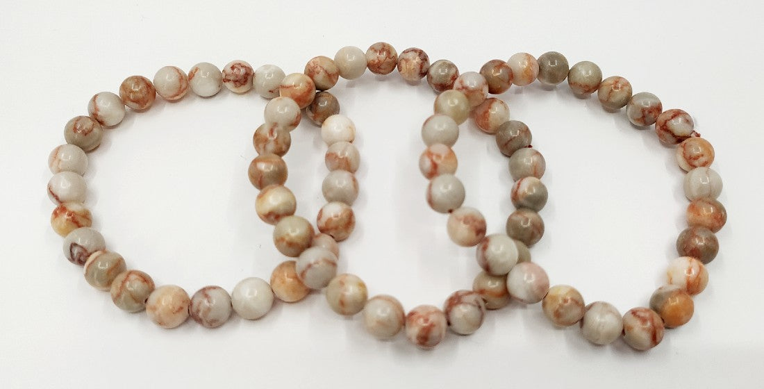 This eye-catching bracelet features Red Picasso Jasper, known for its unique swirls of red and earthy tones. It’s cherished for grounding energy, boosting creativity, and supporting emotional stability, making it both a stylish accessory and a wellness tool.