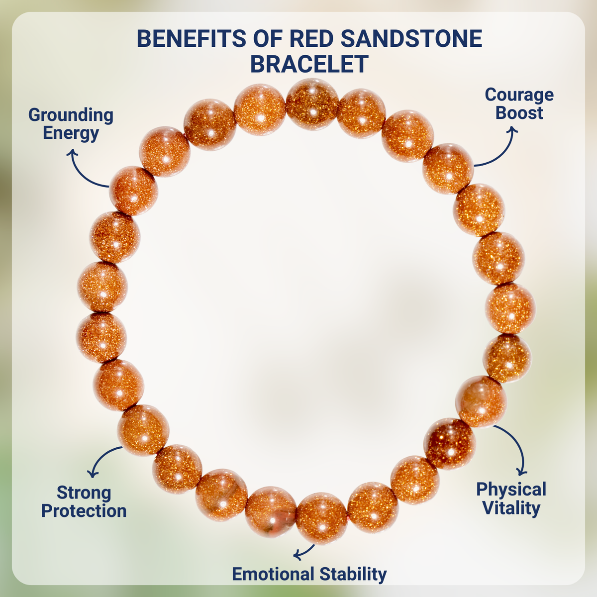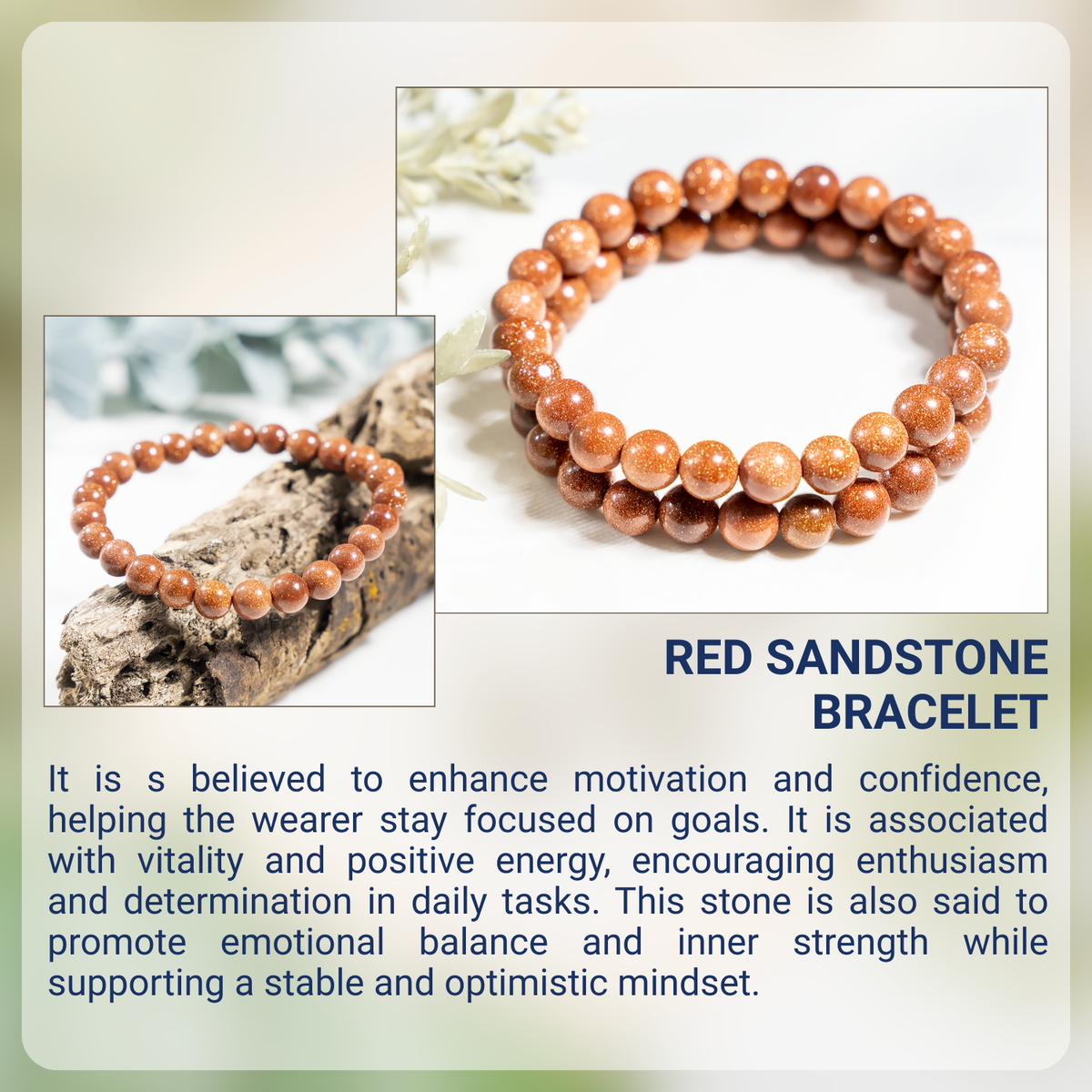 A stylish bracelet crafted with natural Red Sandstone beads, featuring warm earthy tones with a subtle shimmer. This accessory combines natural beauty with grounding and stabilizing energy.