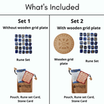 • Set 2 : Runes, Pouch, Info Cards + 6" Wooden Grid Plate