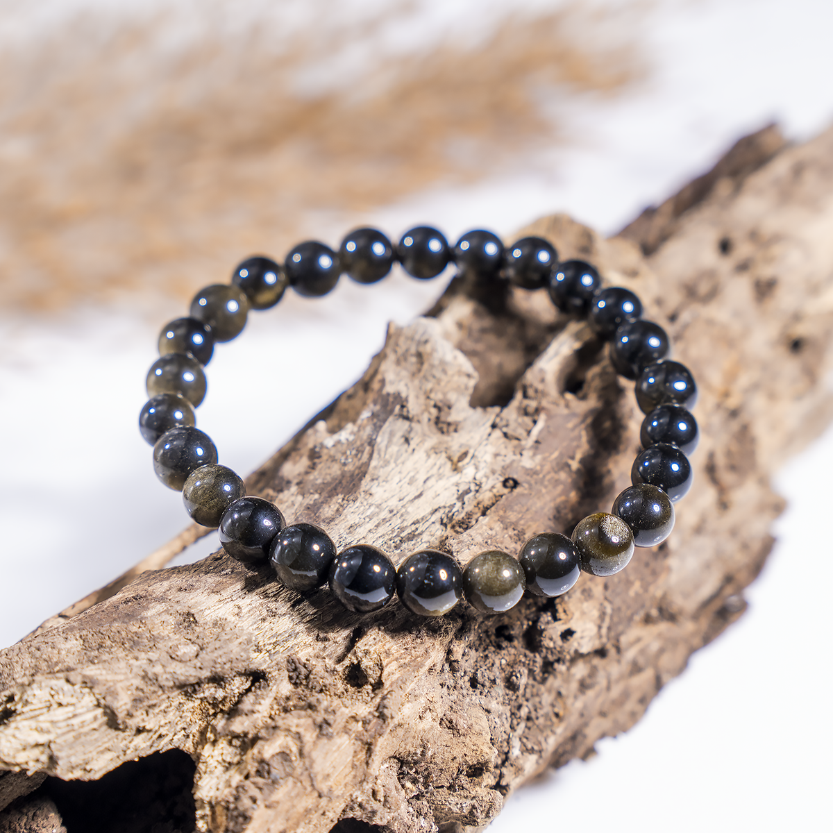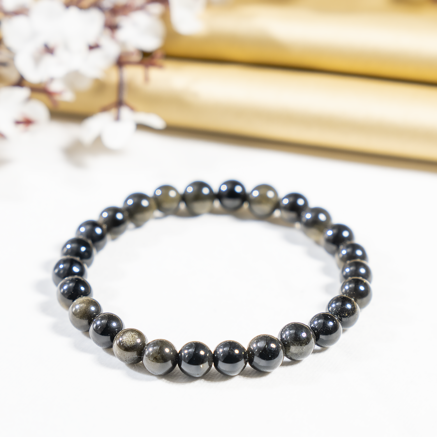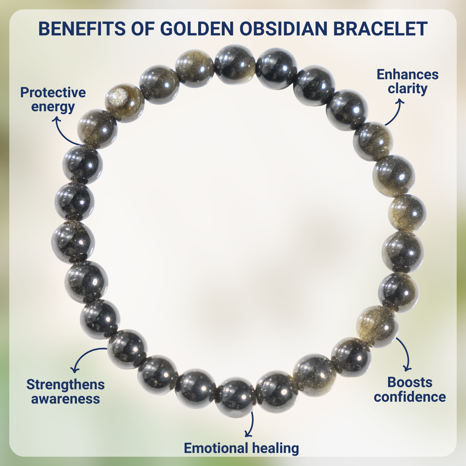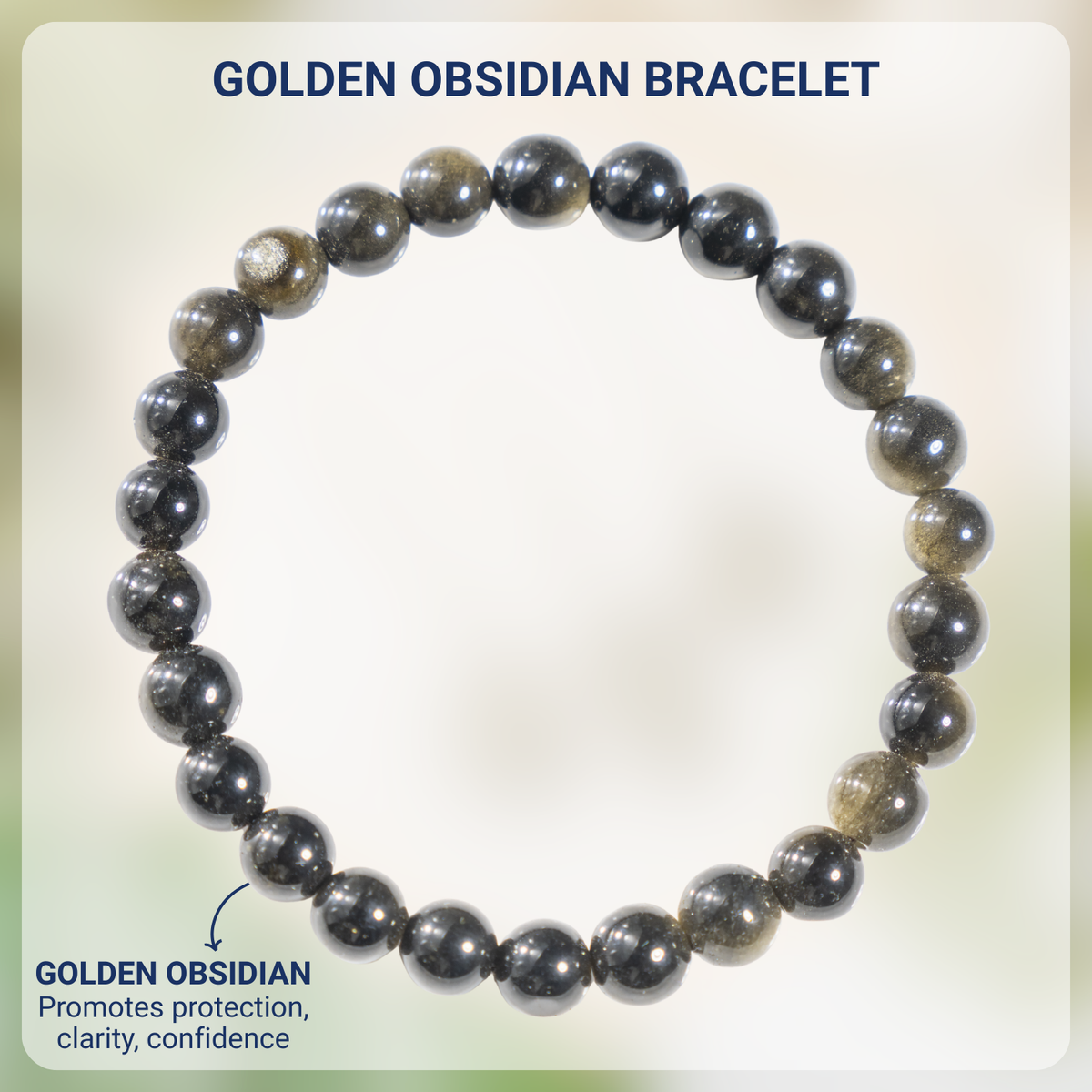 A striking bracelet crafted with Golden Obsidian beads, known for its protective and grounding energy.