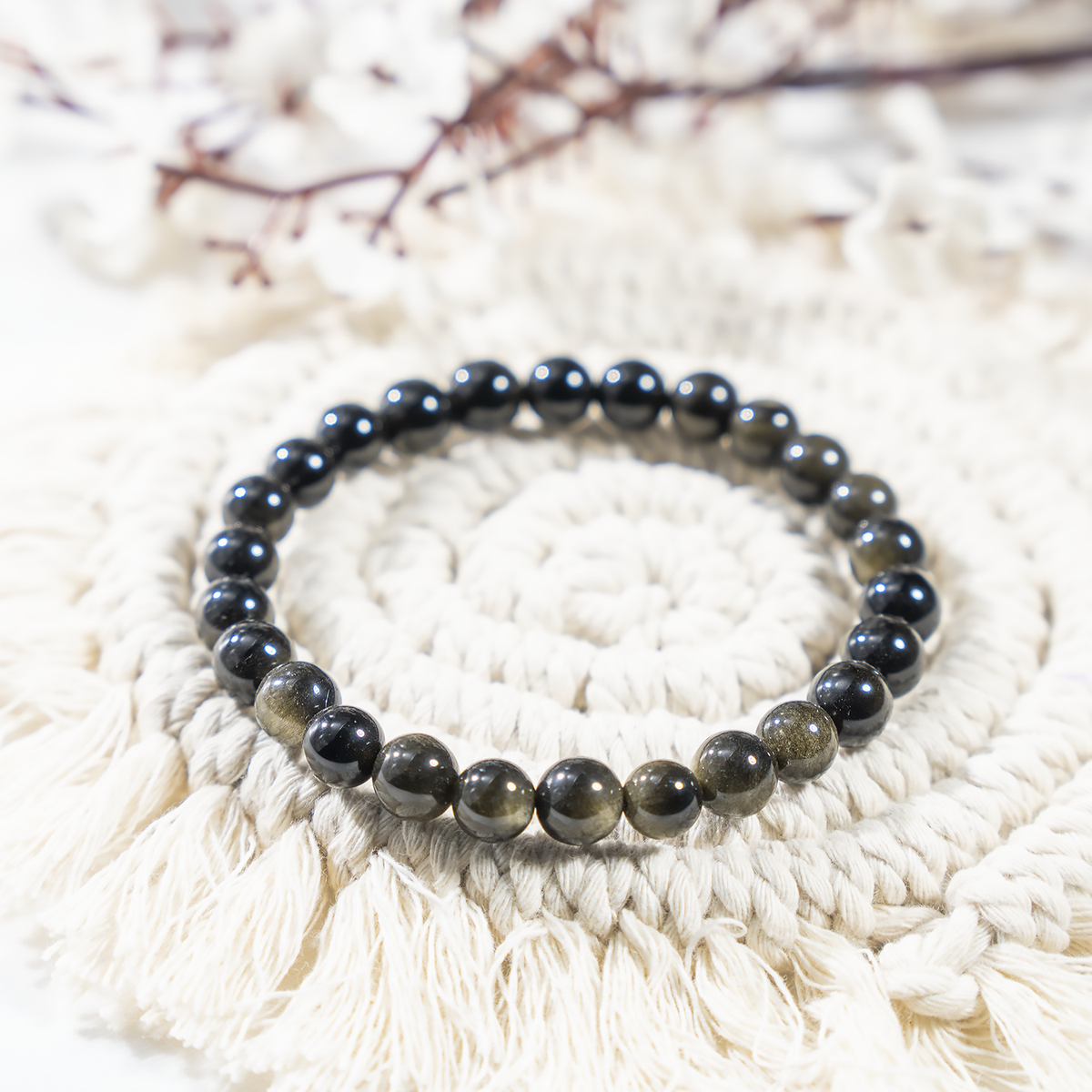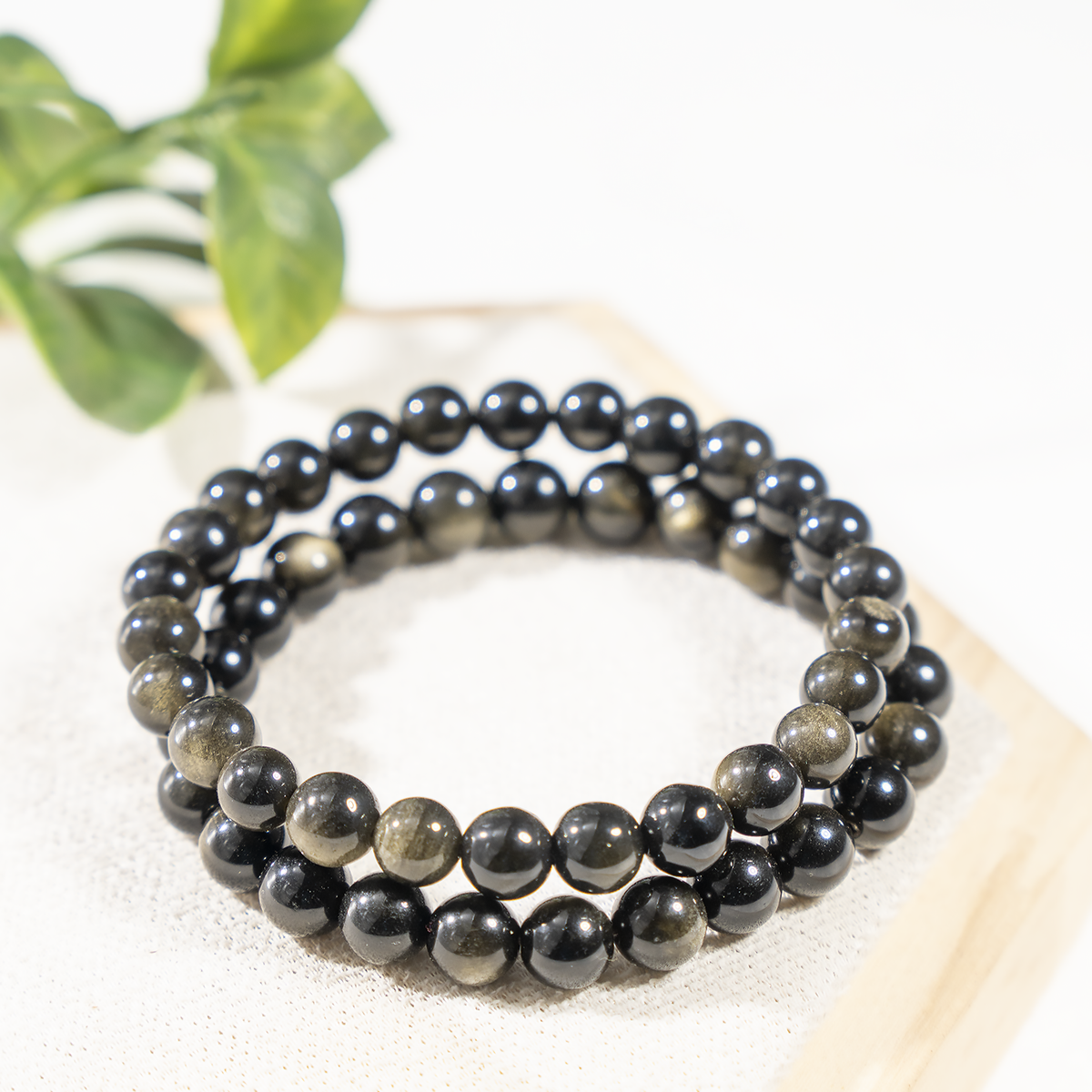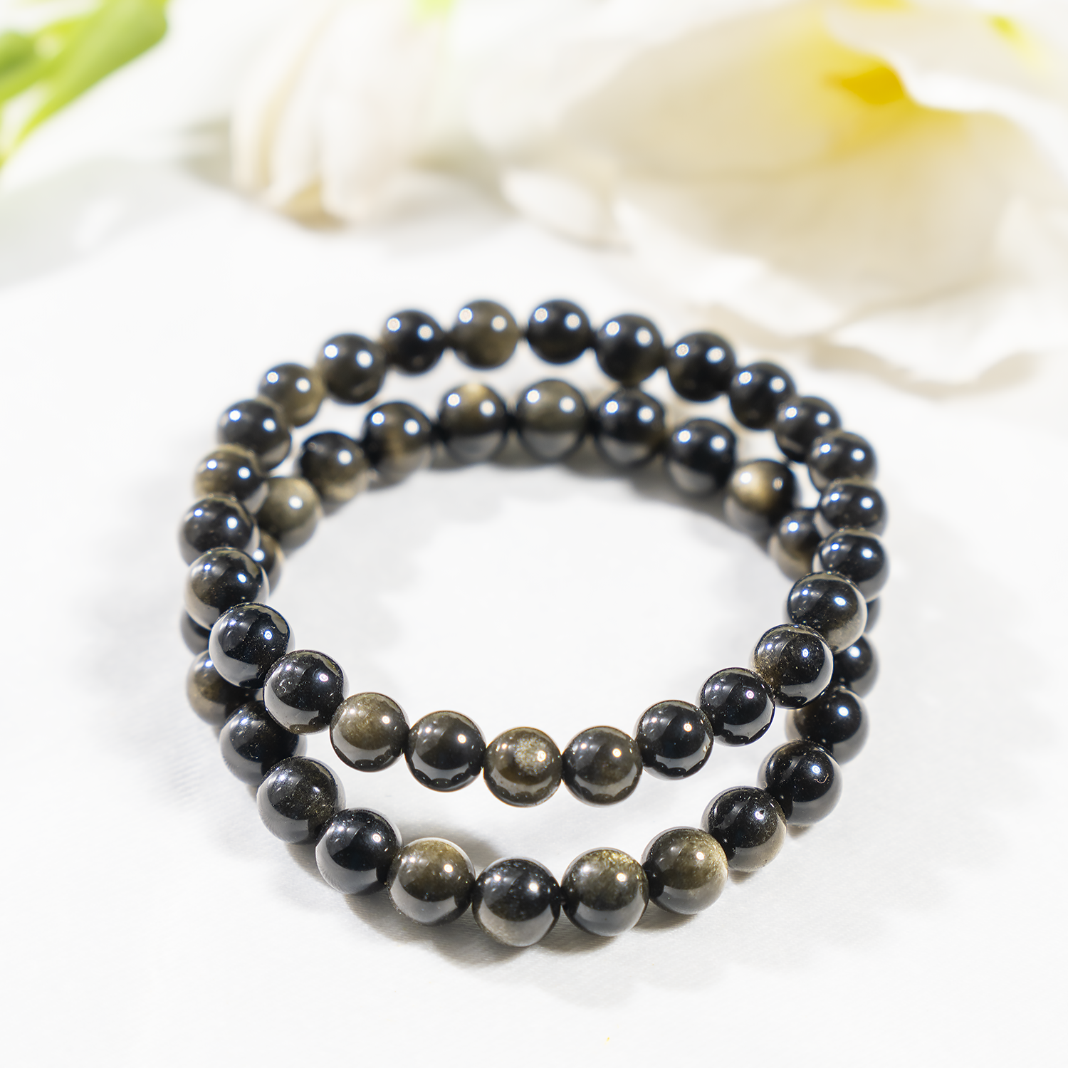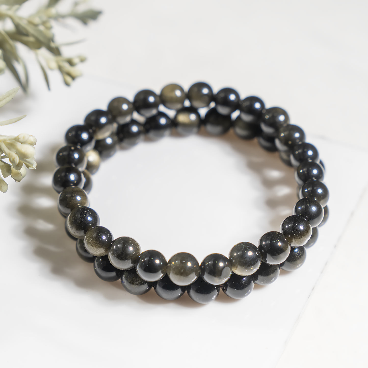 A striking bracelet crafted with Golden Obsidian beads, known for its protective and grounding energy.