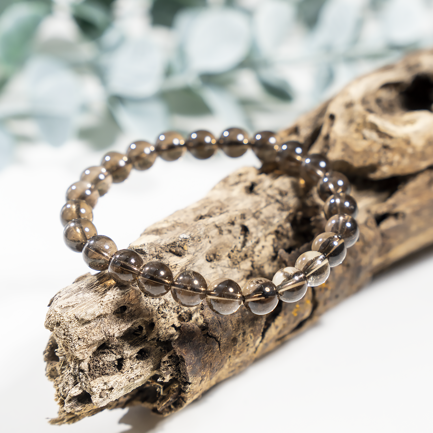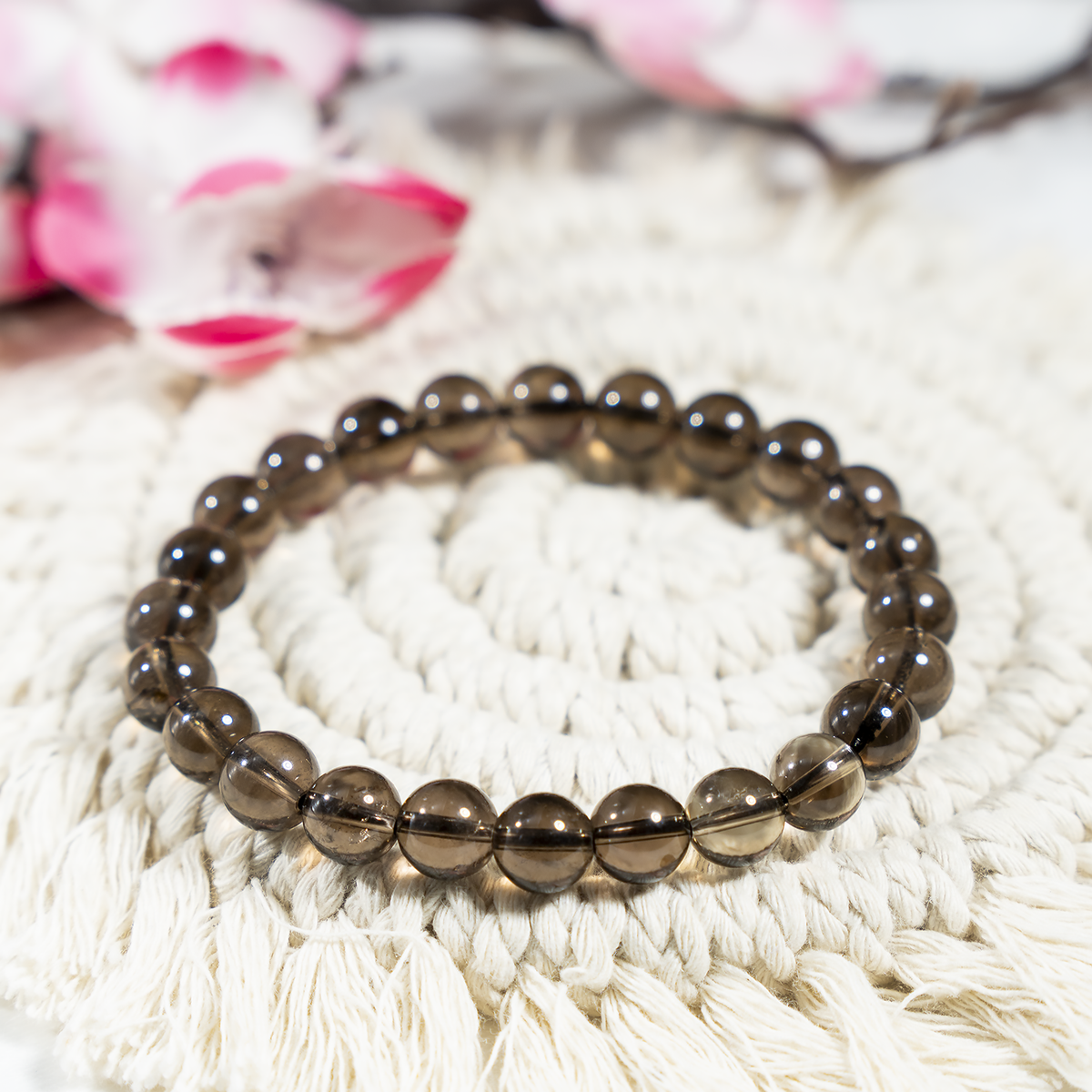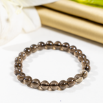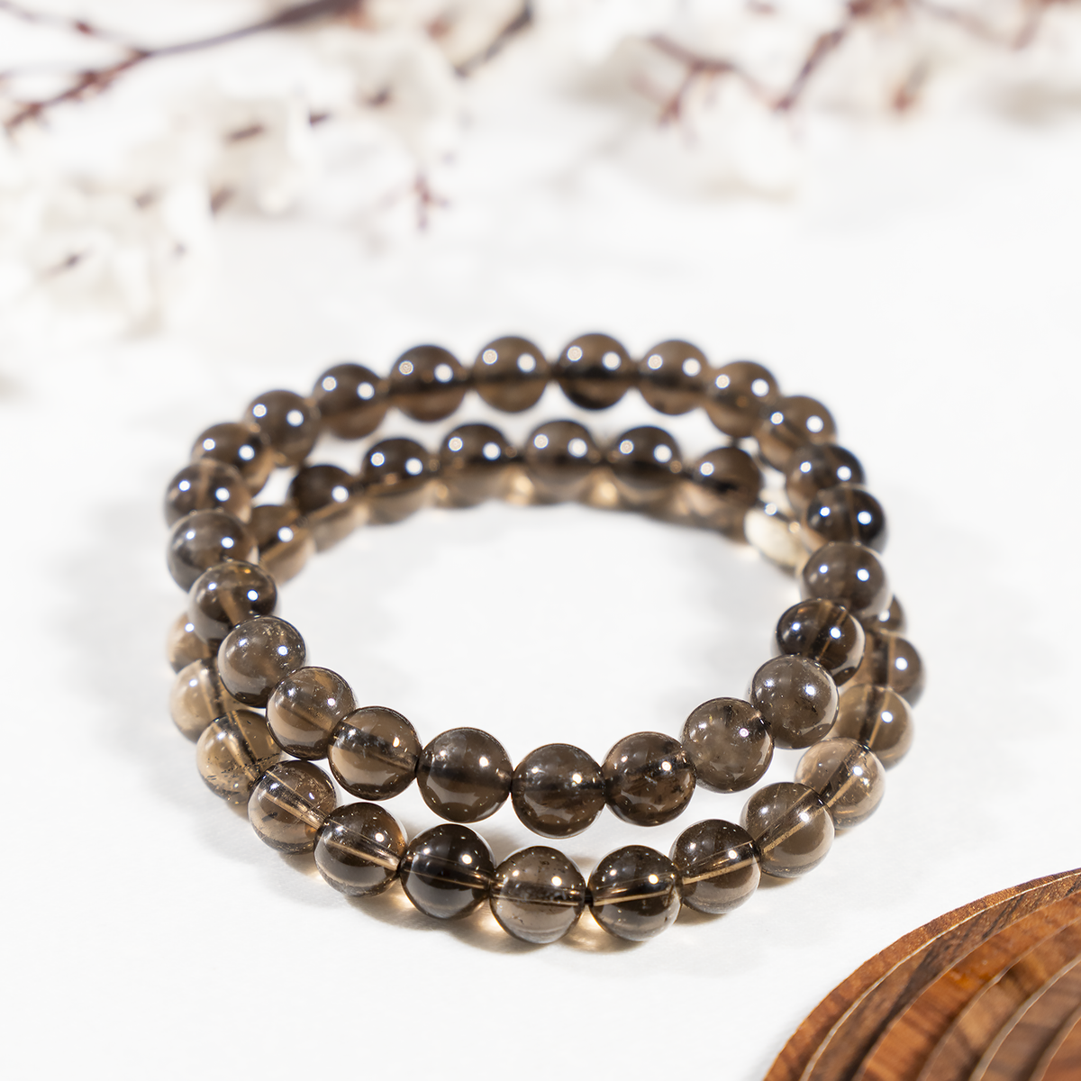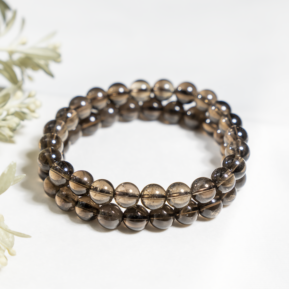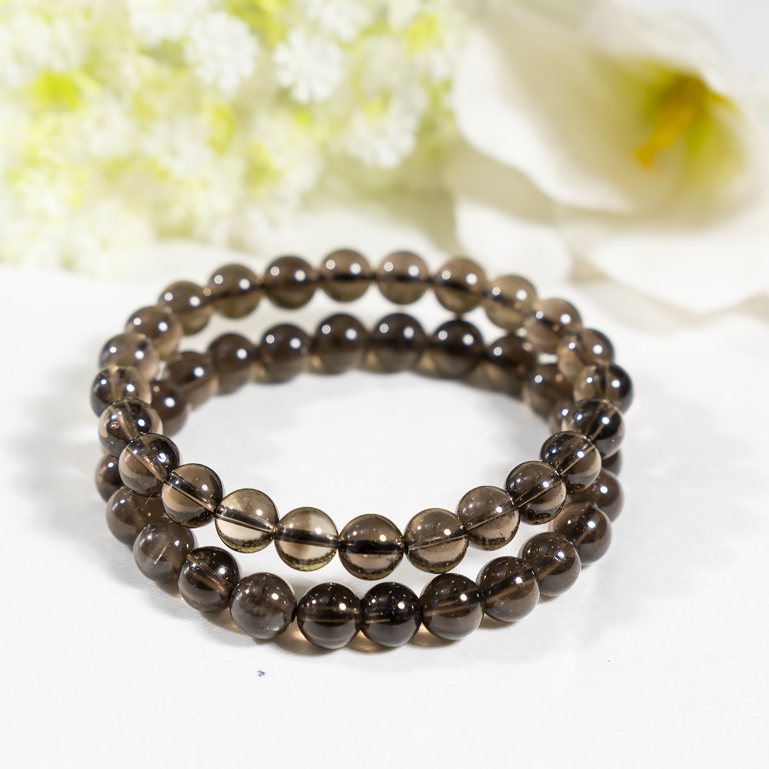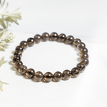 A sleek bracelet crafted with natural Smokey Quartz stones, known for their translucent brown tones and grounding energy. This elegant accessory promotes stability, protection, and emotional balance.