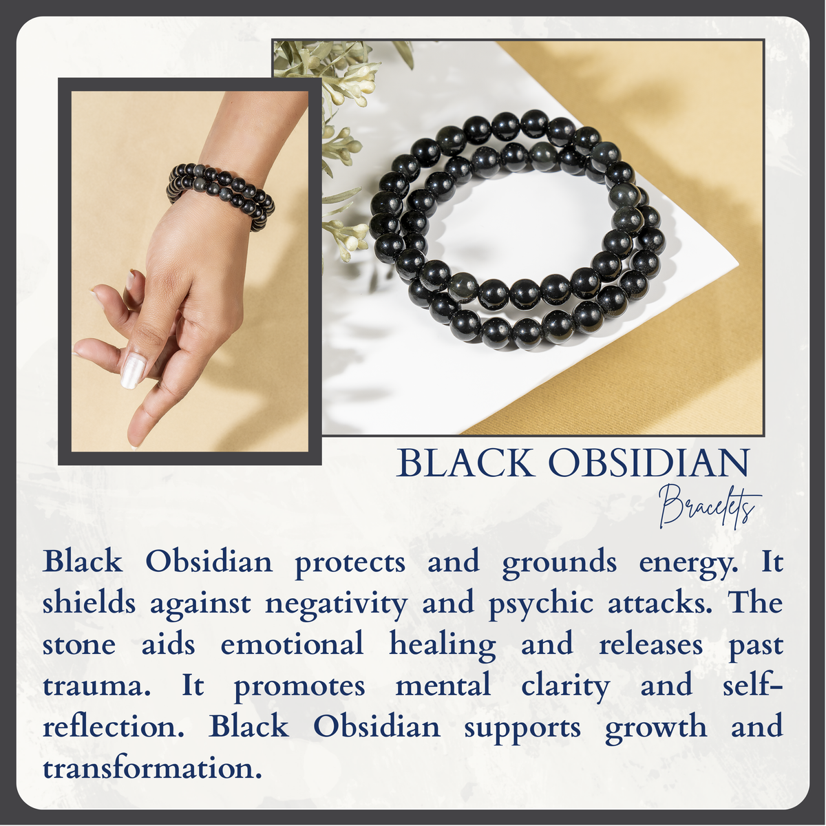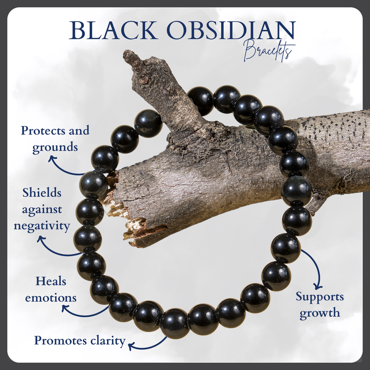 8mm Crystal Bracelets | Black Obsidian | Healing Gemstone Bracelets