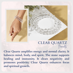 Elevate your energy and style with this handmade Crystal Quartz Beaded Bracelet. Crafted with high-quality 8mm round crystal quartz beads on a flexible elastic band, this bracelet combines elegance, comfort, and spiritual benefits in one beautiful accessory. Perfect for daily wear, meditation, or as a thoughtful gift for someone special.