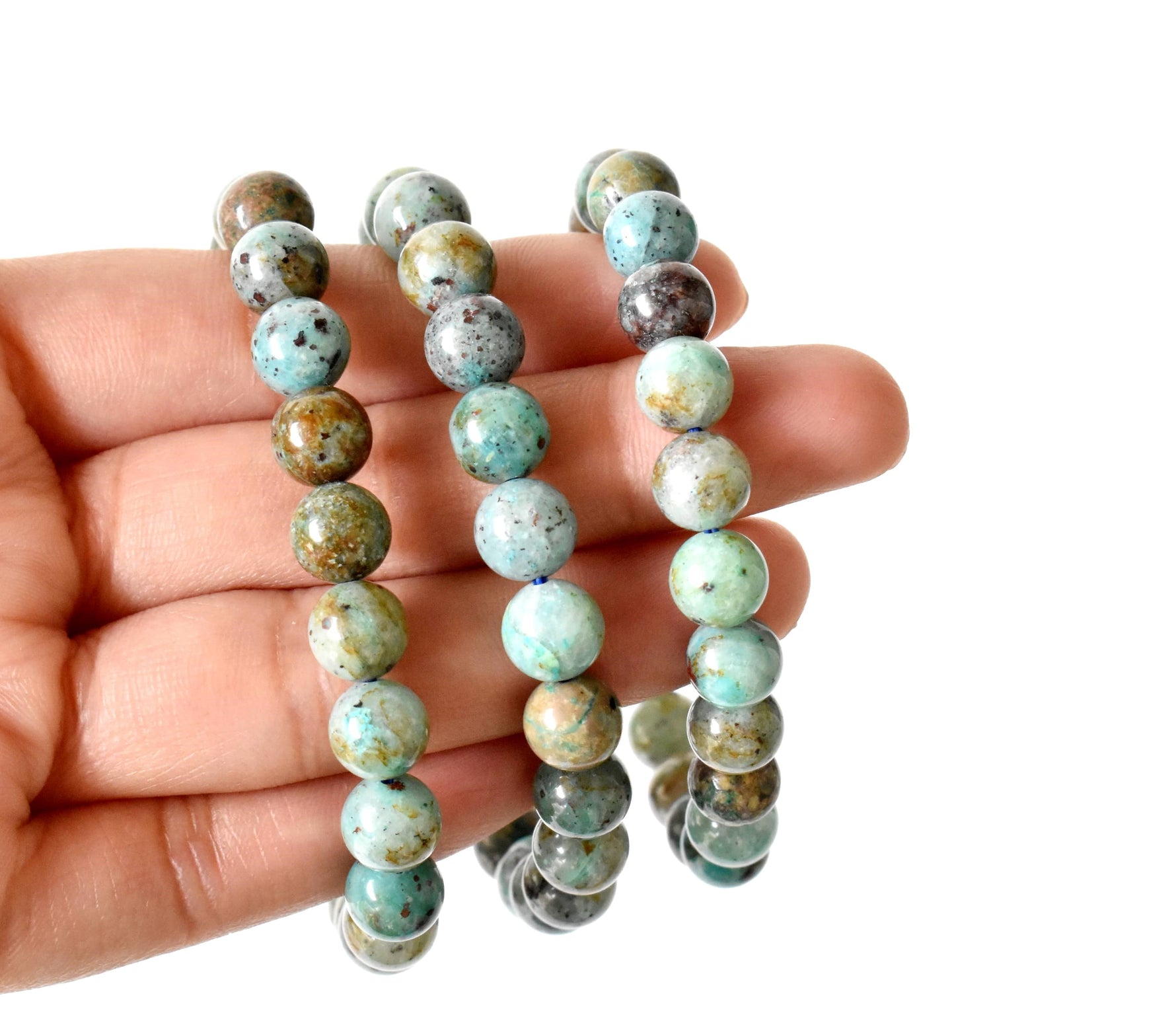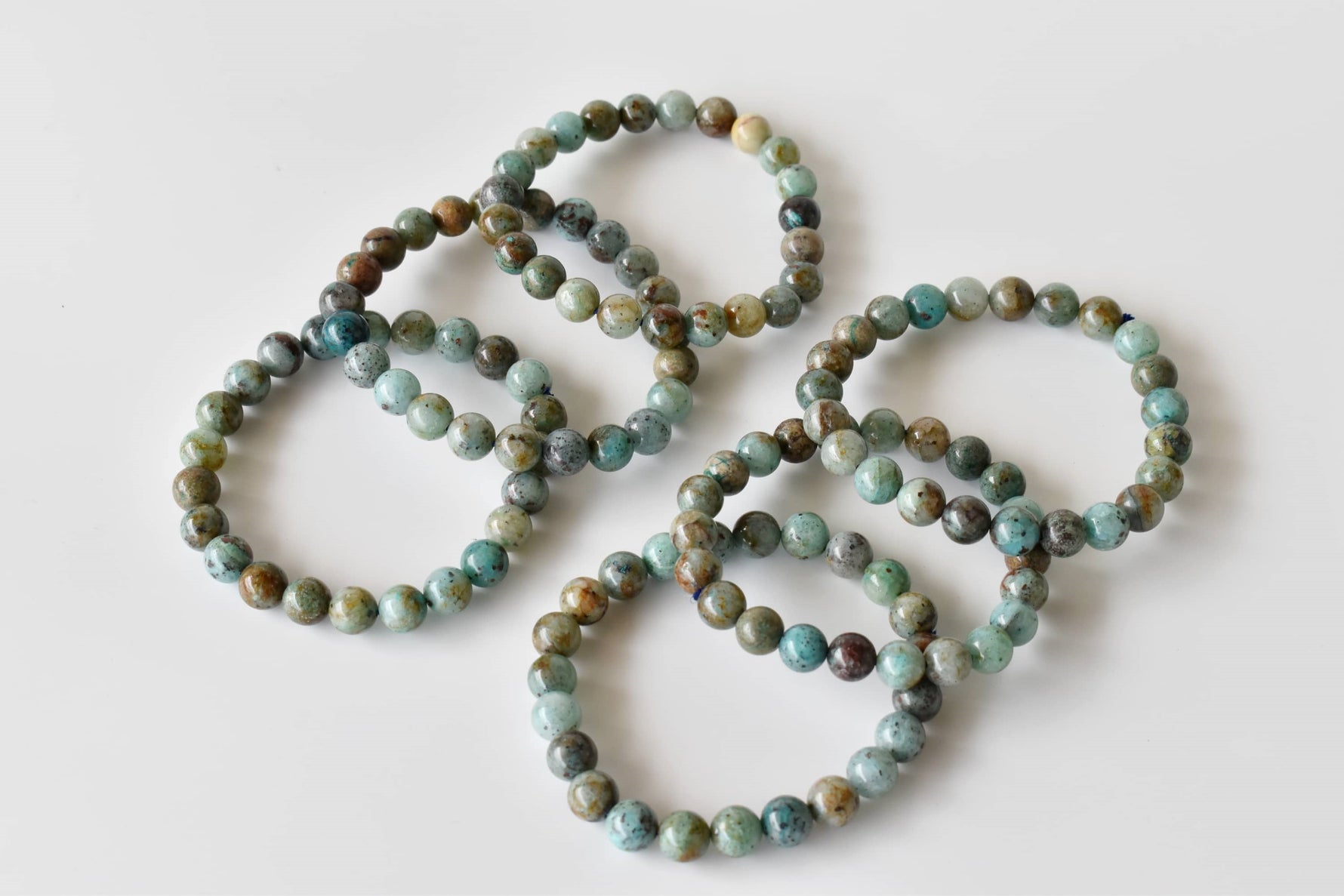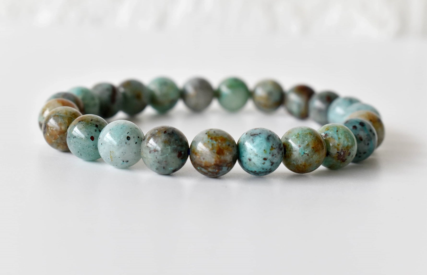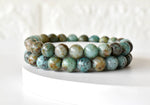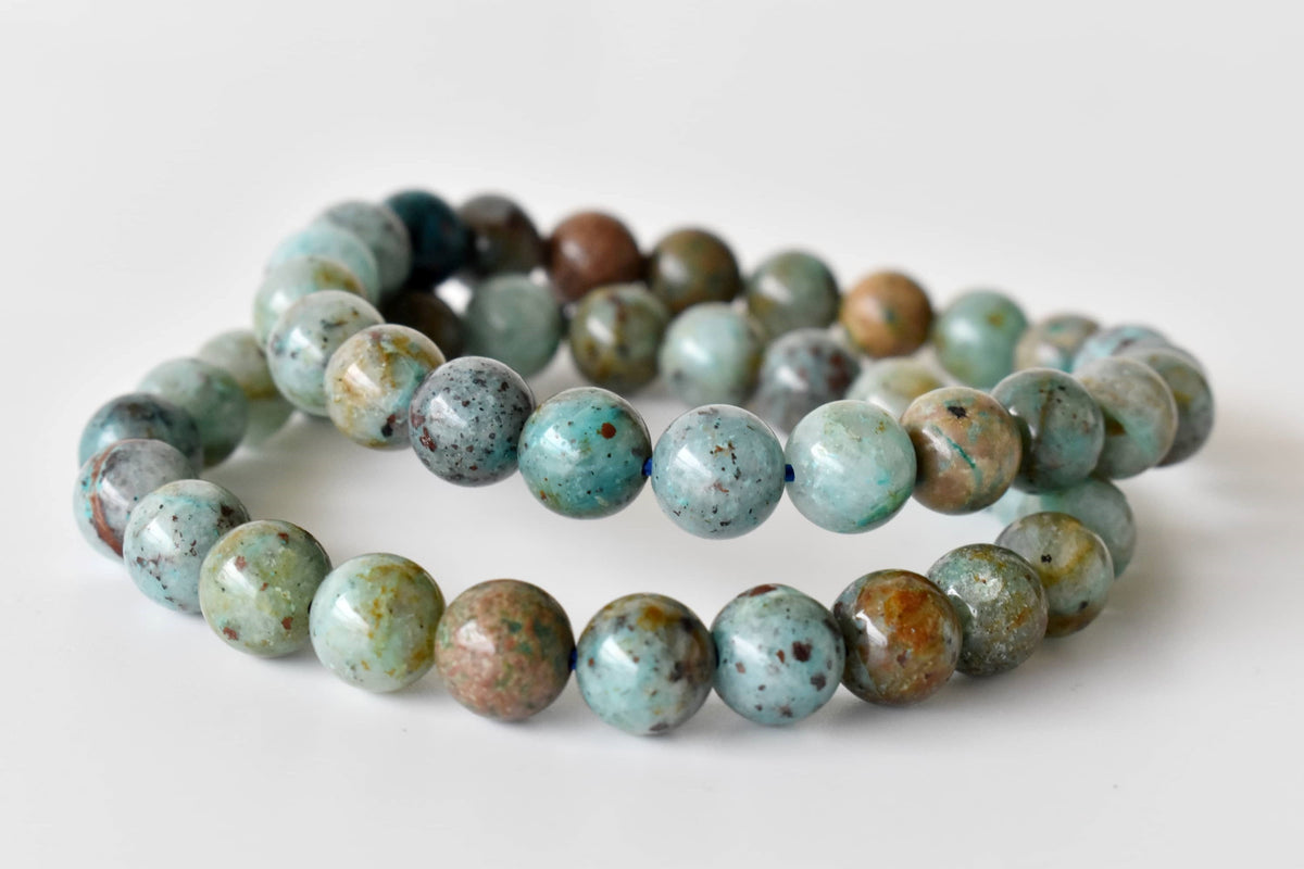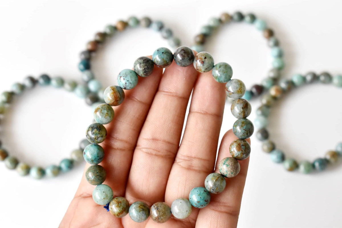 A beautiful Chrysocolla crystal bracelet, featuring soothing blue-green stones that bring calm and balance to your energy.