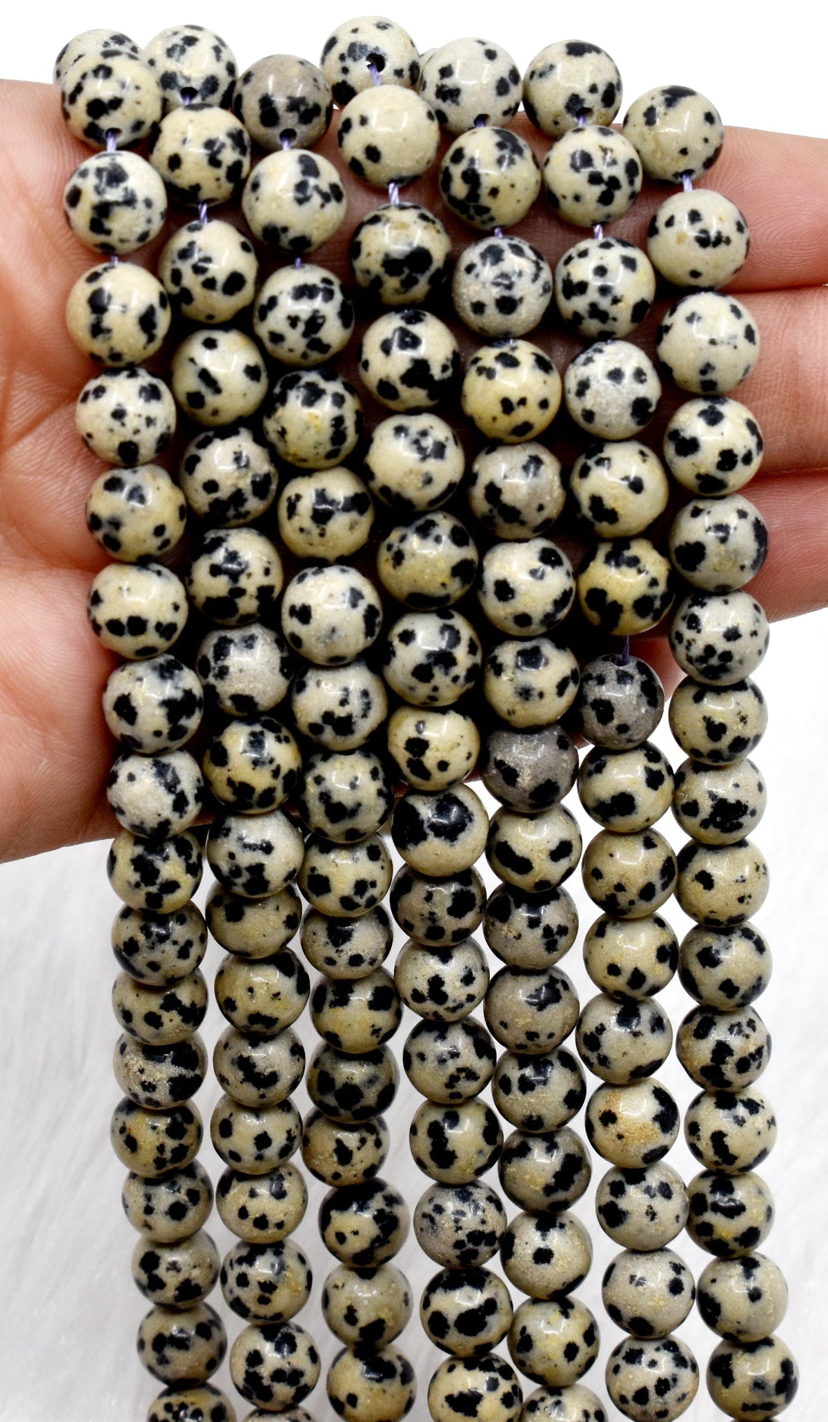 These Premium Quality Polished Dalmatian Jasper Crystal Round Beads has a unique blend of black and white with red, beige and brown spots, offering you a gorgeous, marbled look. All the beads come in sizes ranging from 4mm to 12mm, making them perfect for creating any type of jewelry design you have in mind.👌💖