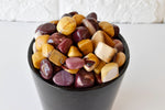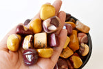Mookaite stone has a calming yellow and red hue, lovingly polished to bring out its unique beauty. This medium-sized tumbled stone has a calming energy that will help you to focus on what’s important in life and provide clarity of thought.