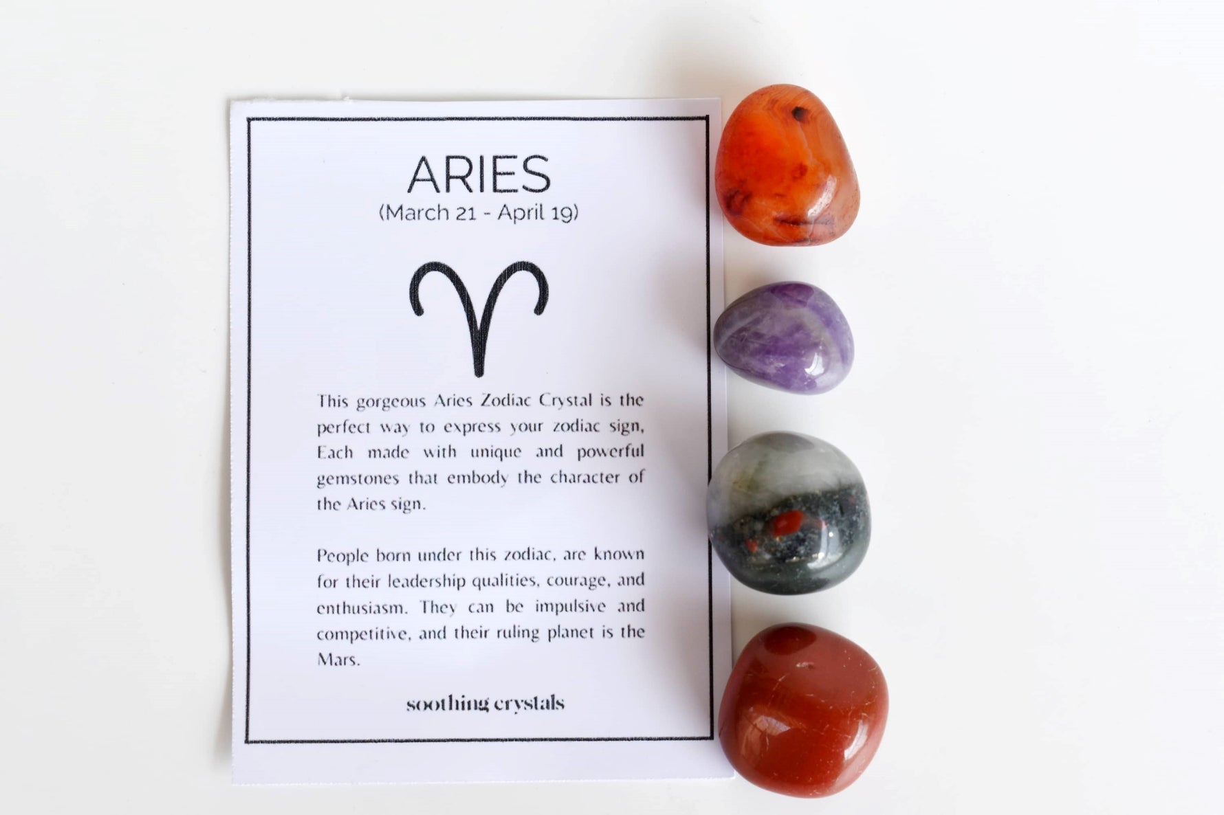 ARIES Zodiac Crystal Kit, Aries Birthstones Tumbled Stones Set, Aries Stones Gifts