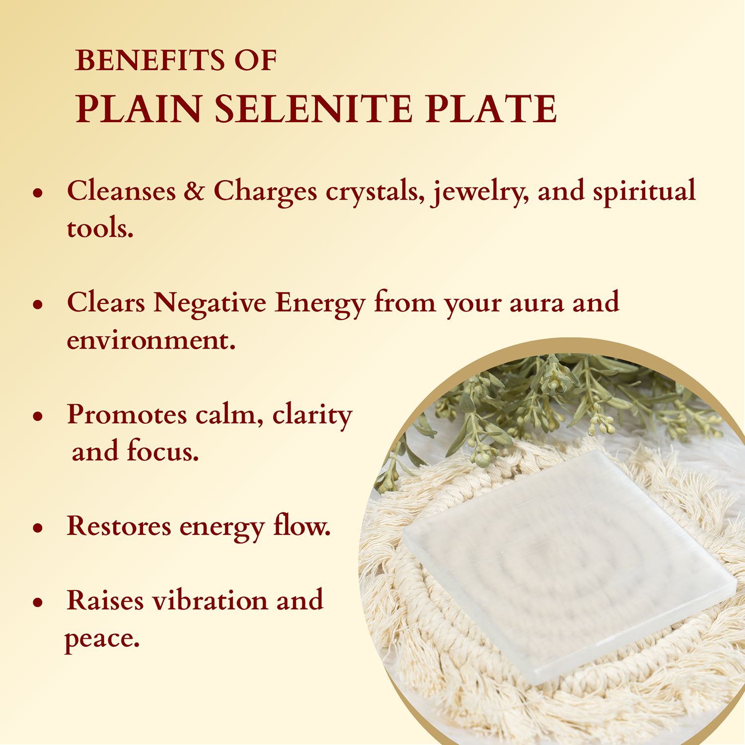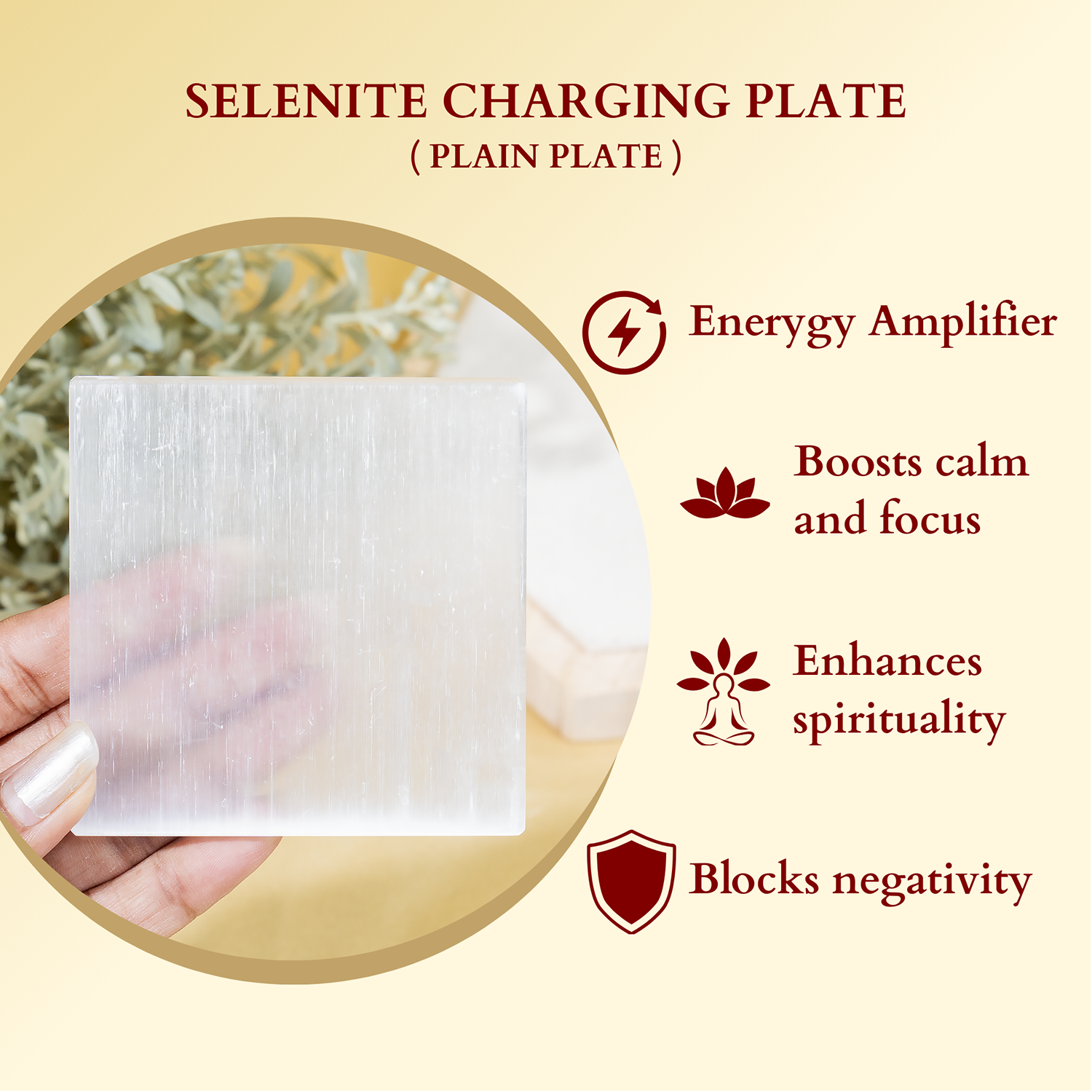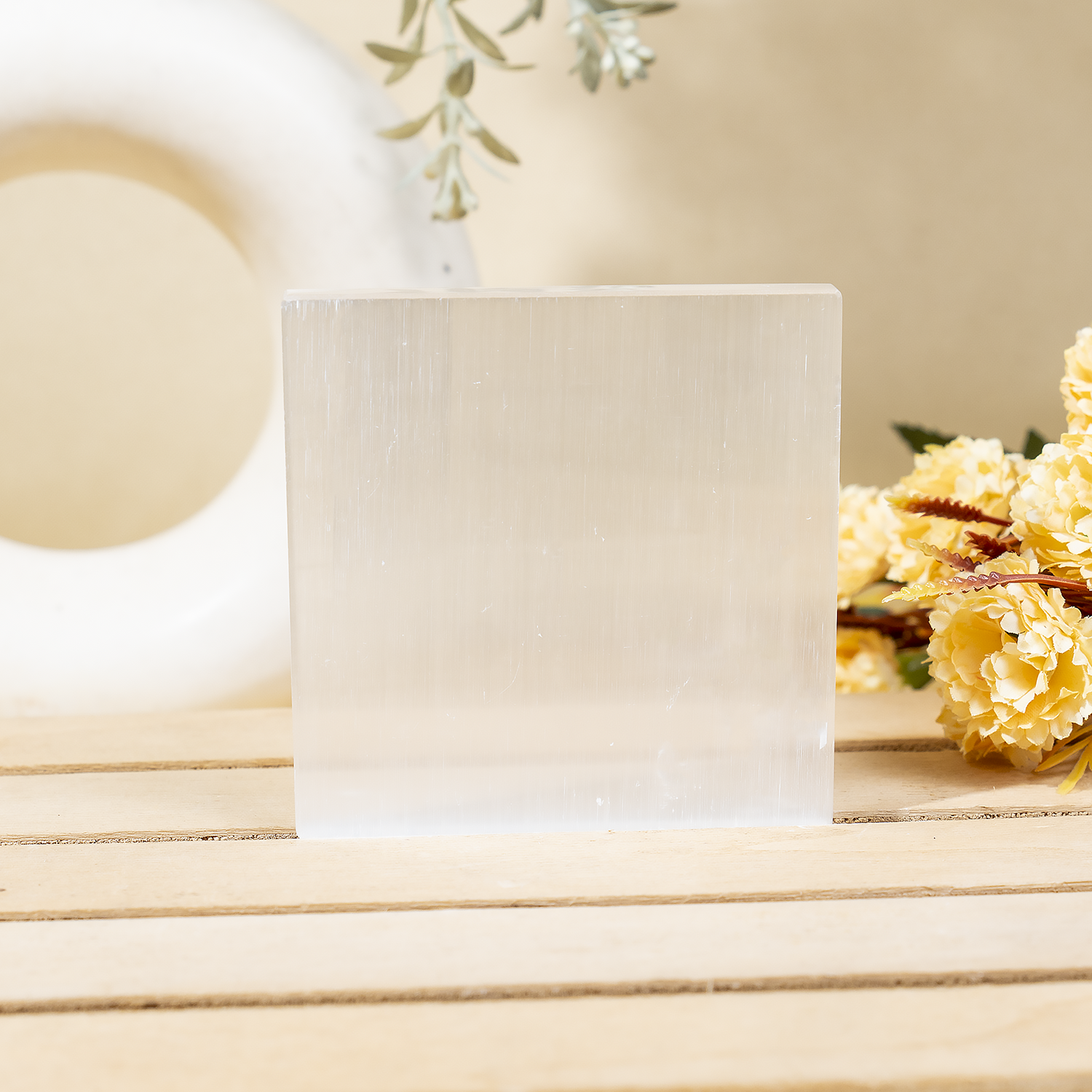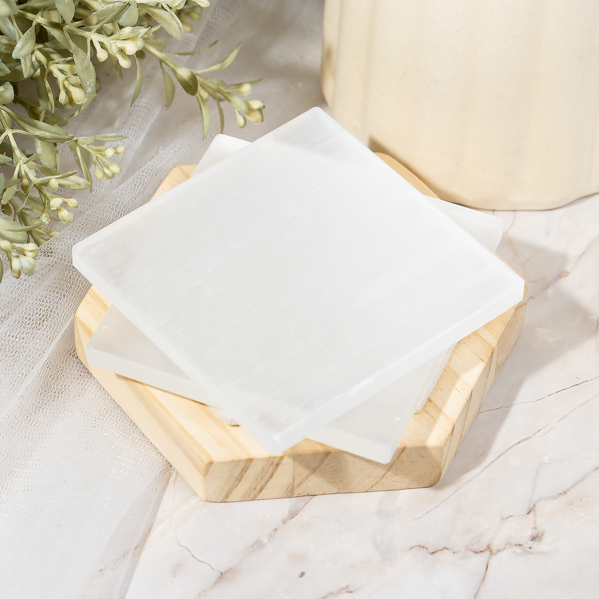 Each plate carries the natural beauty of Selenite with unique crystalline patterns, making it a meaningful addition to your collection.