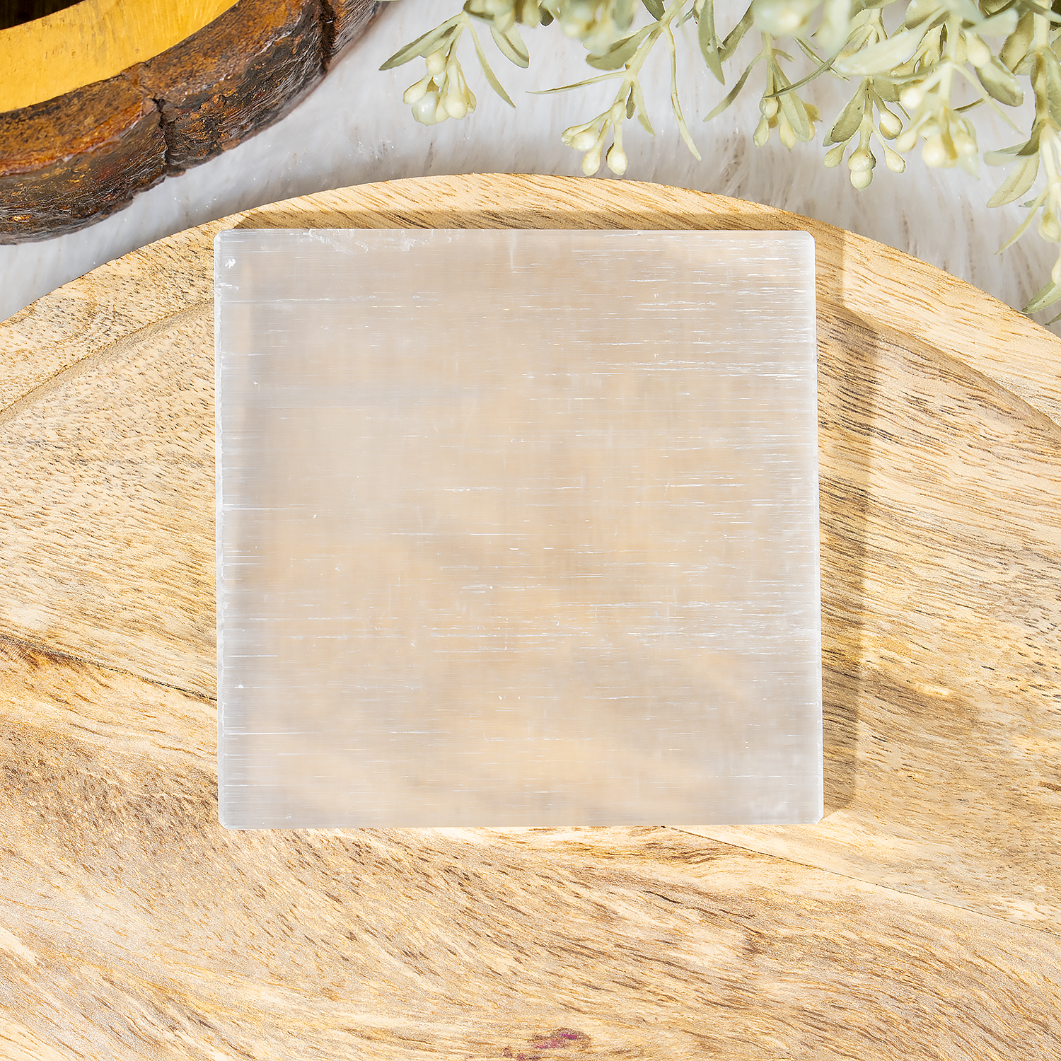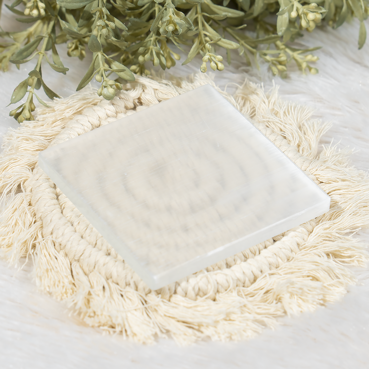 3-Inch Square Plain Selenite Plate – Selenite Charging Plate For Crystal Charging & Cleansing