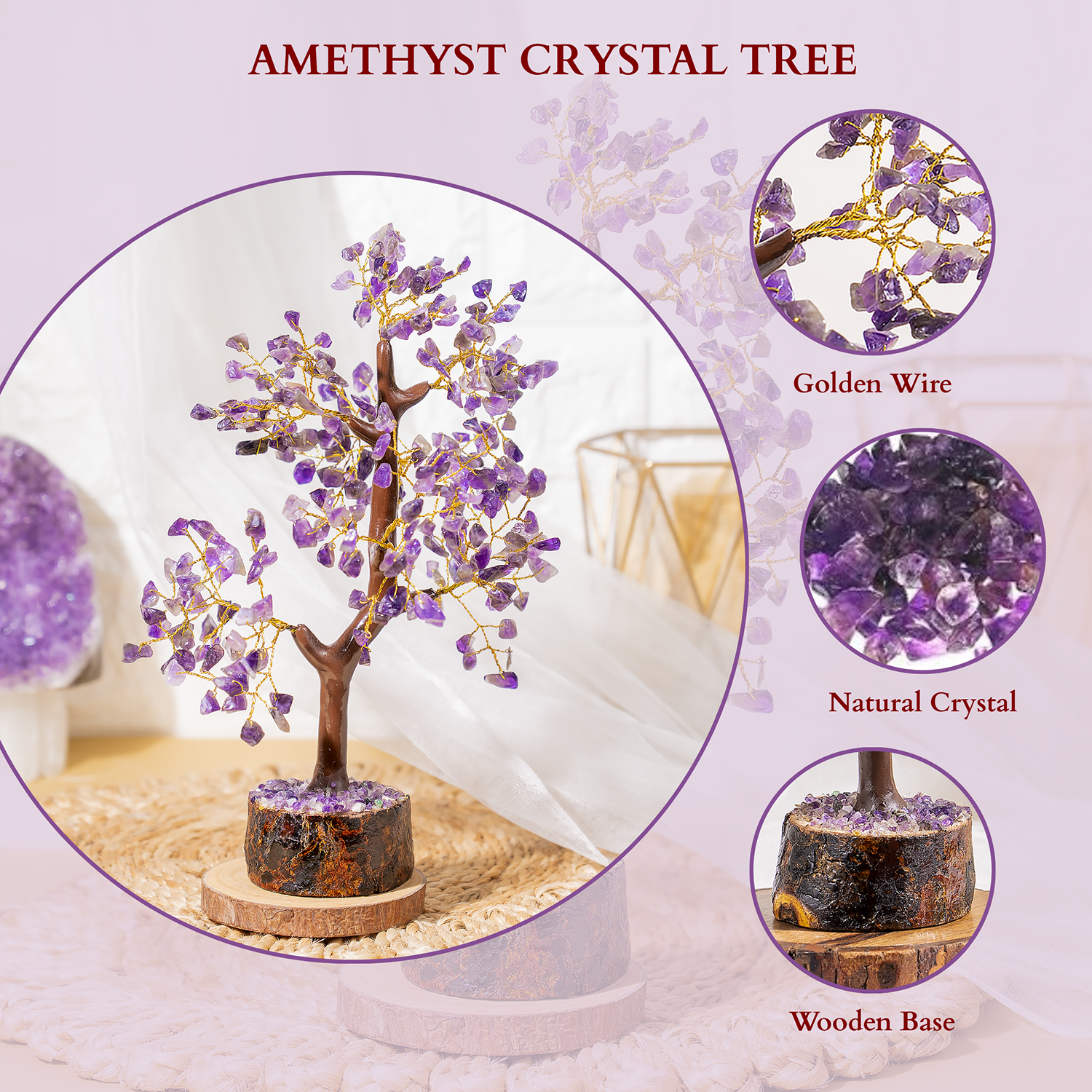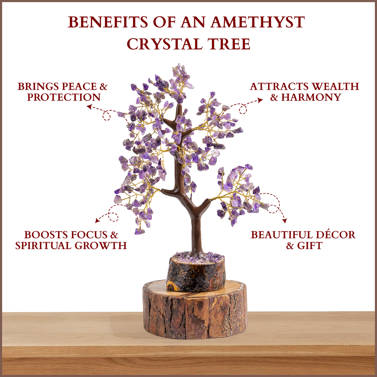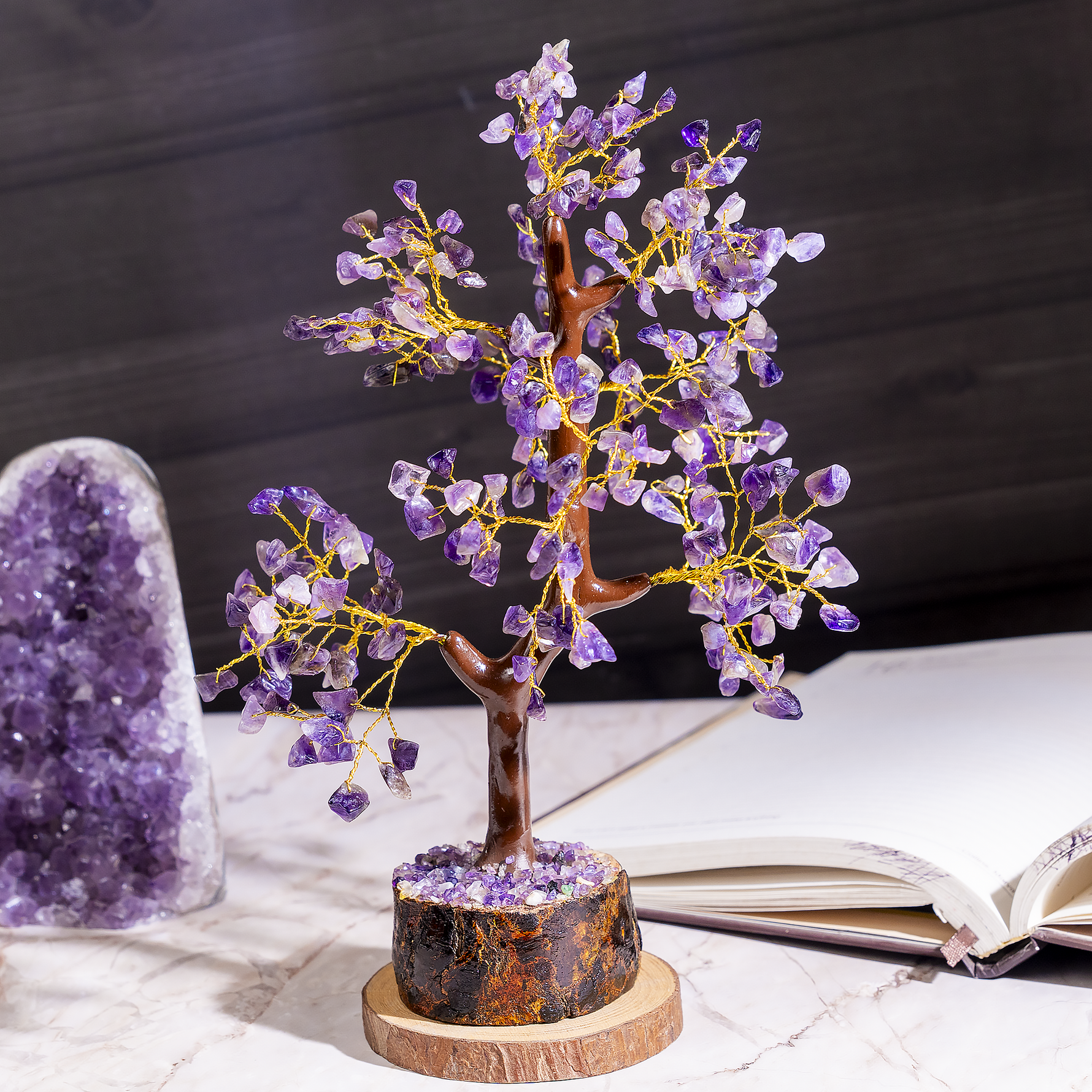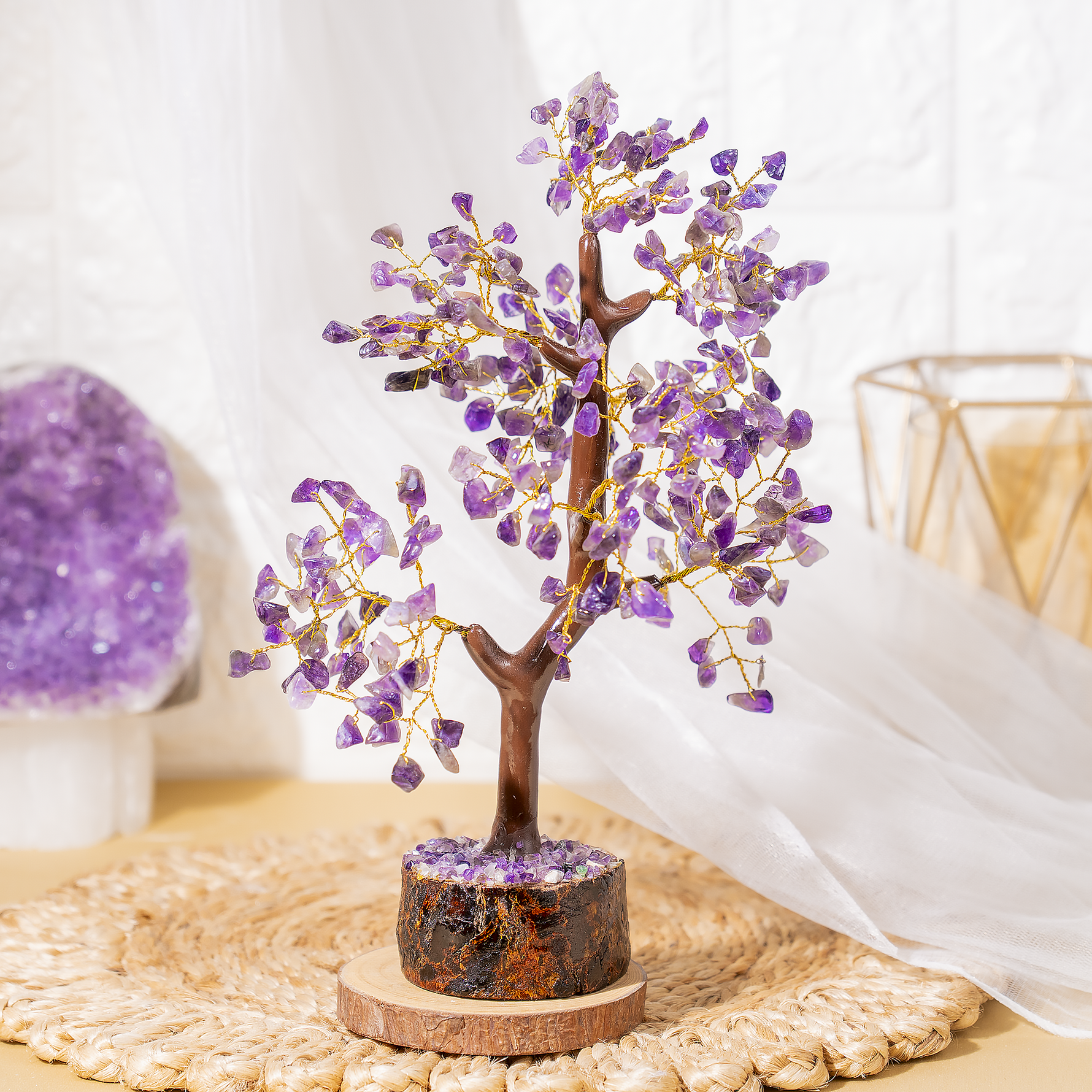 Transform your space with the calming and protective energy of this handcrafted Amethyst Gemstone Tree.