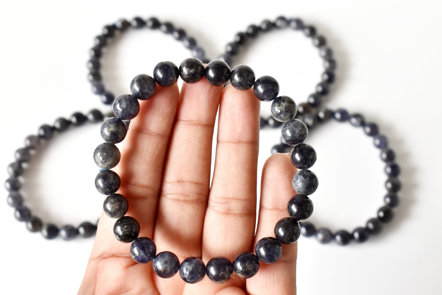 HANDMADE Gorgeous Iolite Beaded Bracelet with Brass Silver Charms.