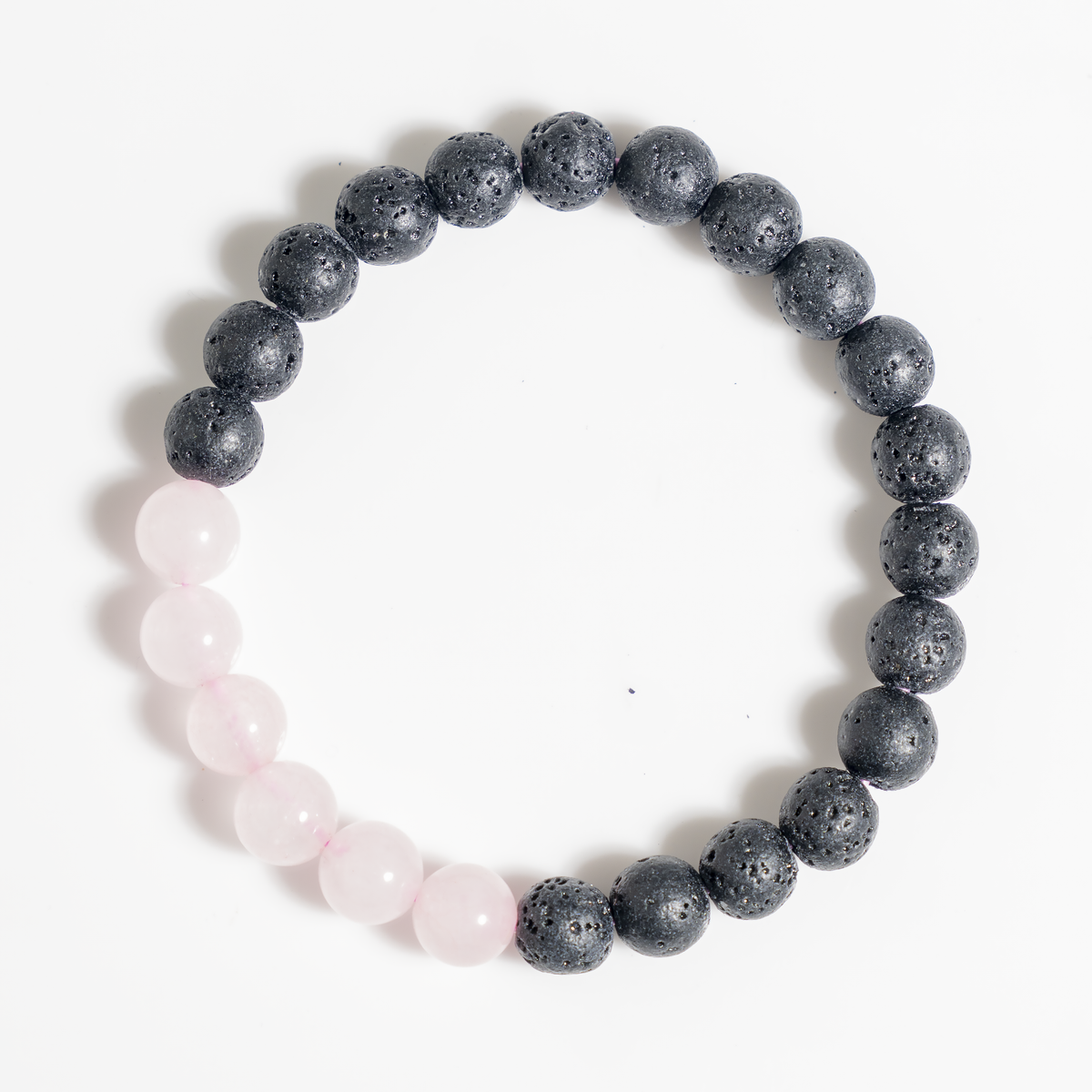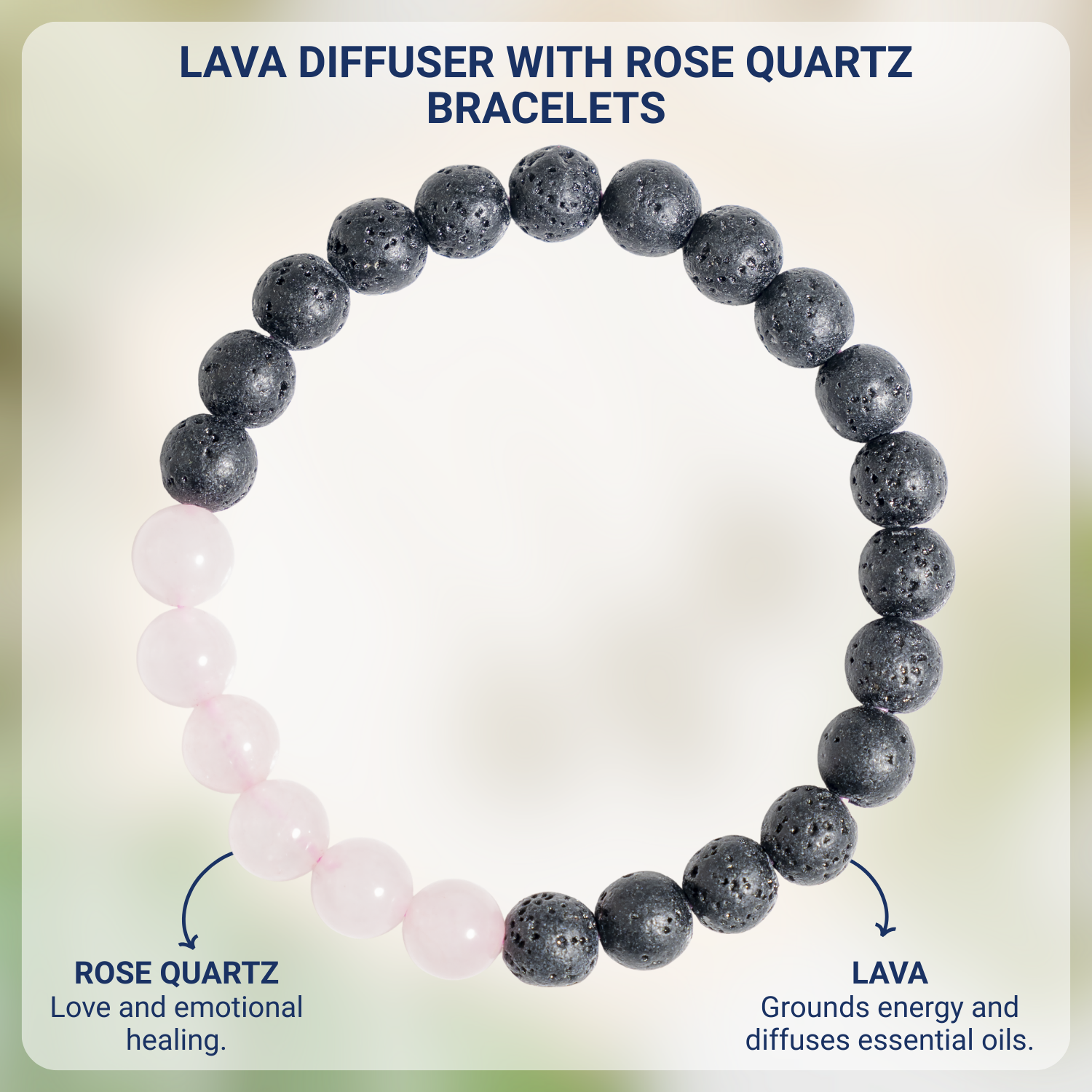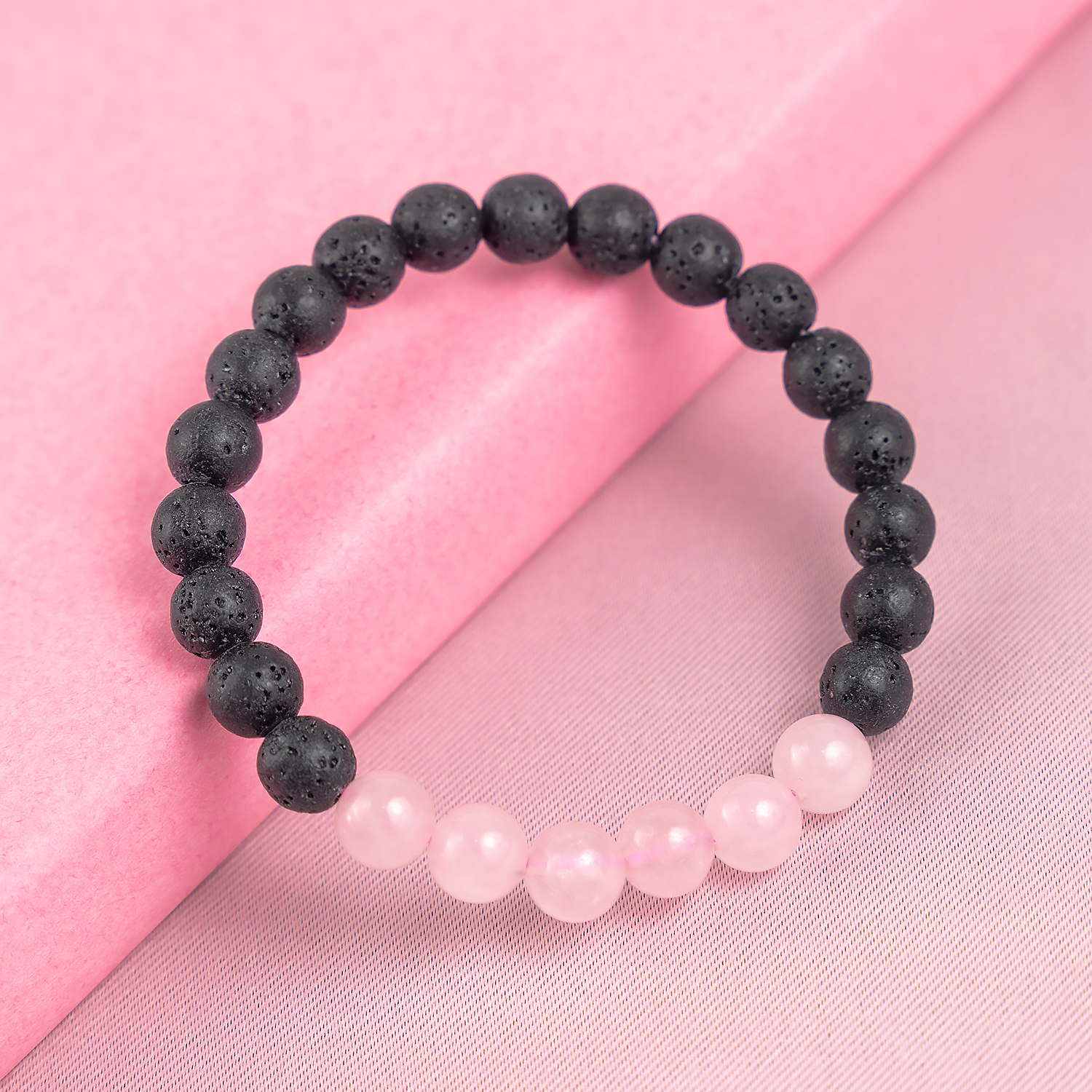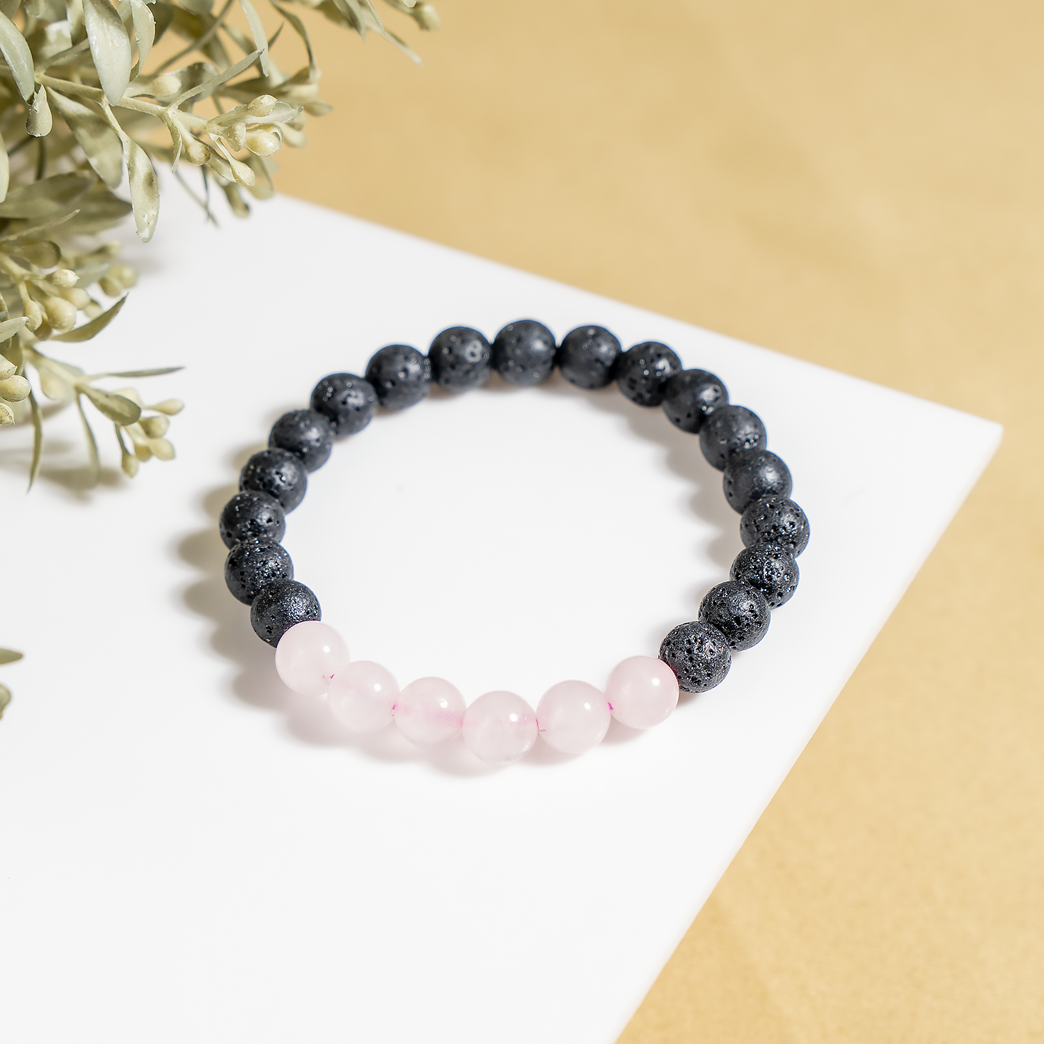 Lava Diffuser Bracelet with Rose Quartz Beads