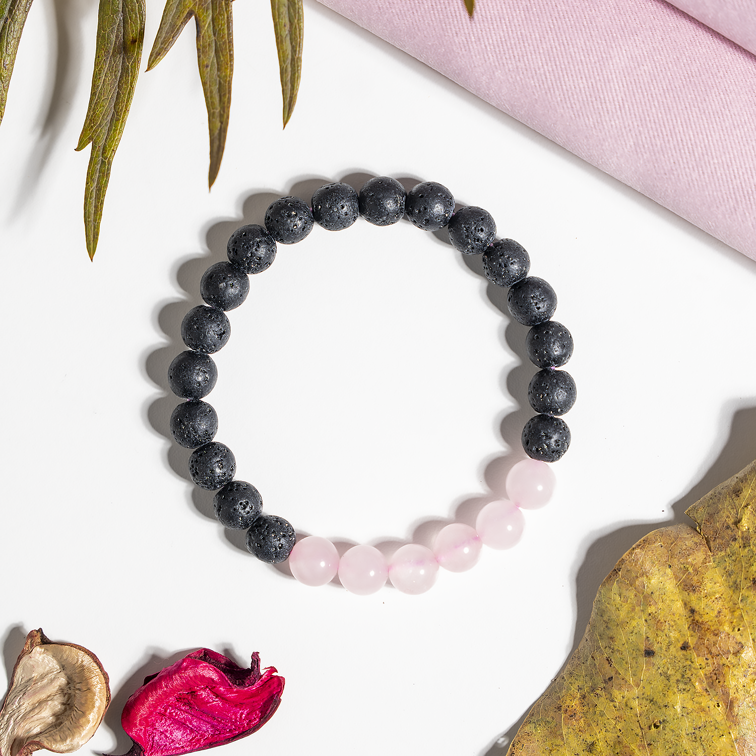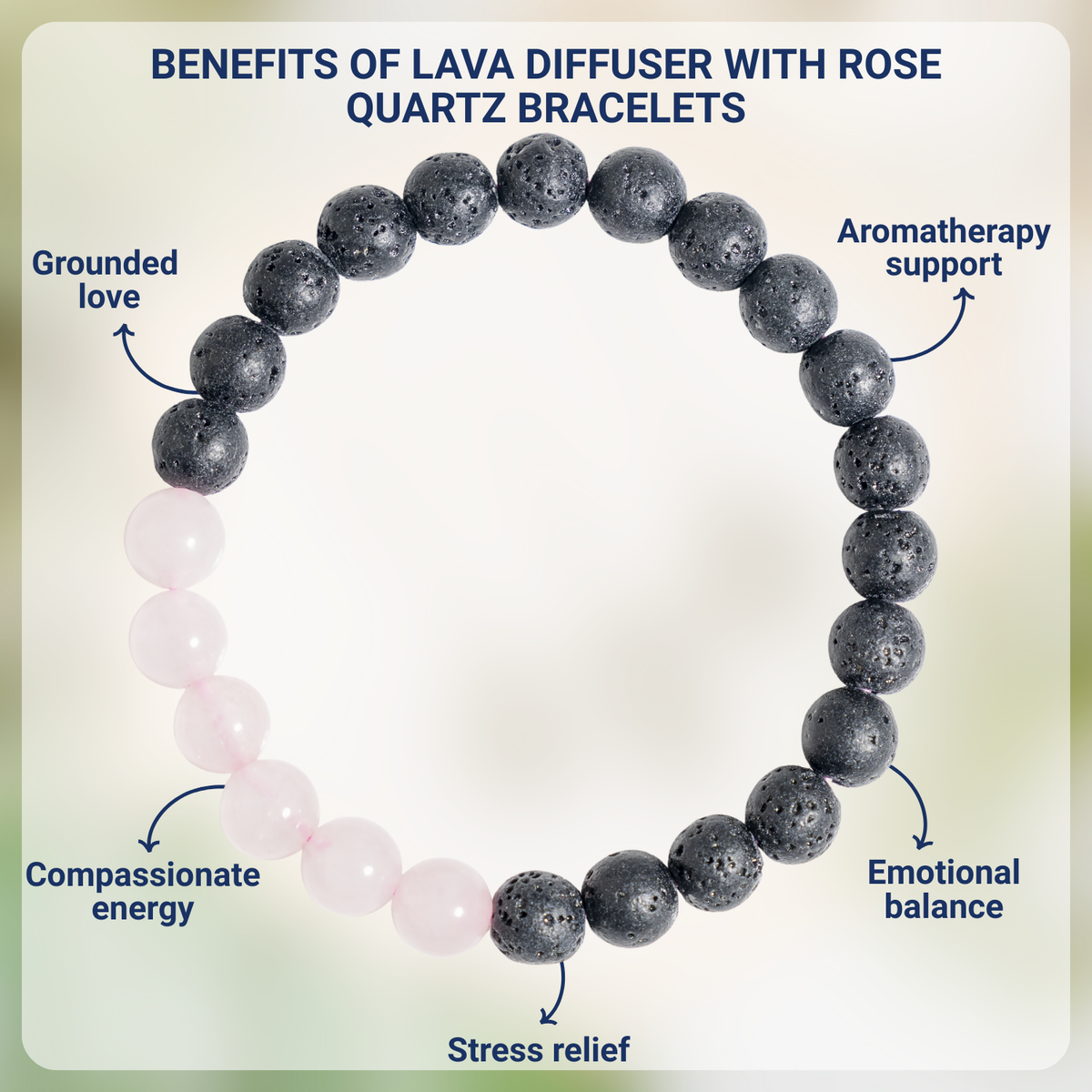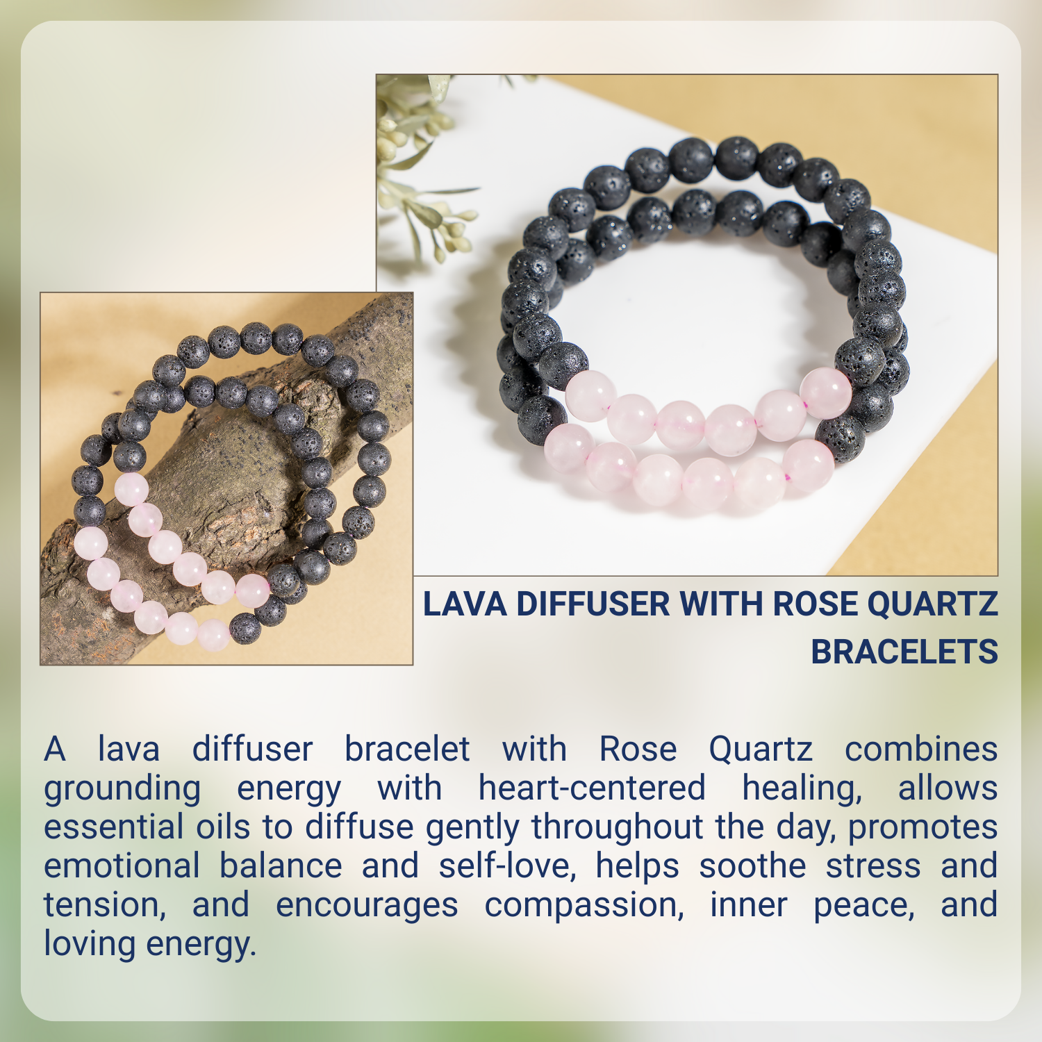 Lava Diffuser Bracelet with Rose Quartz Beads
