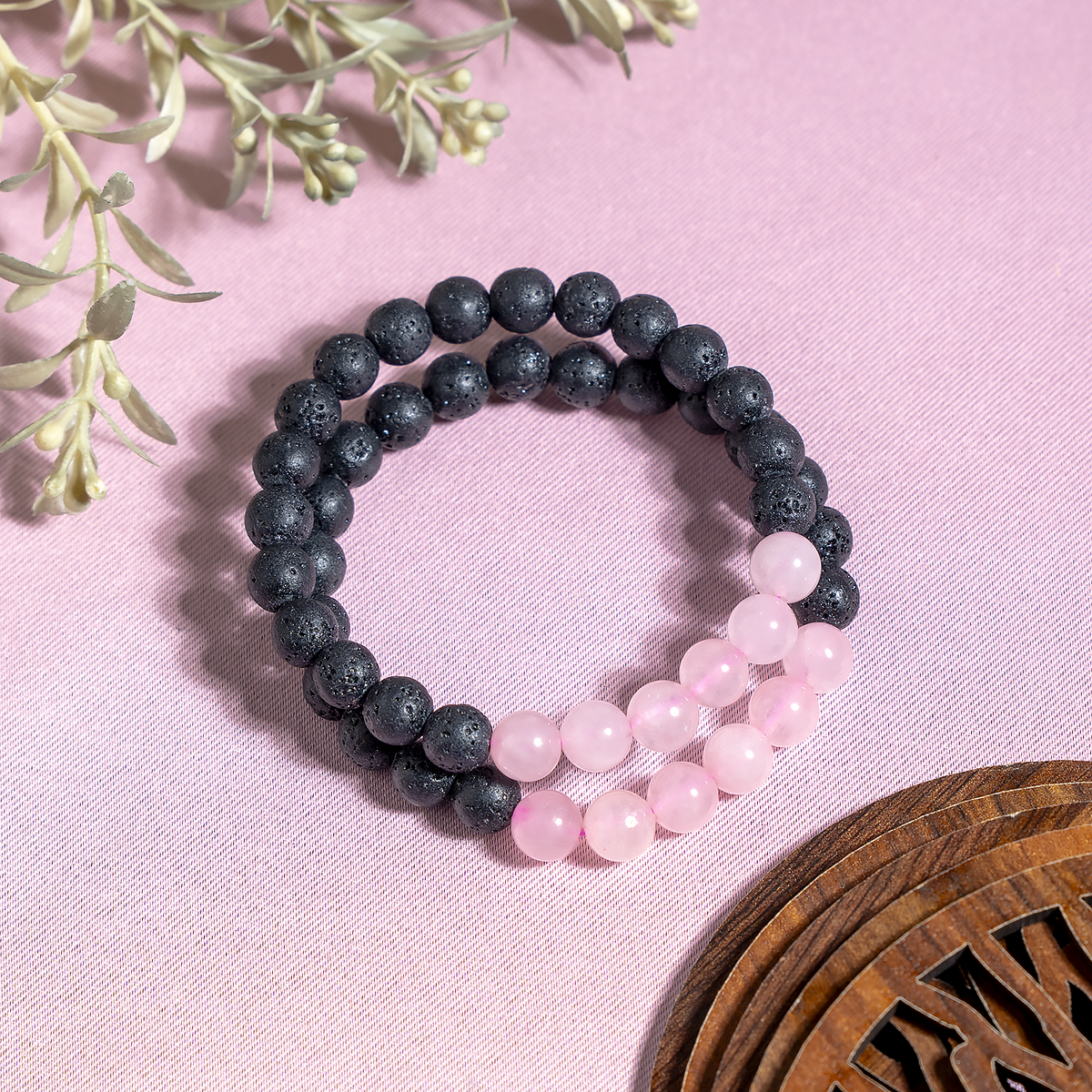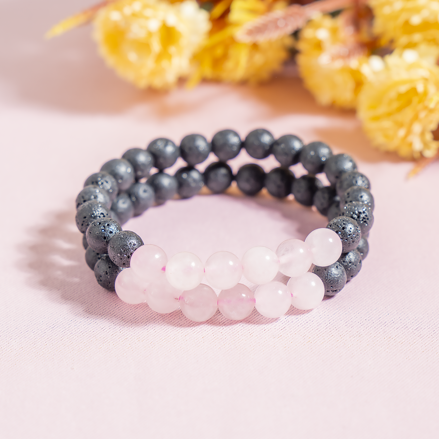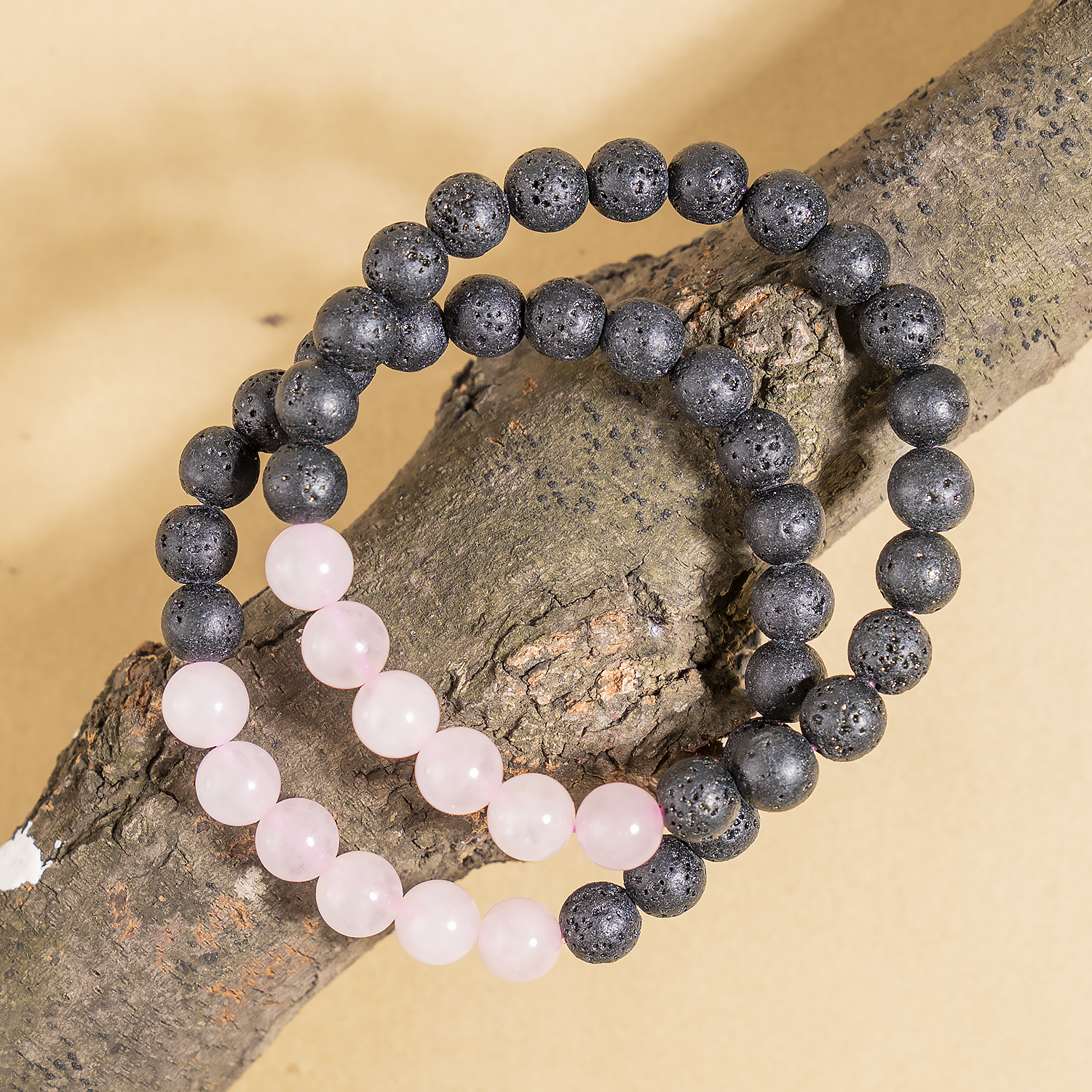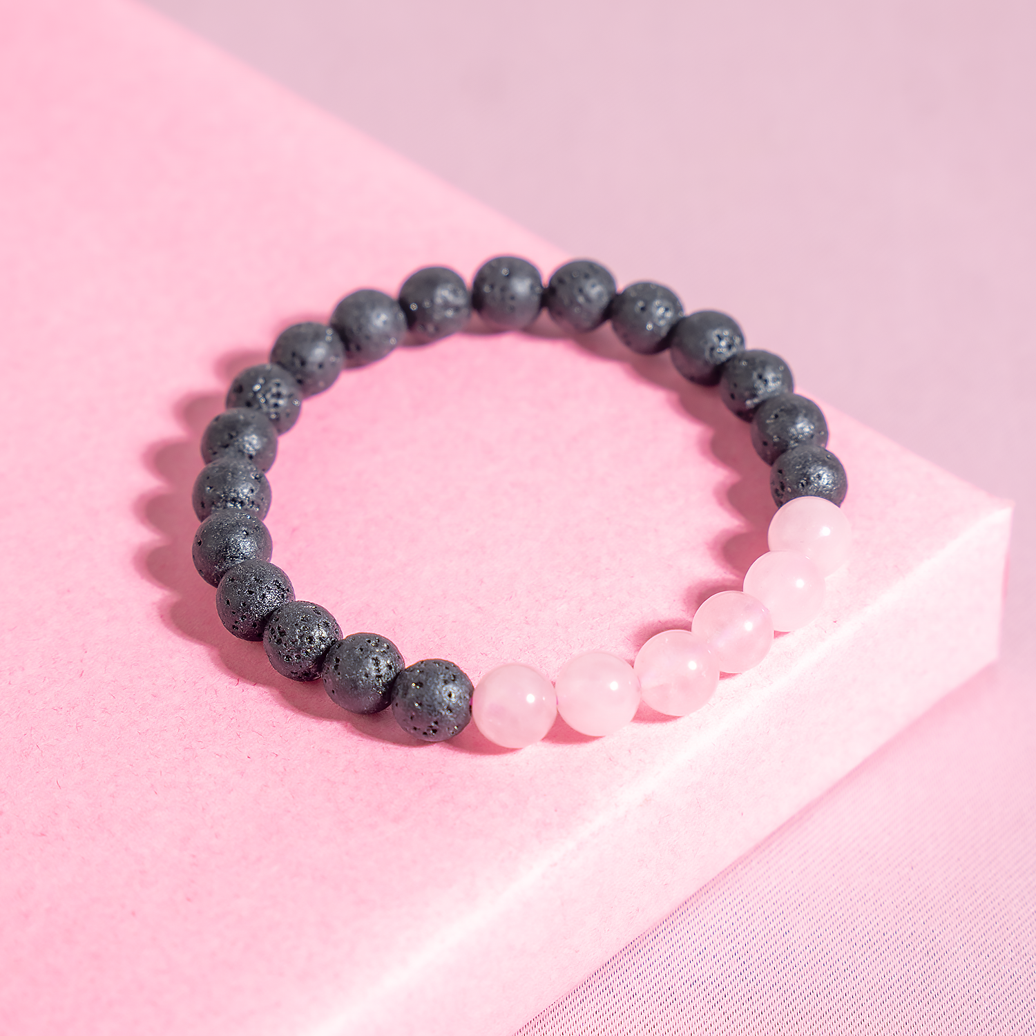 Lava Diffuser Bracelet with Rose Quartz Beads