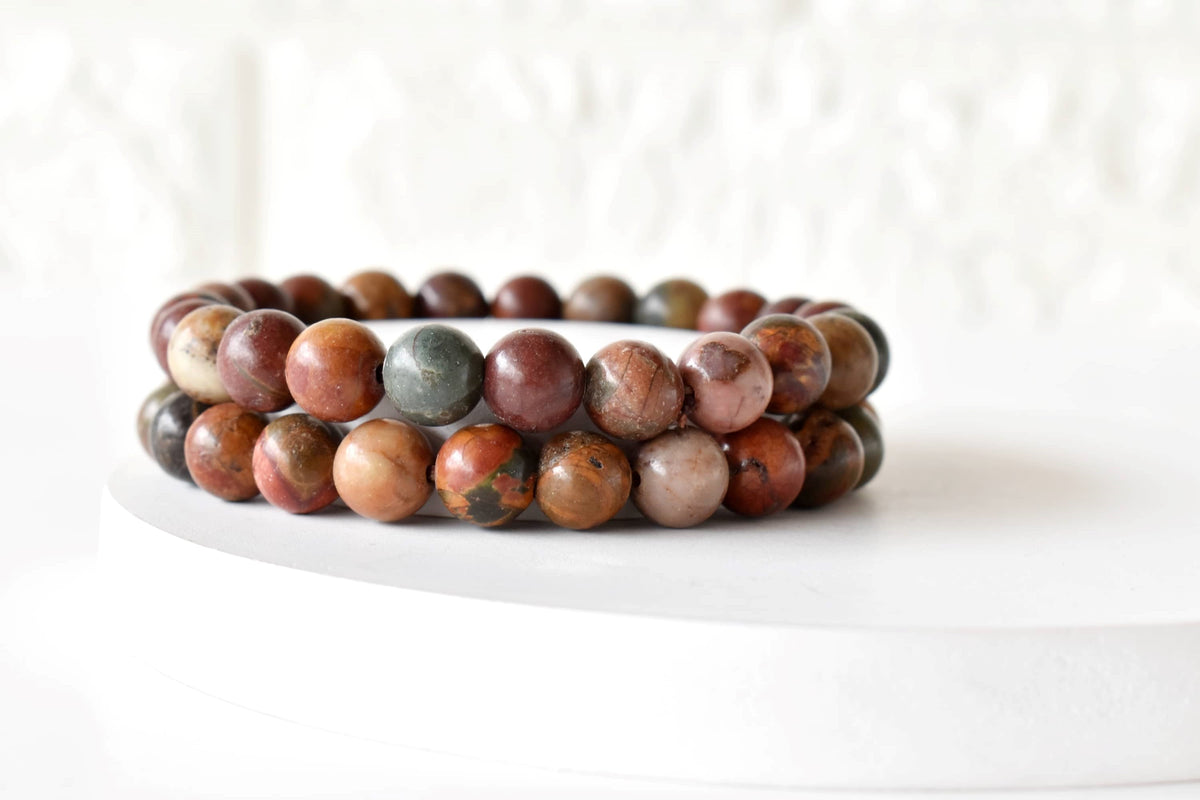 Unit price perA unique bracelet crafted with natural Multi Picasso Jasper stones, featuring beautiful earthy patterns that make every piece one of a kind. Designed for everyday wear, it blends natural elegance with grounding energy.